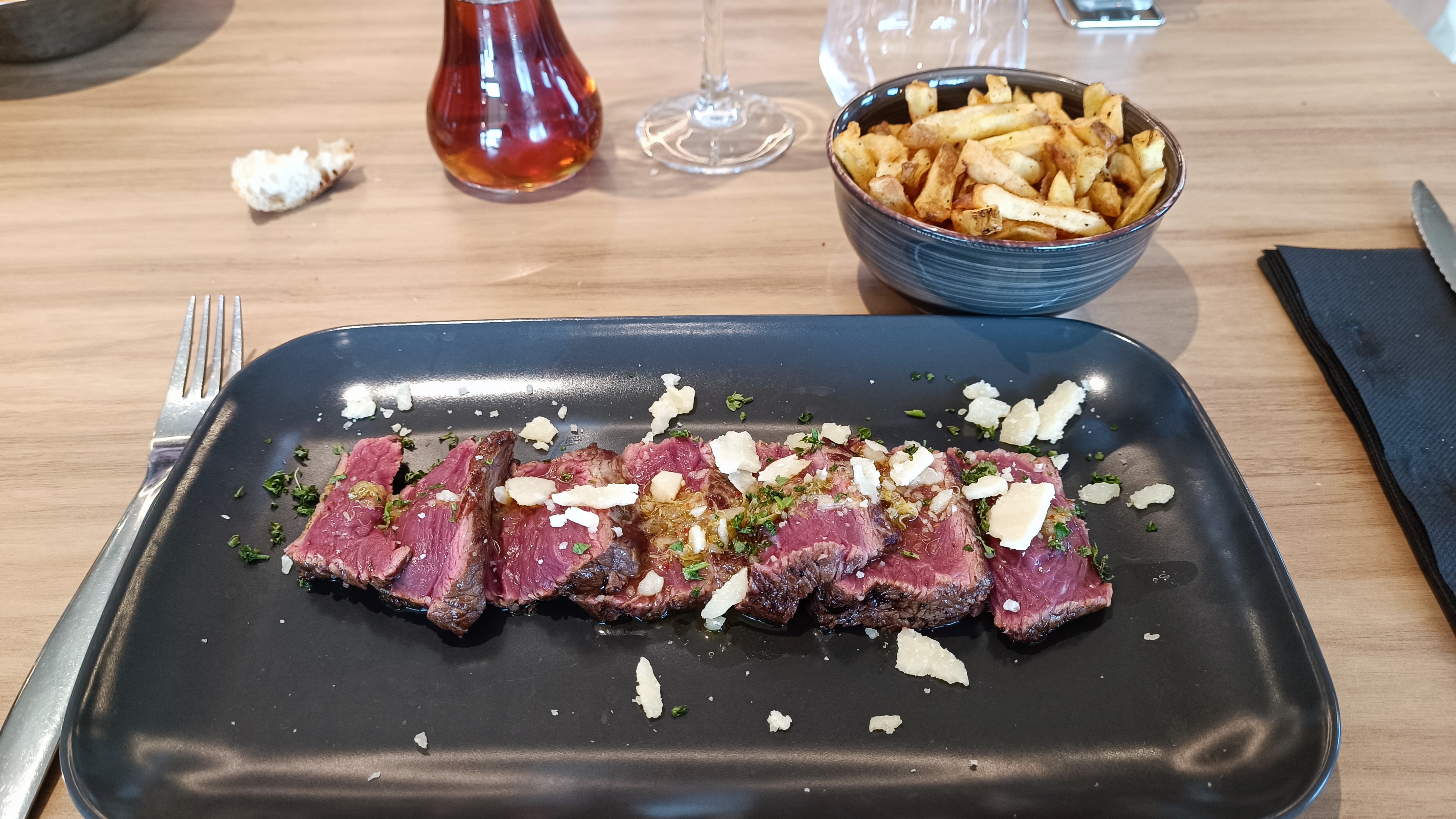 Excellente entrecôte, cuisine raffinée avec frites maison, je recommande, le personnel au top