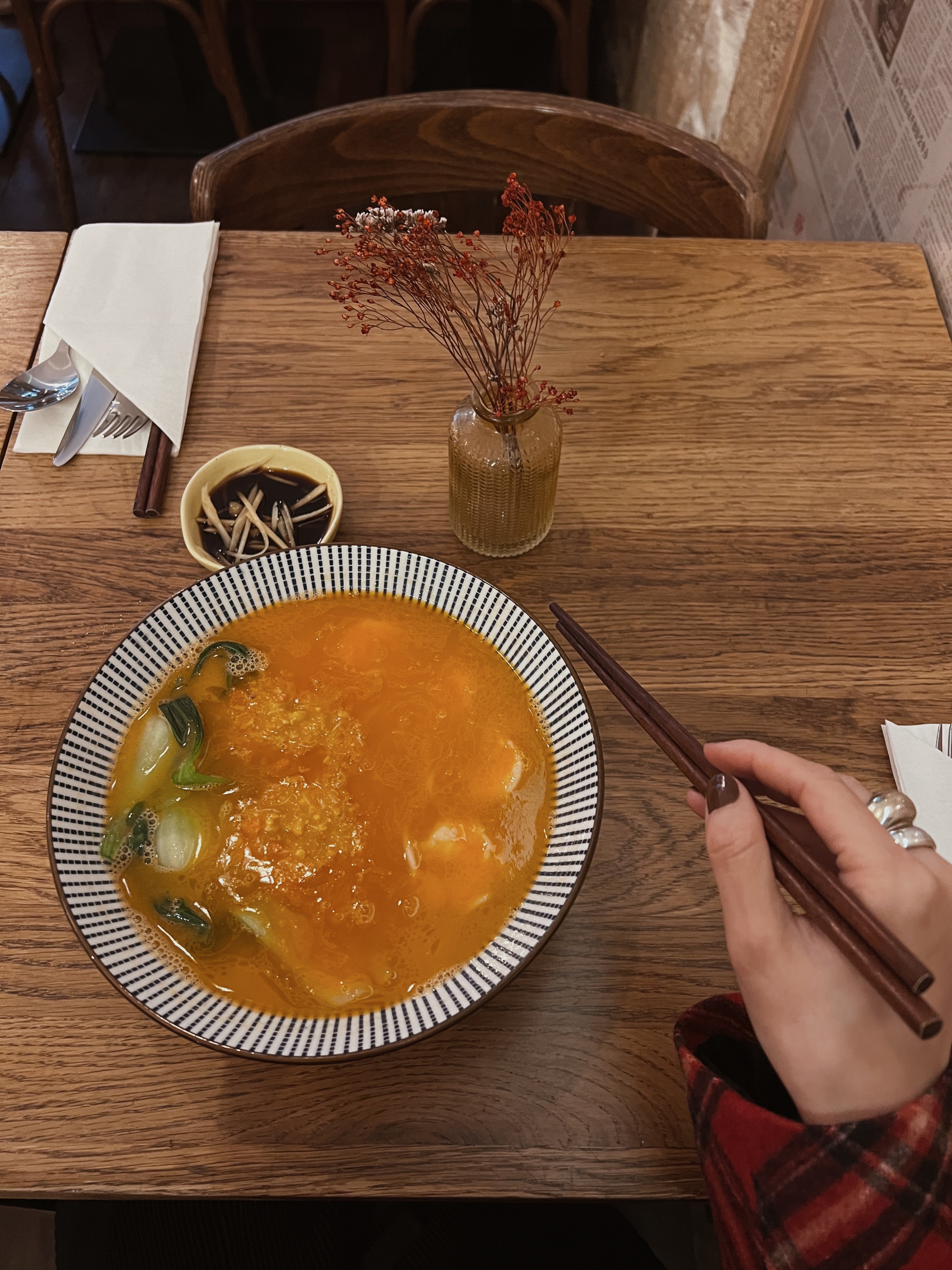 Très bien accueillie, la soupe est très très bonne et les nouilles sont good, je recommanderai ce restaurant.