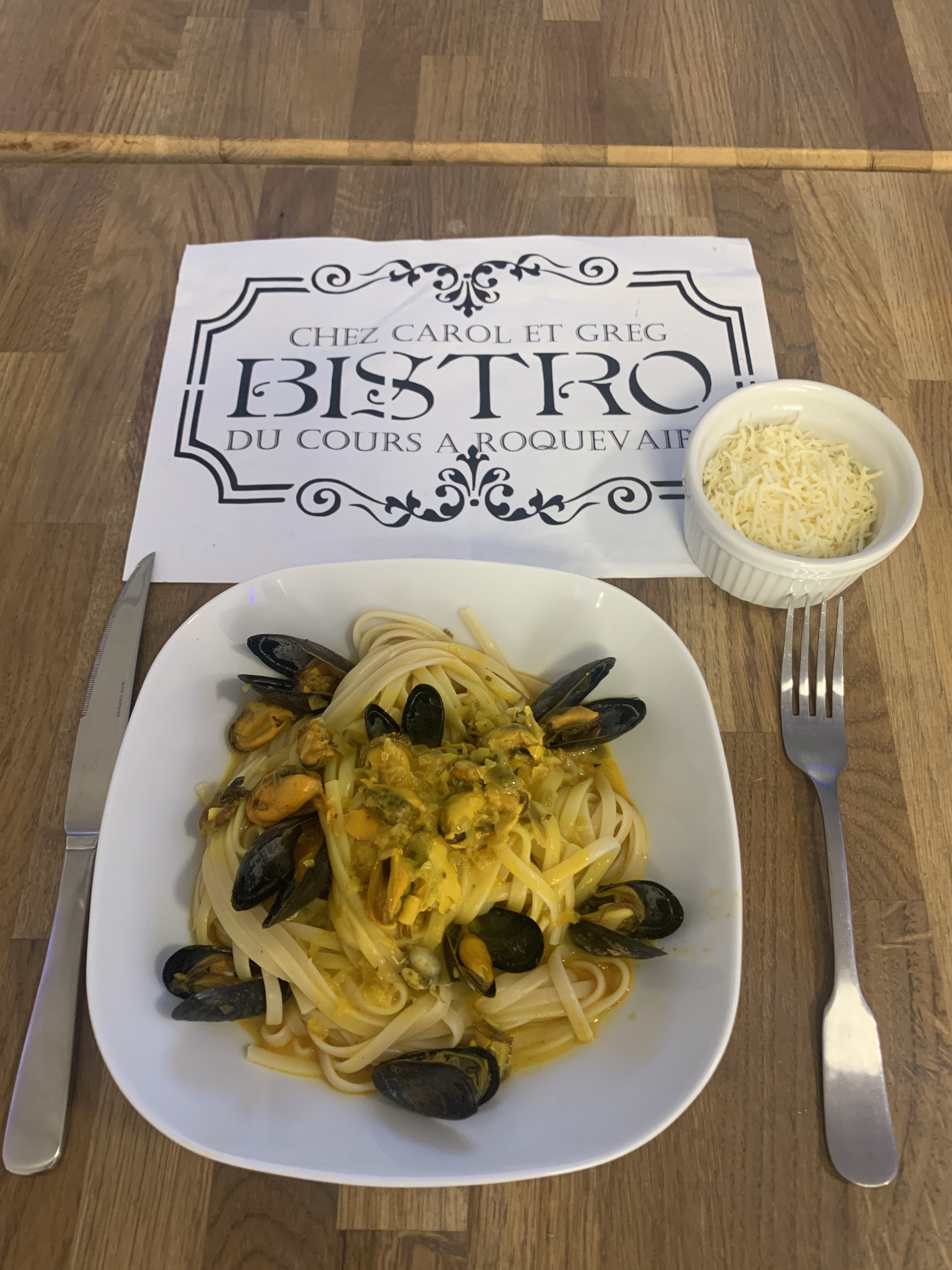 Une agréable surprise sur notre route, en passant par Roquevaire .... Des patrons au top, super sympas, un endroit qui ne paie pas de mine mais qu'est-ce qu'on y a bien mangé ! Des moules au roquefort, une ile flottante maison , tout était vraiment trop bon !