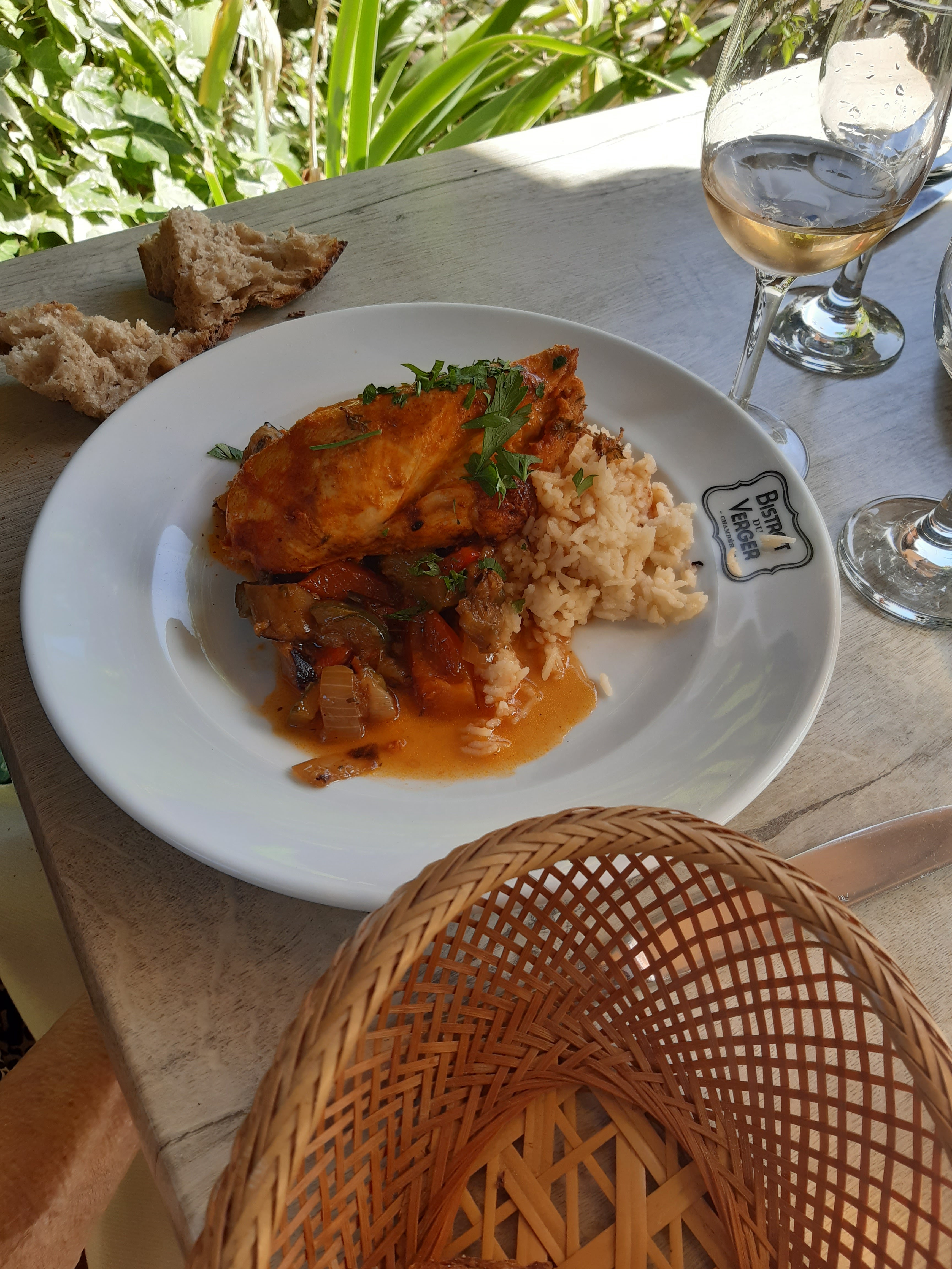 Quelle belle ambiance festive et bucolique dans le charmant jardin ombragé de ce restaurant qui propose une carte inventive et faite de produits frais Le tout servi avec sourire et humour tout ce qu’on aime ! Merci pour le vin a la ficelle qui permet de ne payer que ce qu’on a consommé