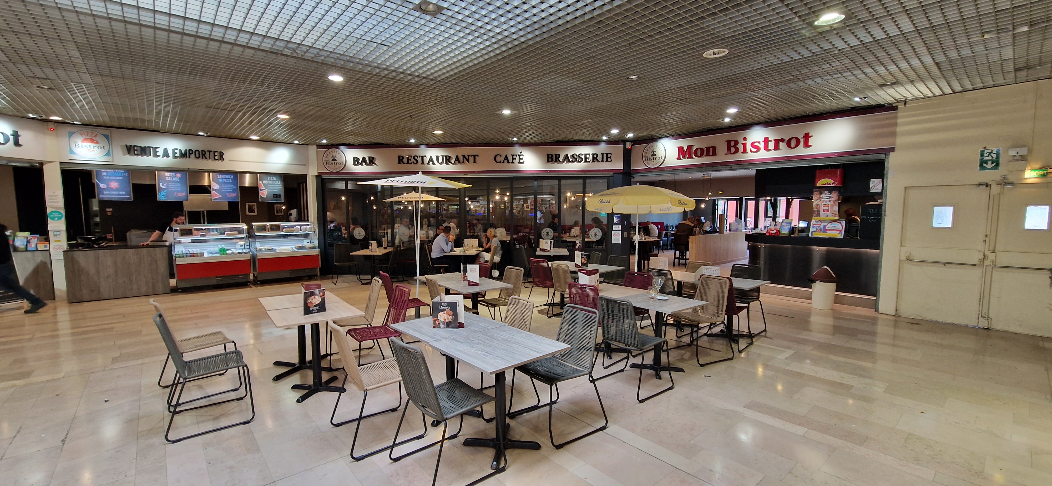Une brasserie présente dans la galerie marchande, je suis allé à la pizzeria très bonne expérience avec une personne très gentille a la caisse et en production, une formule pizza + boisson à 10,90€ prix très correct les pizzas très bien garnies avec du goût une pâte de qualité également Très belle surprise