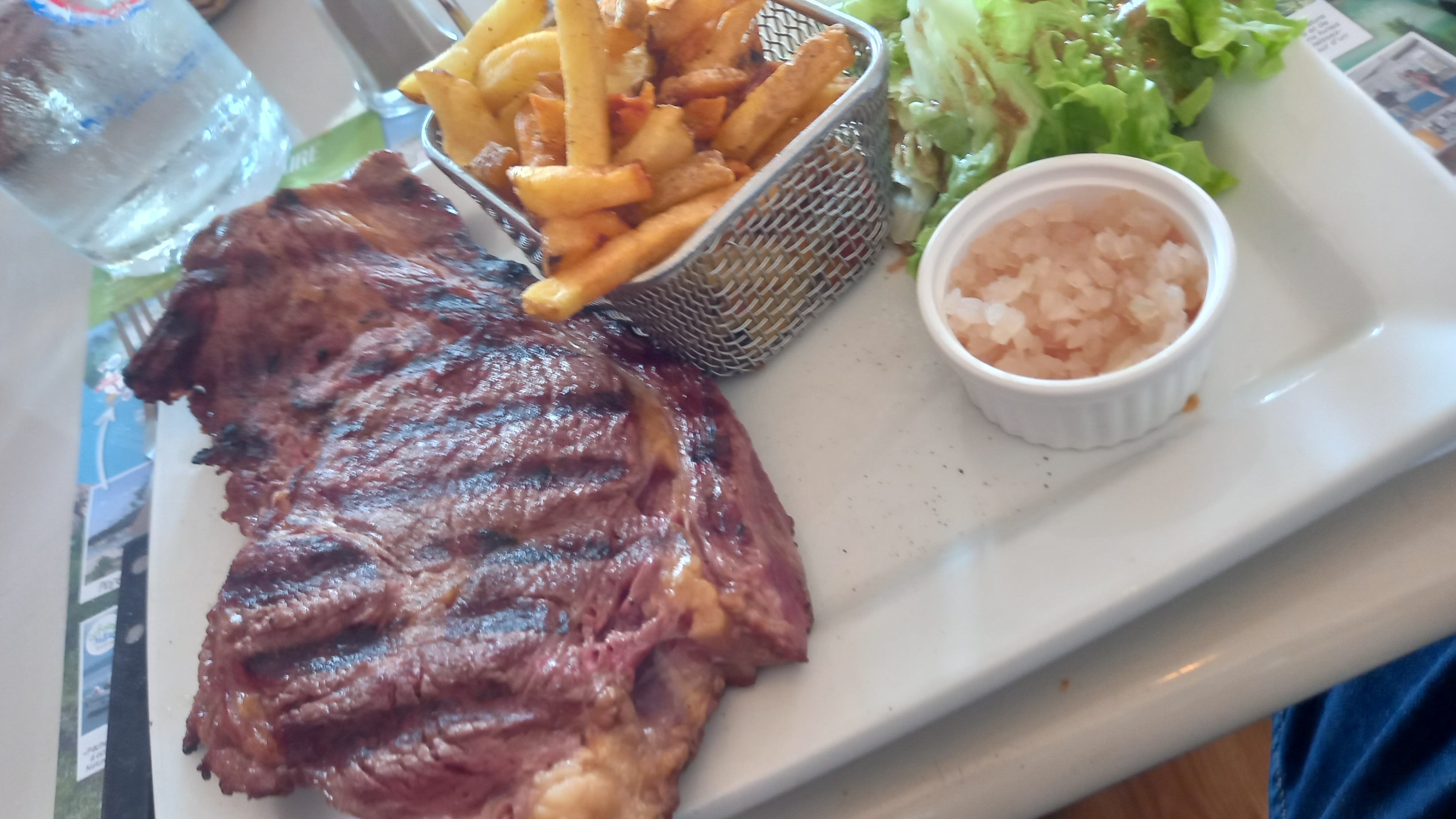 Malgré la gentillesse de la serveuse ne pas pouvoir proposer deux places à l'ombre c'est un peu dommage. Côté nourriture un tartare frites à 15.00€ aurait été correct sauf que le hachis de frites ce n'est pas à la hauteur de ce genre d'endroit. Dommage