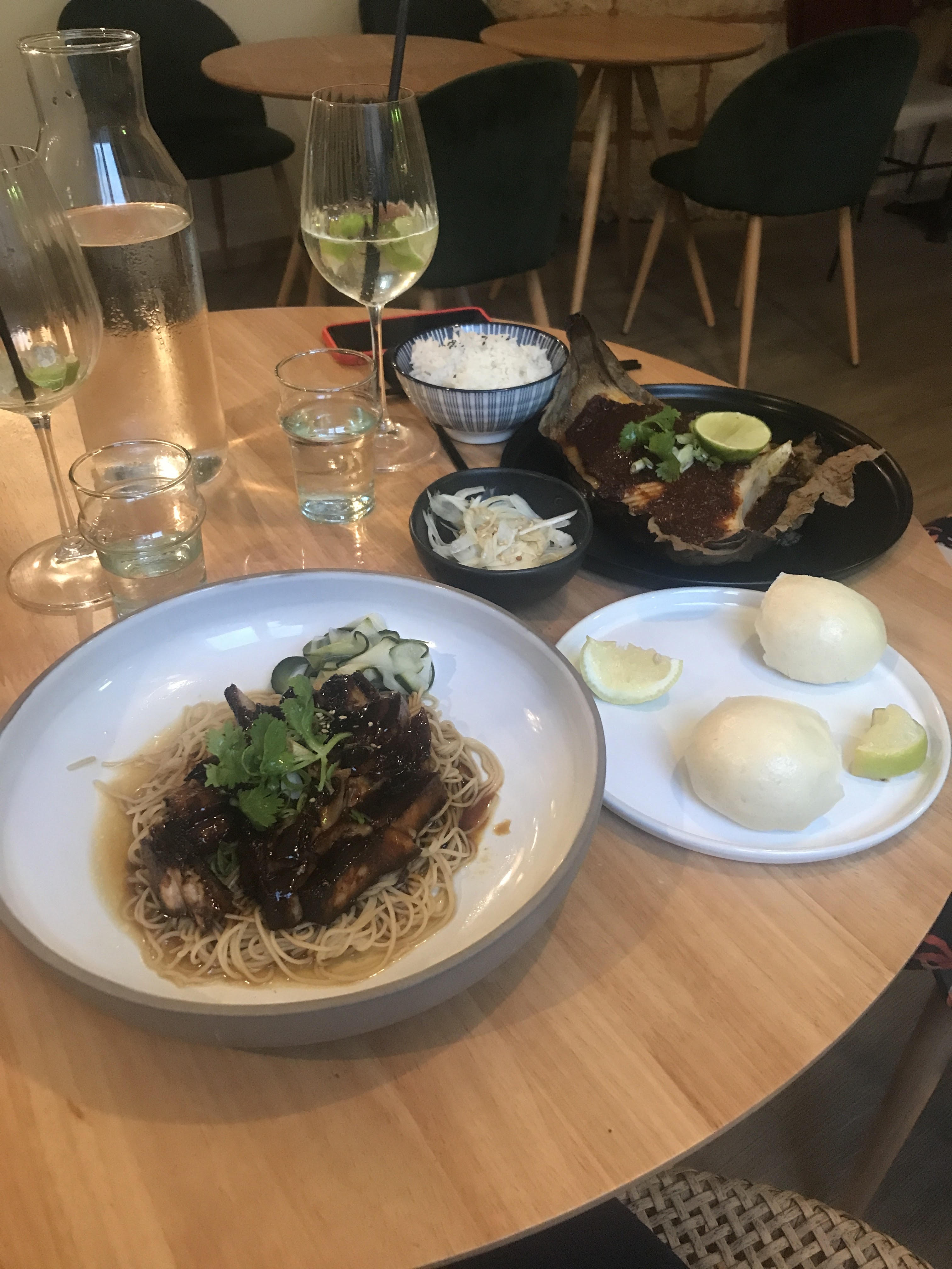J'ai pas les mots... 🤩 je crois sincèrement que c'est le meilleur resto que j'ai fait à Bordeaux (et parmis l'un des meilleurs que j'ai testé tout court). J'étais choquée par le fait qu'ils proposent du xiao long bao en entrée parce que j'en trouve très peu en France (et quand j'en trouve, c'est pas fou) et la soupe faisait tellement chaud au coeur. C'est quand j'ai vu et testé leur citronnade à base calamansi que j'ai failli pleurer. J'étais soudainement transporté à mon enfance à l'autre bout de la Terre (aux Philippines). Et j'étais encore plus heureuse de pouvoir partager ces saveurs avec mes proches qui n'auraient pas pu tester le calamansi autrement. Merci pour cette expérience, ça faisait longtemps que je ne peux pas rentrer chez moi donc c'était juste super ❤️ Pour les plats principaux, on a pris leur fameux Laksa et un plat à base de boeuf et de nouilles. Je vais commencer par dire que leur Laksa est célèbre pour une raison (deux de mes collègues ont fait l'éloge du Laksa même avant que je puiss tester pour moi même!). C'est un genre d'épicé qui fait chaud au coeur et puis vers la fin du plat, on commence à suer un peu 🥵 Je conseille d'éviter les hauts blancs si vous comptez tester le Laksa 😉 Puis le plat au boeuf était incroyablement tendre et fondant! Les nouilles étaient super moelleux et la coriandre raportait un peu de fraîcheur dans le plat. Trois serveurs nous ont demandé si on voulait un dessert. Aux 3e, la serveuse a tellement bien décrit la brioche qu'on a tous fini par craquer. Même avec le ventre plein, j'aurais pu manger la brioche perdue toute seule (mais je l'ai partagé!). J'avais un peu peur que la glace à la banane prenne le dessus sur les autres saveurs, mais pas du tout! Tous les éléments se sont super bien mariés, j'étais encore une fois, agréablement surprise (Et oui, le service était impeccable aussi!) Le décor est cosy, dans un quartier plutôt résidentiel donc c'est assez tranquille. Vraiment sympa pour un date night! Idéal aussi pour se dépayser gustativement. Merci d'offrir et de faire découvrir ces magnifiques plats aux saveurs representatifs des régions variées de l'Asie. J'ai hâte de revenir pour tester de nouveaux plats. Je sais que le restaurant change un peu leur menu de temps en temps donc je reviendrais forcément!