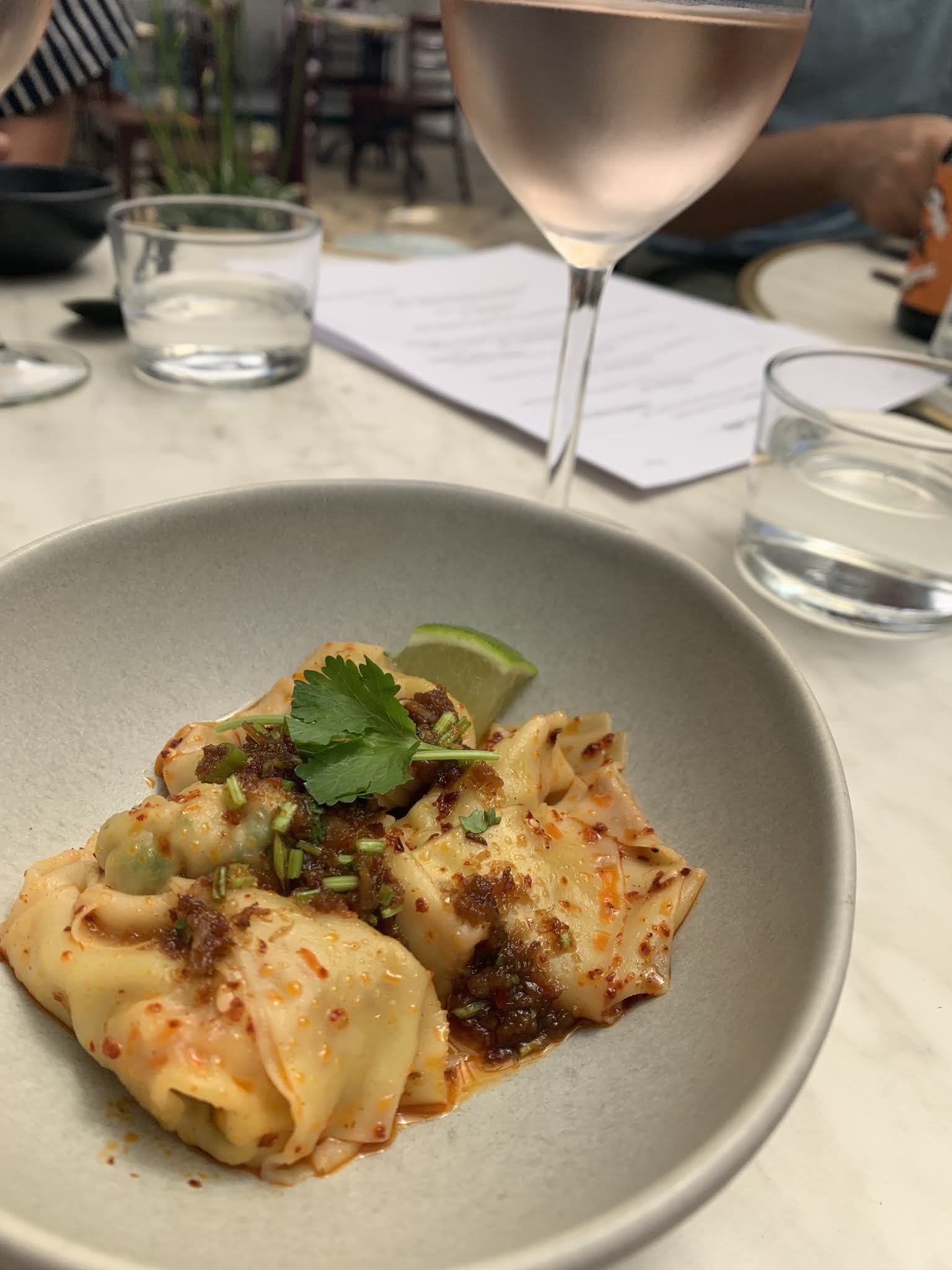 Que dire … Commençons par ce patio .. où j’avais clairement l’impression d’être dans mon salon entre plantes diverses et chaises en cannage .. Continuons par la cuisine ! Originaire de la Guyane le « sambal Chili » a attiré mon attention, FORTEMENT même ! Et il était tellement délicieux que je l’ai fini à la petite cuillère (oui le piment chez moi c’est une religion 😂). Les dimsums étaient TOUS excellents. Mon ami et moi avons pris les crevettes au lait de coco et le bœuf .. tout était très bon (j’ai dit que tout était très bon ?) Le tout arrosé d’un petit Cahors… Nous avons fini avec le cheesecake à la mangue FRAÎCHE que nous avons partagé. Tout était parfait tant la nourriture que l’accueil, le service, TOUT ! Allez-y donc les yeux fermés vous ne regretterez pas ! J’ai prévu d’y retourner, vous vous doutez bien 🤩