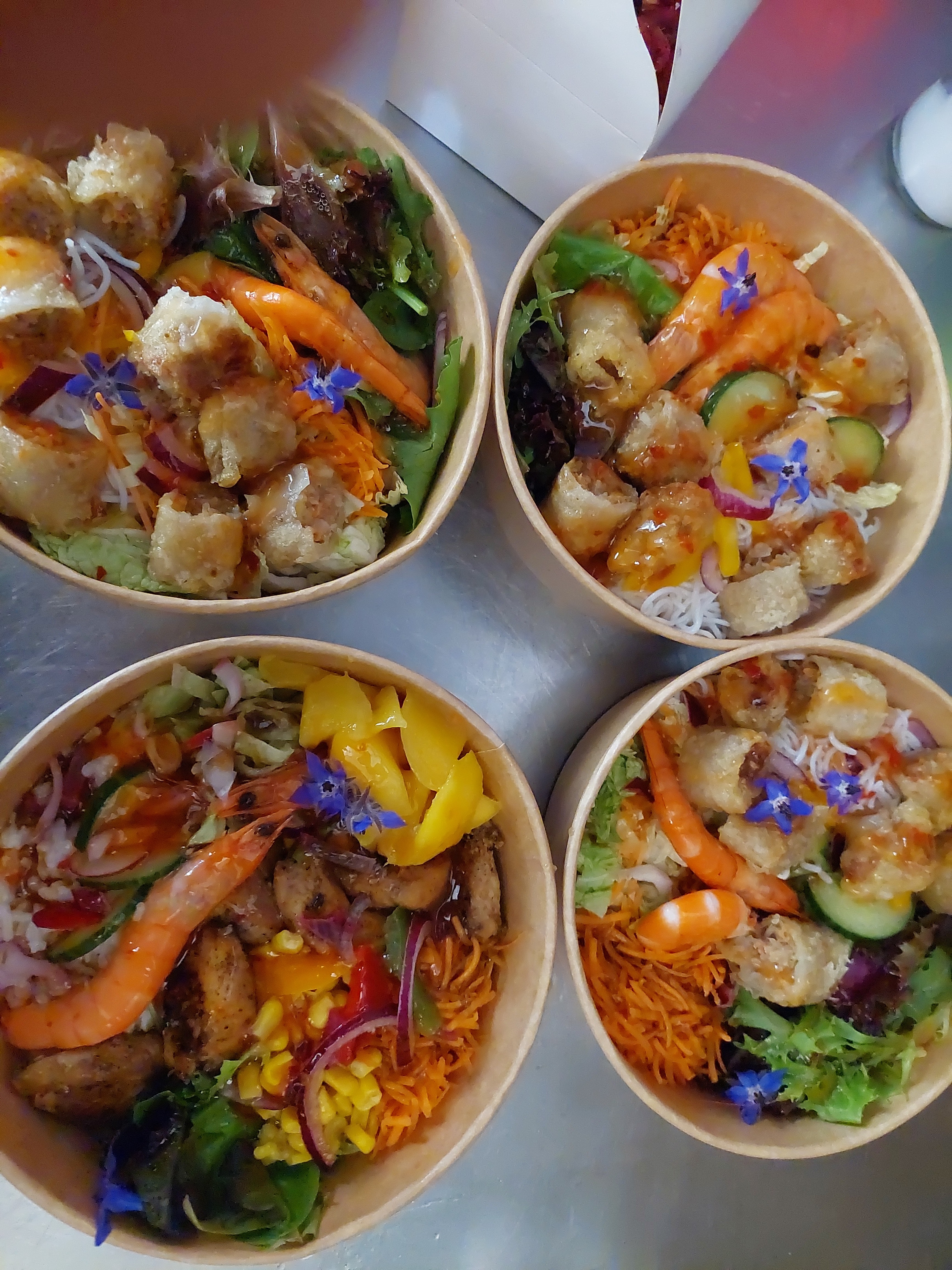 Déplorable Est ce le déménagement qui leur a fait prendre la grosse tête mais en tout cas ça a changé. +15€ pour 1 salade bobun avec: . Pâtes surcuites . 6 pauvres micro crevettes décongelées . 4 pauvres petits morceaux de nems archi sec . 5 pauvres morceaux de salades. . 3 minuscules rondelles de concombres. . Par contre la sauce salade là pas de souci, ça cache bien le raté de cette salade. Et que dire du berger au crotin de chavignol... pas de crotin mais de la simple bûche de chèvres... 1 belle arnaque aujourd'hui. Une chose est sûre c'était la dernière fois pour nous. Très très decevant Et pas la peine de répondre que c'est mon avis car c'est la réalité...photo à l'appui.