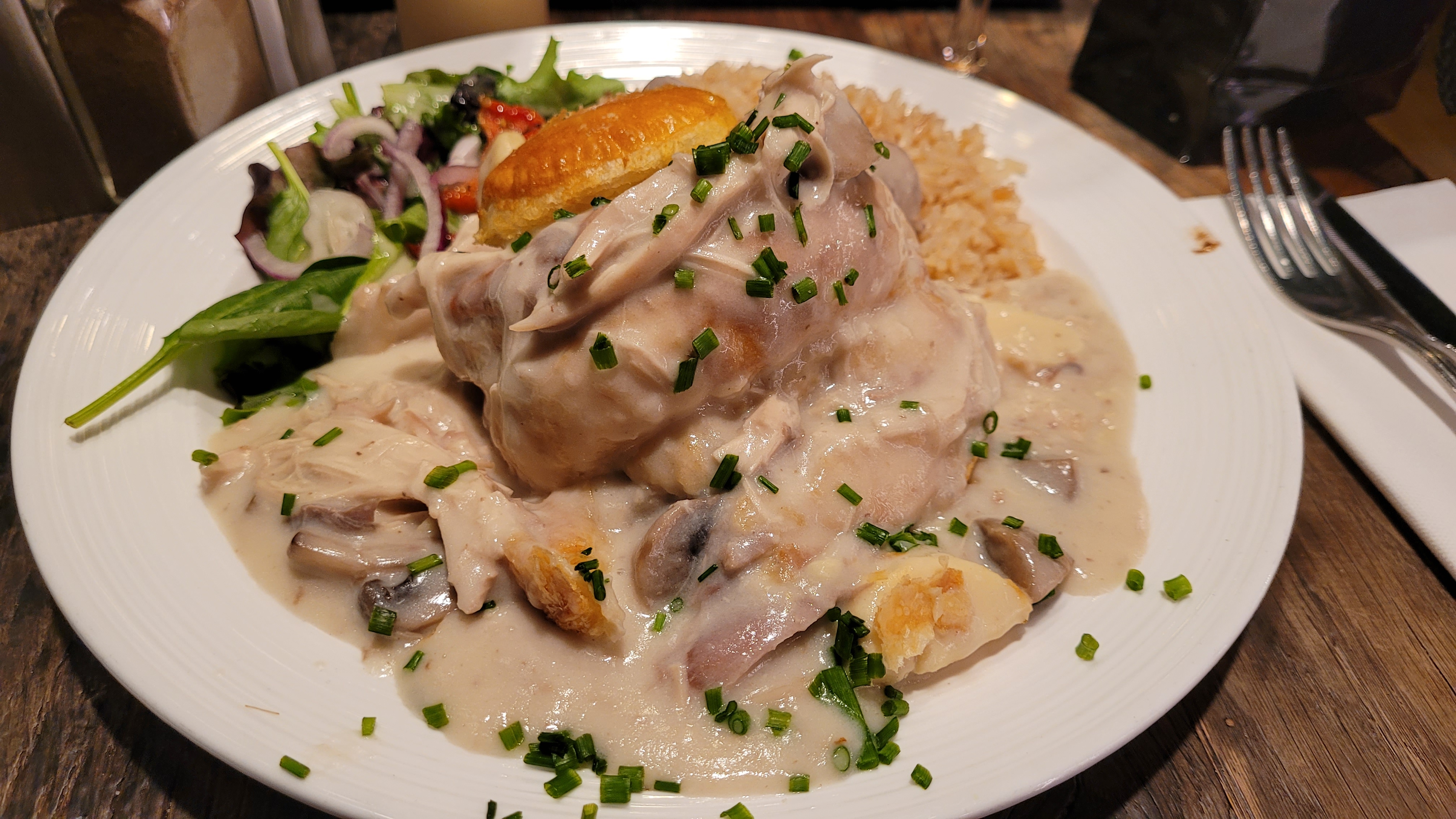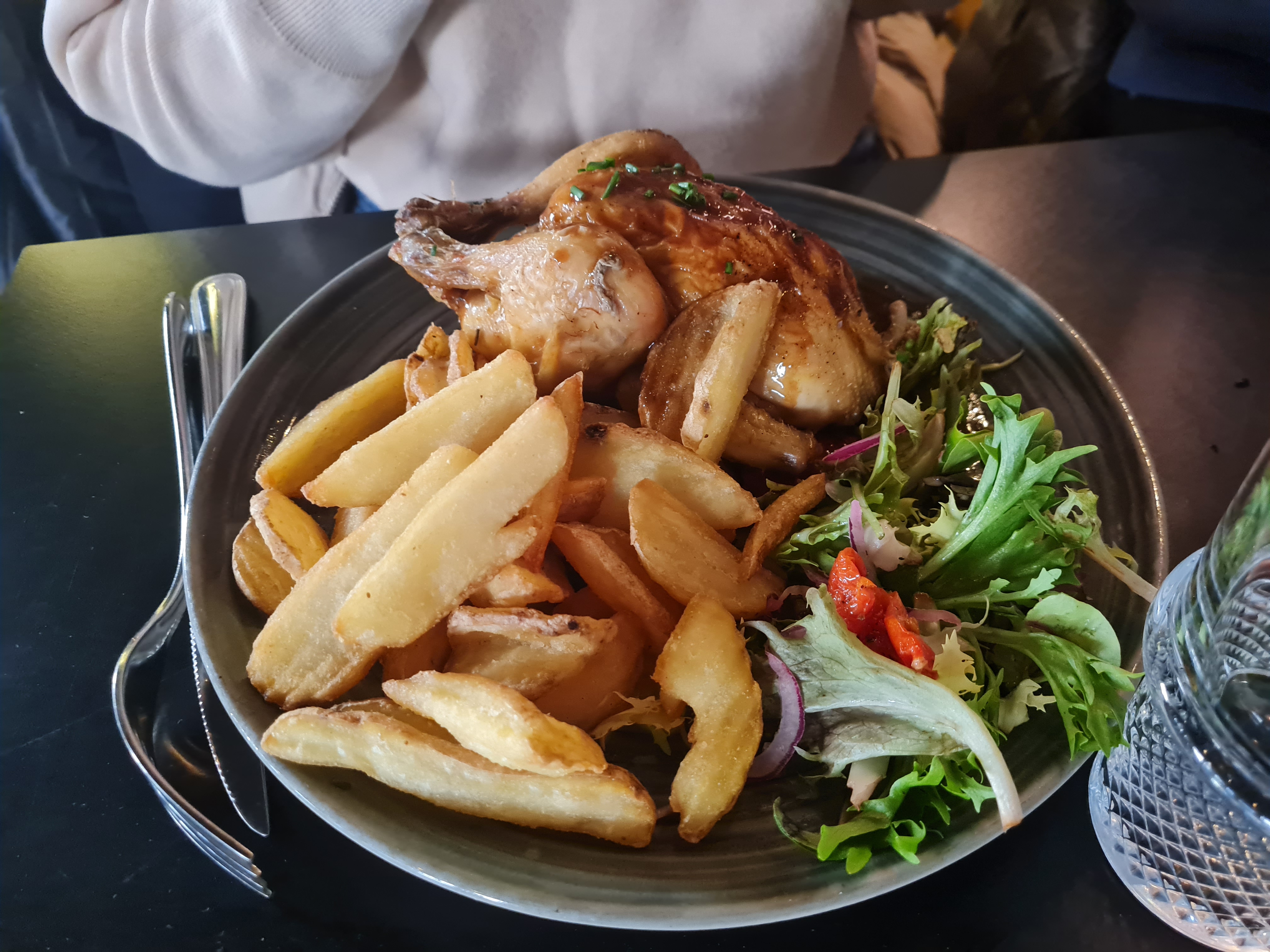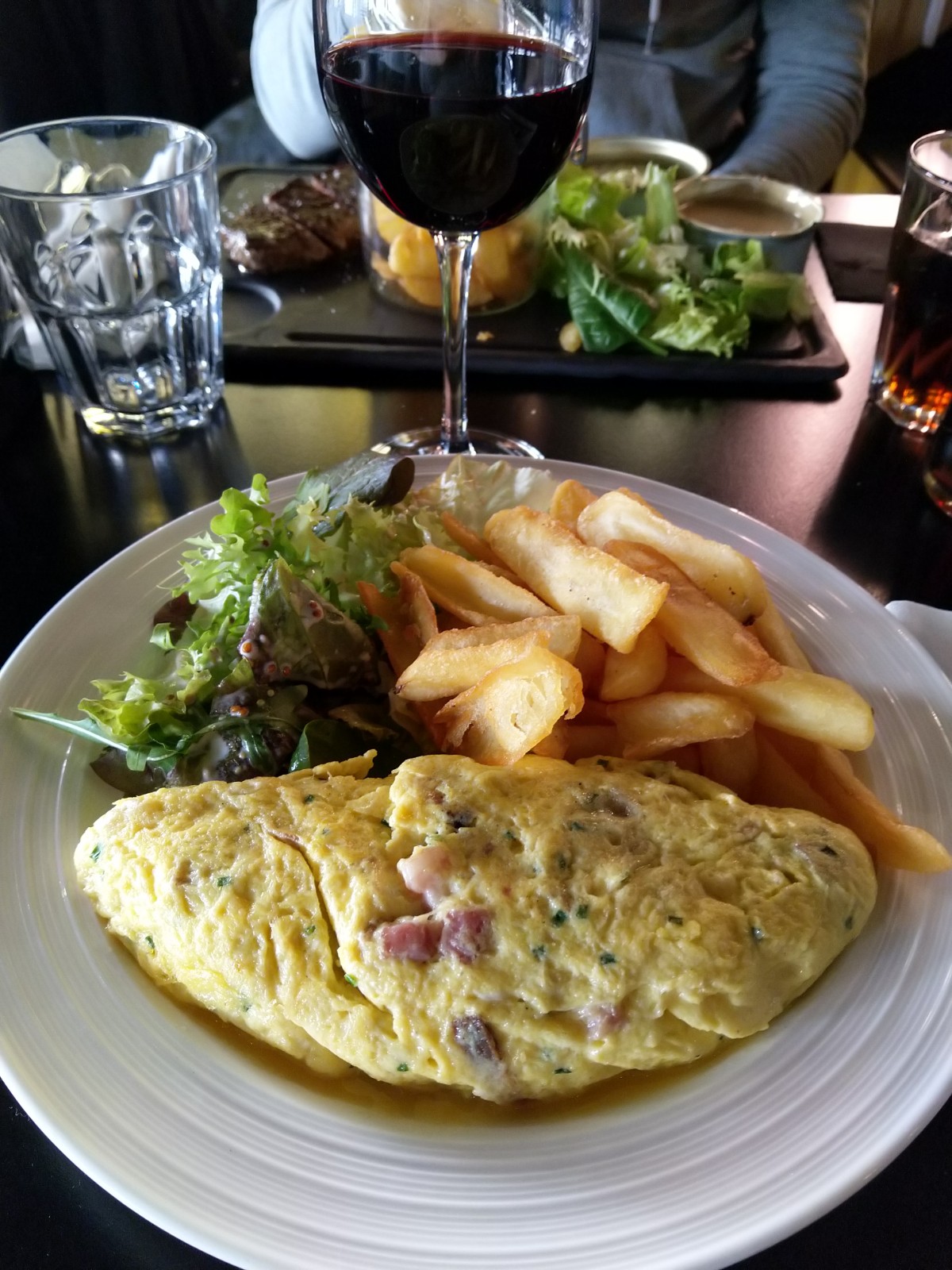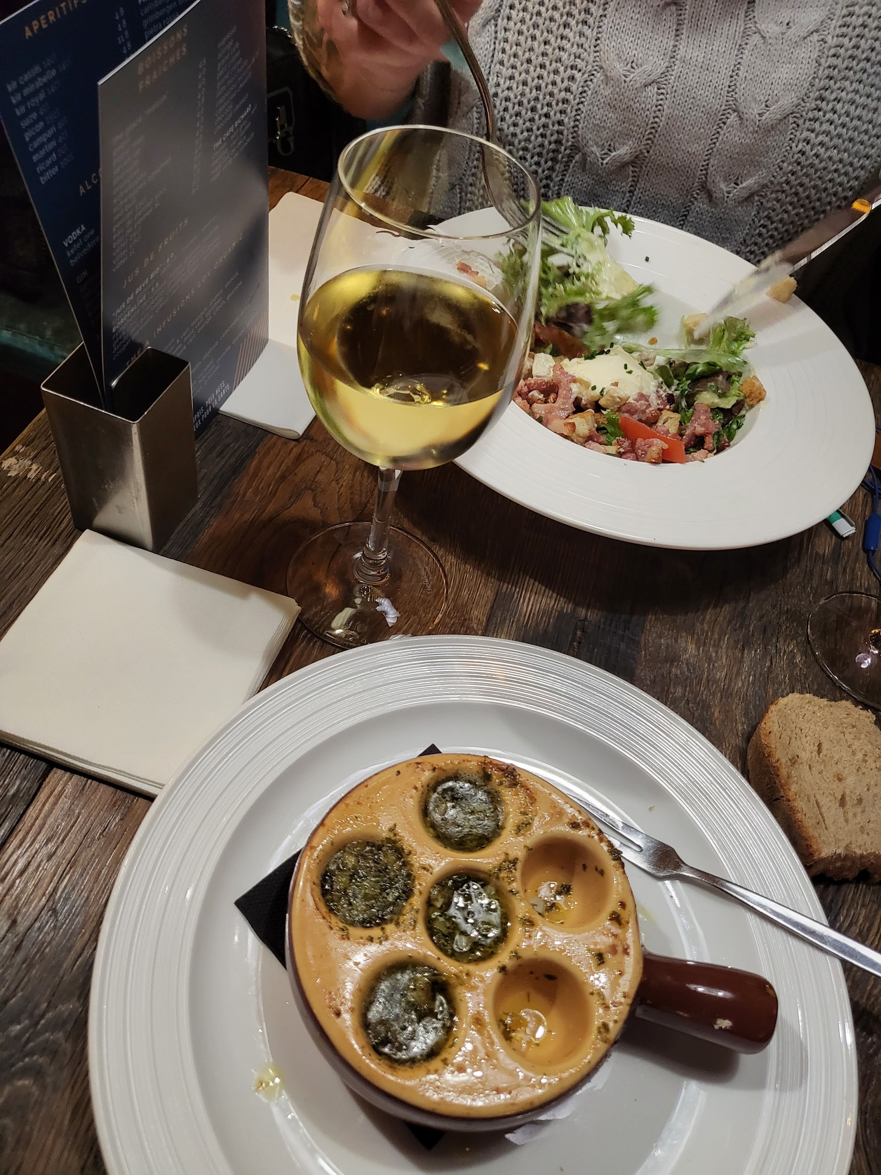 J'ai pris un faux filet Angus....accompagné de frites et d'une salade. Le resto est bien placé avec un service de qualité, mais dans un resto l'important c'est la qualite de la nourriture. Pour 24 euros 50, la viande Angus était loin d'être de bonne qualité, les frites en sachet, la sauce au poivre sous vide, et la salade minuscule. Ma femme a pris une salade vosgienne très très grasse selon elle.