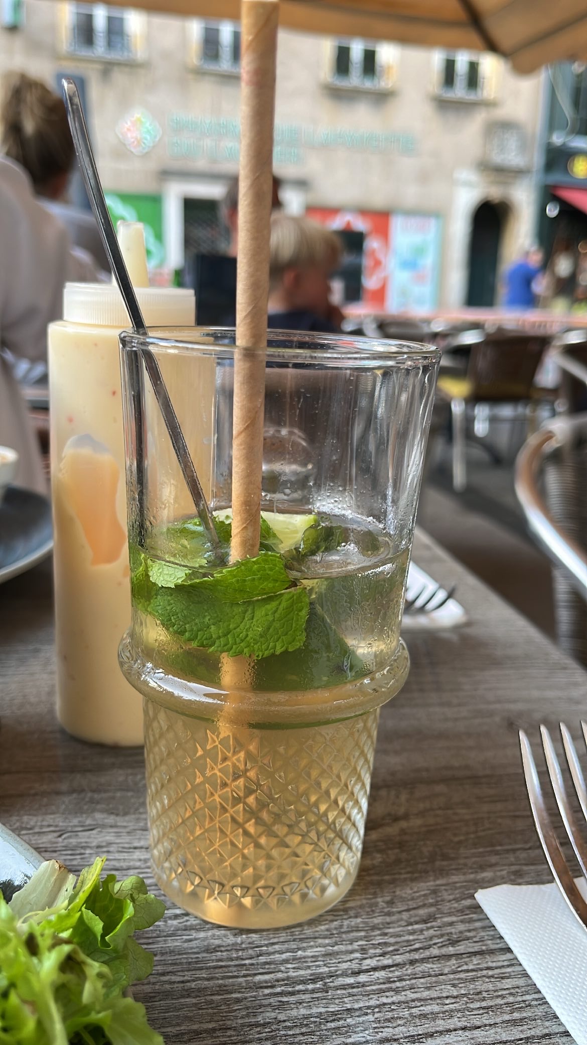 De passage à Metz, nous sommes passés par là place Saint Jacques et ce restaurant à attiré notre regard. Après avoir consulté les menus, nous nous sommes installés à la terrasse ombragée. Les serveuses attentionnées et disponibles ont répondu à nos interrogations avec précision. Gratin de spaetzel et côte de porc marinée ont ravi nos papilles. Les plats étaient systématiquement accompagnés d'une salade présentée dans un bocal, idée originale. Nous avons passé un bon moment d'autant que les tables n'étaient pas collées les unes sur les autres et pourtant affluence il y avait.