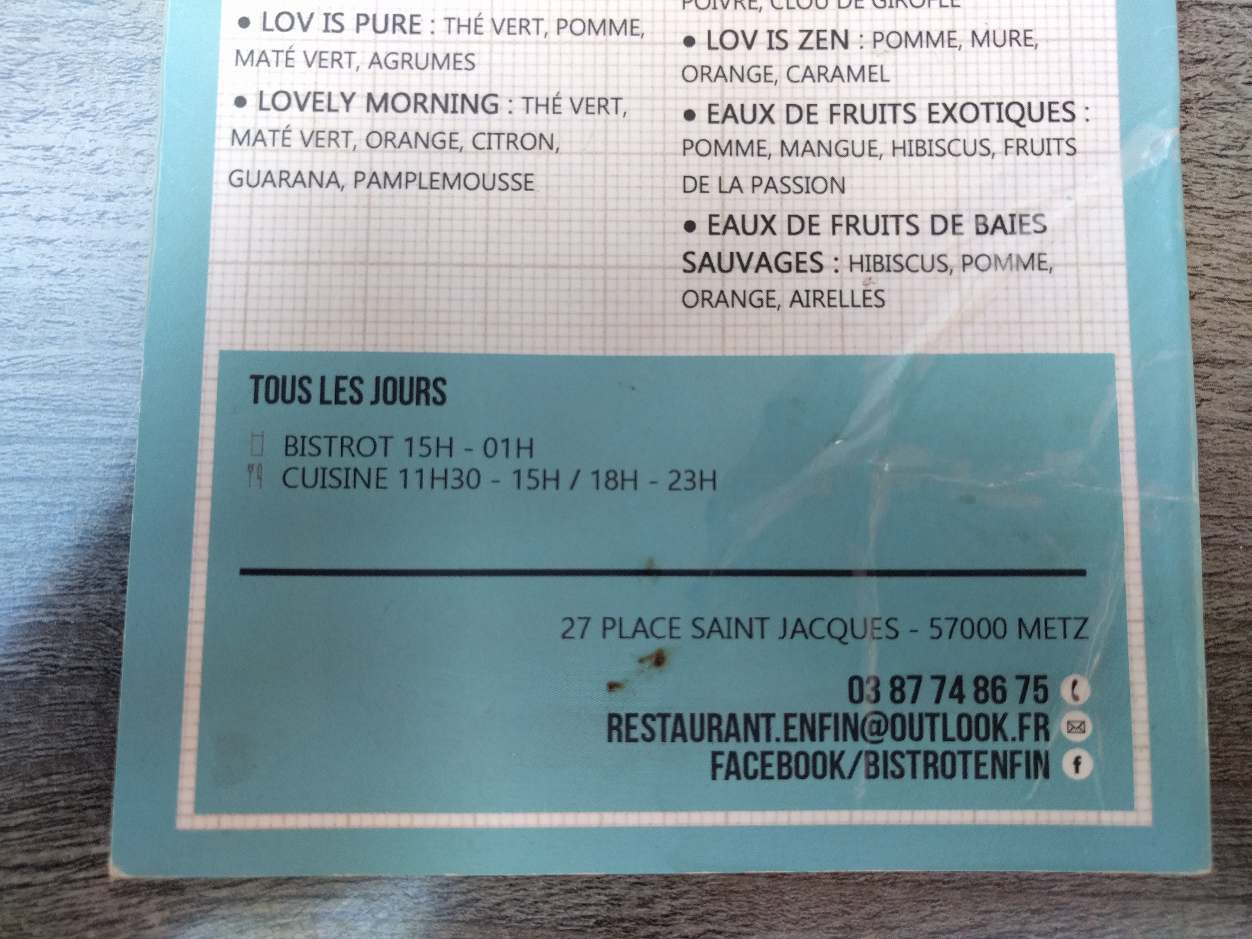 Un super restaurant à découvrir sur Metz une cuisine de qualité que des produits frais une ambiance chaleureuse vous pouvez profiter d’une belle terrasse sur la place saint Jacques un restaurant que j’apprécie énormément si vous passez sur Metz c’est un lieu incontournable. Je remercie l’équipe pour son professionnalisme et sa gentillesse .