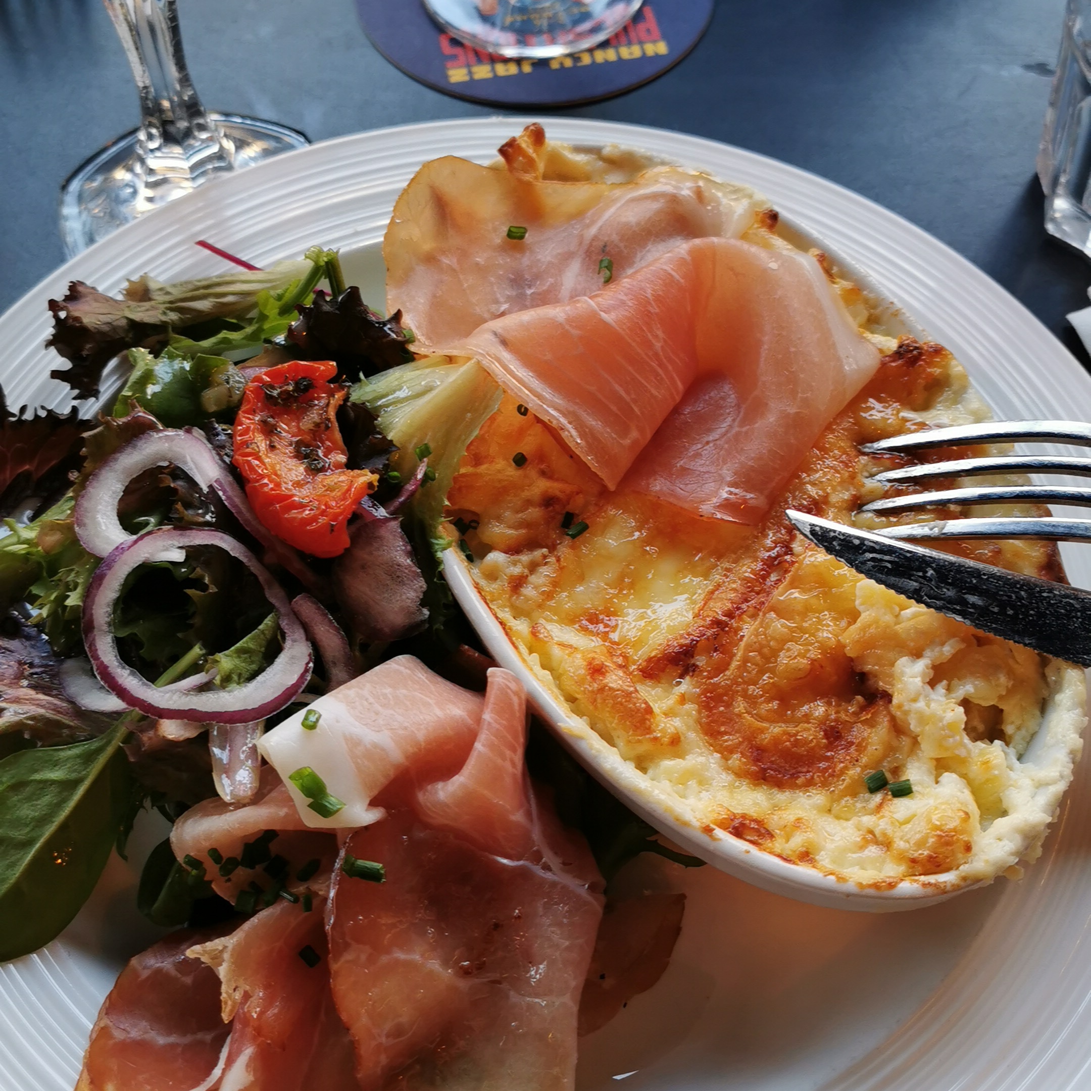 Un emplacement très agréable. Le personnel serviable et très agréable ils aiment leur métier et cela ce ressent ! La cuisine un régal ! Un os a moelle à deux a l'apéro simple mais efficace. En plat un gratin de spezles et un cordon bleu bresaola mimolette ... Il n'en n'a pas fallu plus pour rendre mon passage rapide sur Metz comme un magnifique souvenir culinaire. Merci à vous.