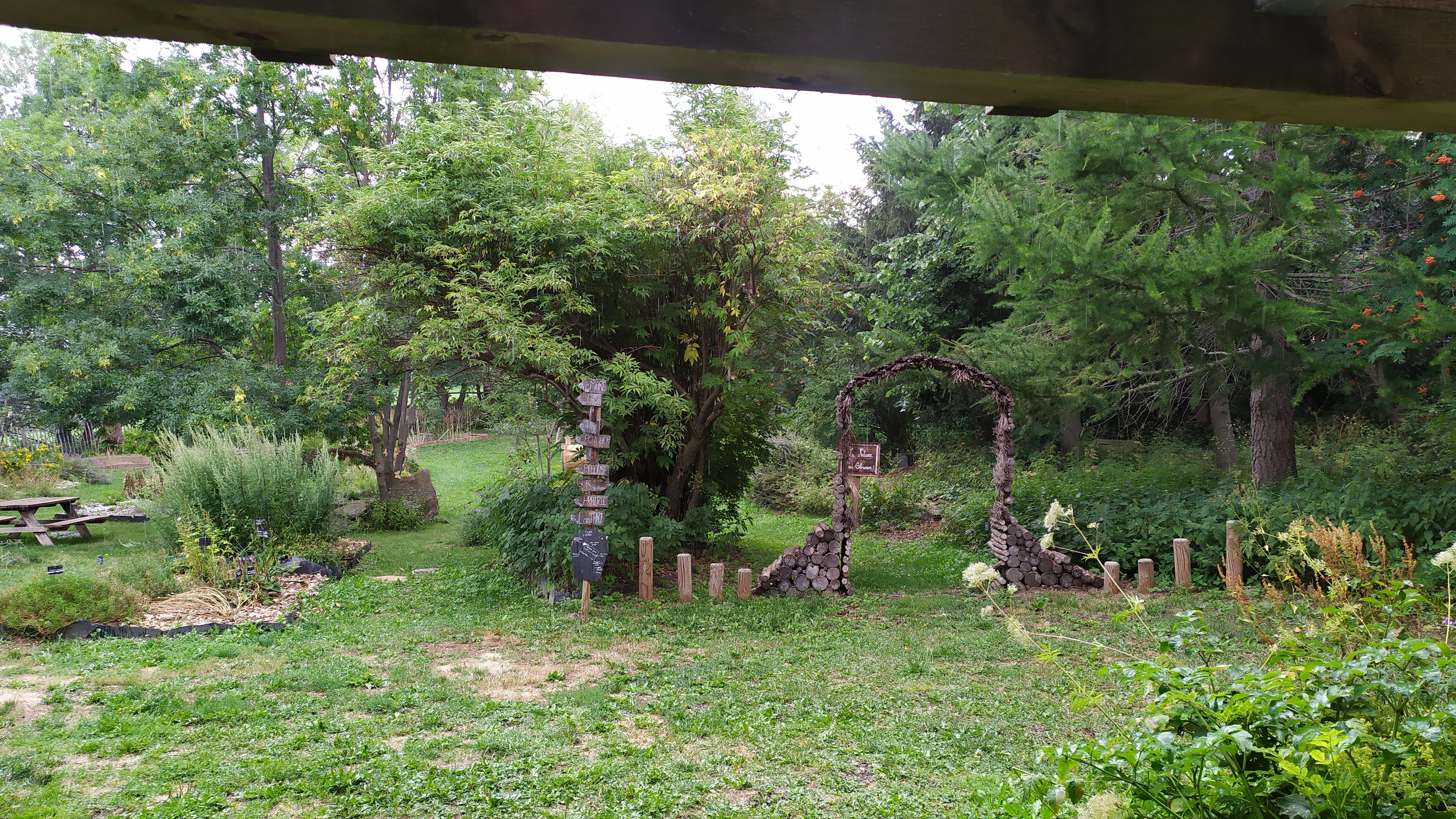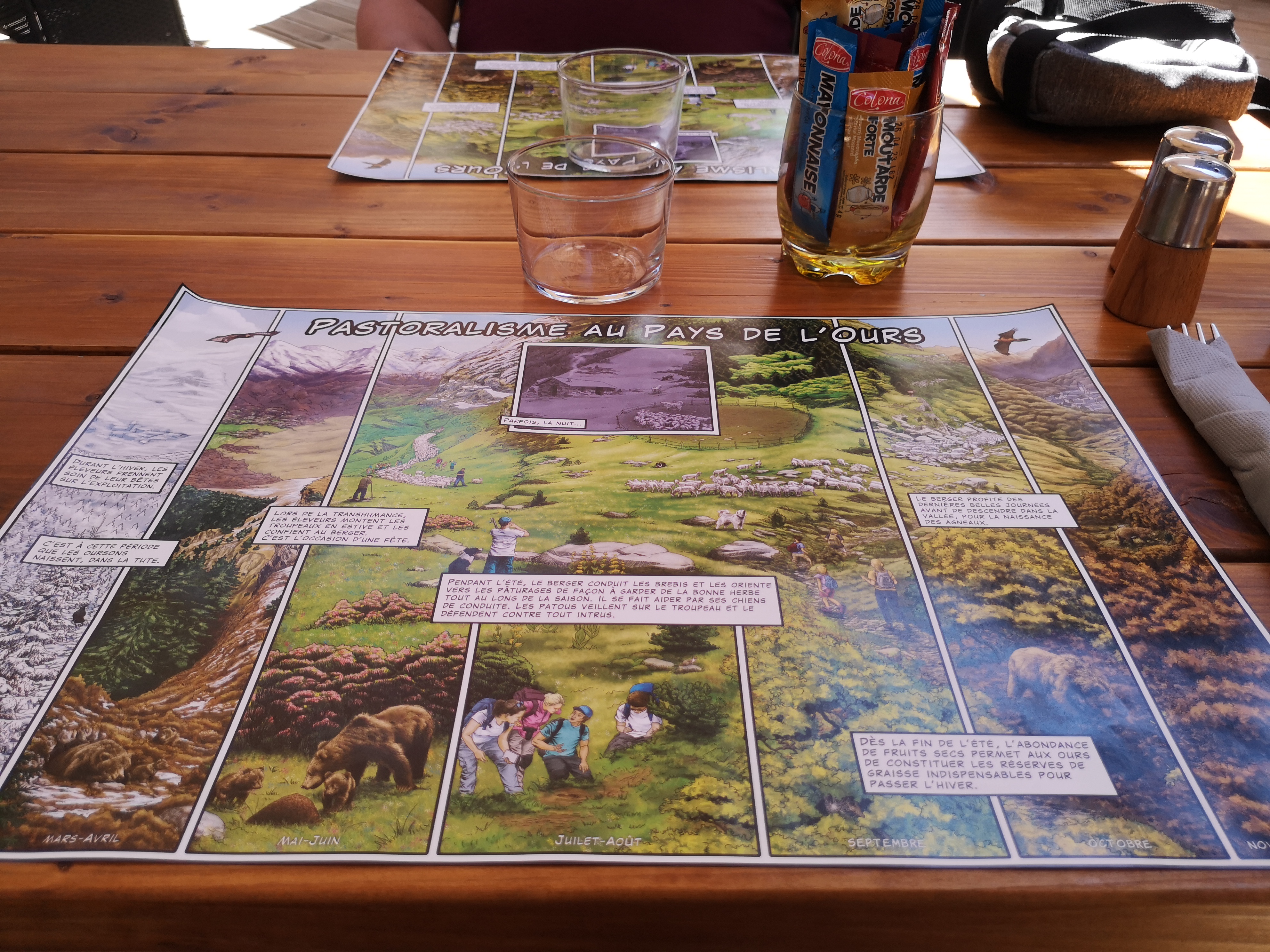 7,50 euros deux tranches de perrier de 20 cl... ça fait mal !!! Et un pantalon sur le banc qui suinte de la sève de pin... ça fait mal aussi... D'autre part, l'expo photo fleurs de montagne et l'accueil à la maison de L'ours juste à côté...Supersime !