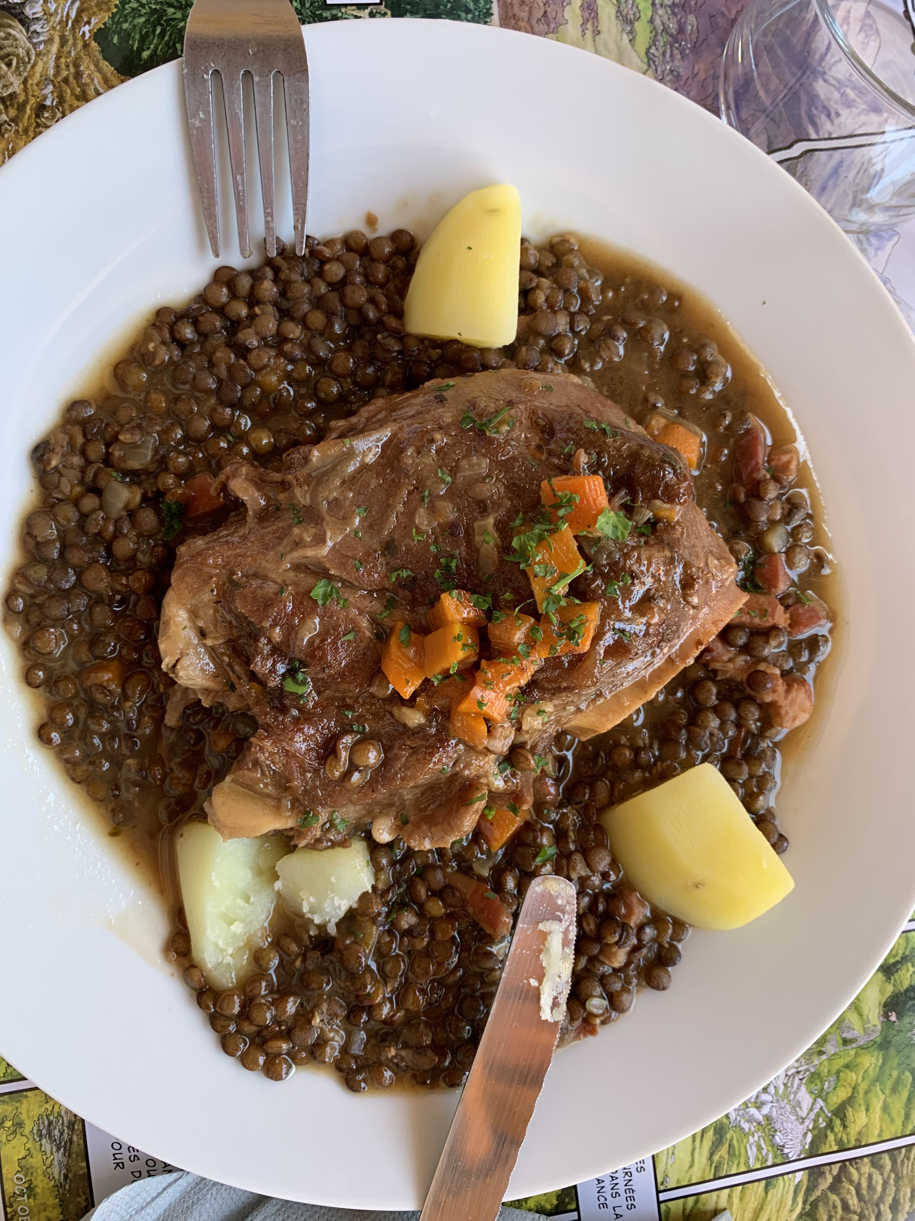 Après une belle excursion dans les environs nous descendons juste devant L'Indret. L'endroit dit qu'il est ouvert de 9h à 20h, mais le propriétaire n'a même pas voulu servir de sandwich et nous a crié dessus car il était 15h. Pourtant, à quelques kilomètres de là, toujours en France, ils nous ont accueillis très gentiment avec une bonne assiette de fromage et jambon, du pain aux tomates et une bière fraîche.