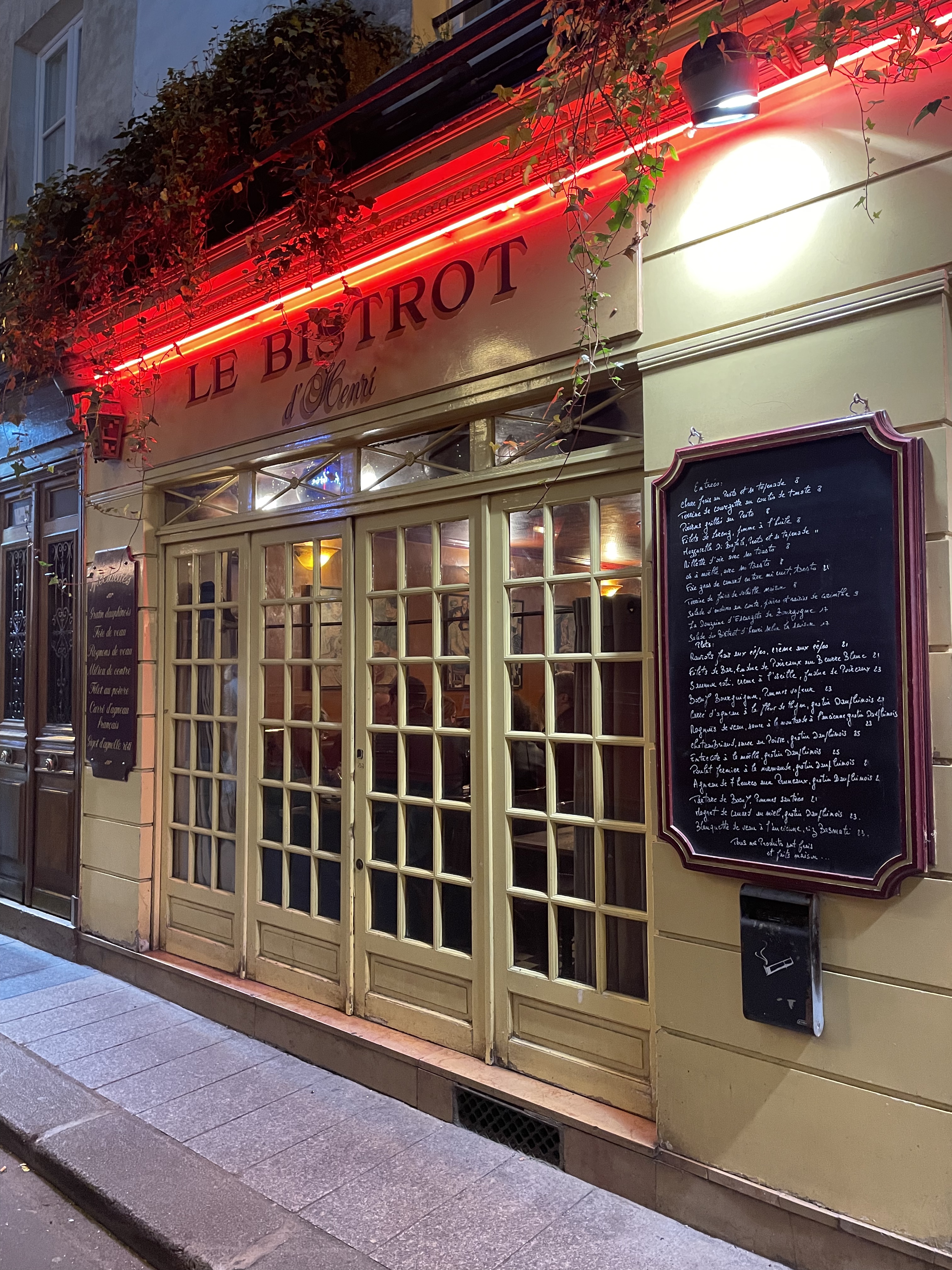 Dîner à l’improviste au bistrot d’Henri, quelle régalade! Accueillis avec un grand sourire, les assiettes super copieuses et excellentes, recettes françaises comme chez mamie, on a adoré et on reviendra vite!