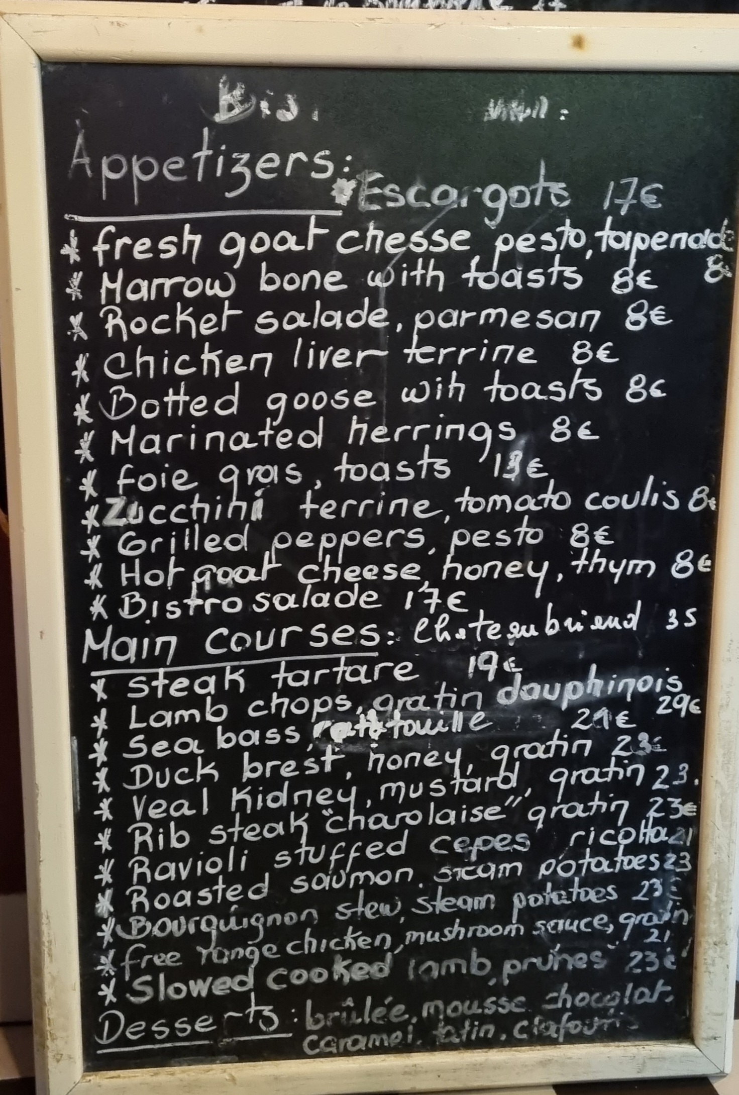 Bistrot authentique et confortable dans une ruelle. Os à moelle, foie gras, bœuf bourgionon, agneau aux pruneaux et vins de la maison étaient exceptionnels. Excellent personnel parlant anglais également.