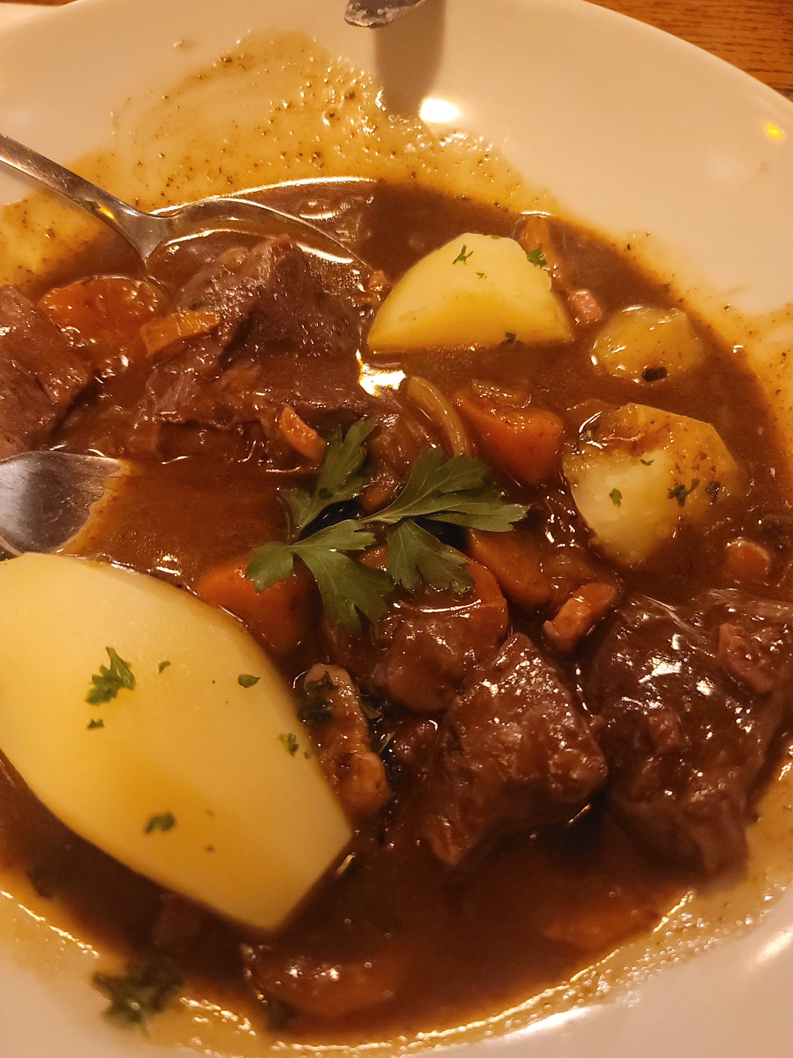 Le bouef bourguignon était correct mais un peu trop salé. La portion était également un peu plus petite que prévu. La crème brûlée était tout à fait correcte ! Le service était moyen, à un niveau acceptable pour moi.