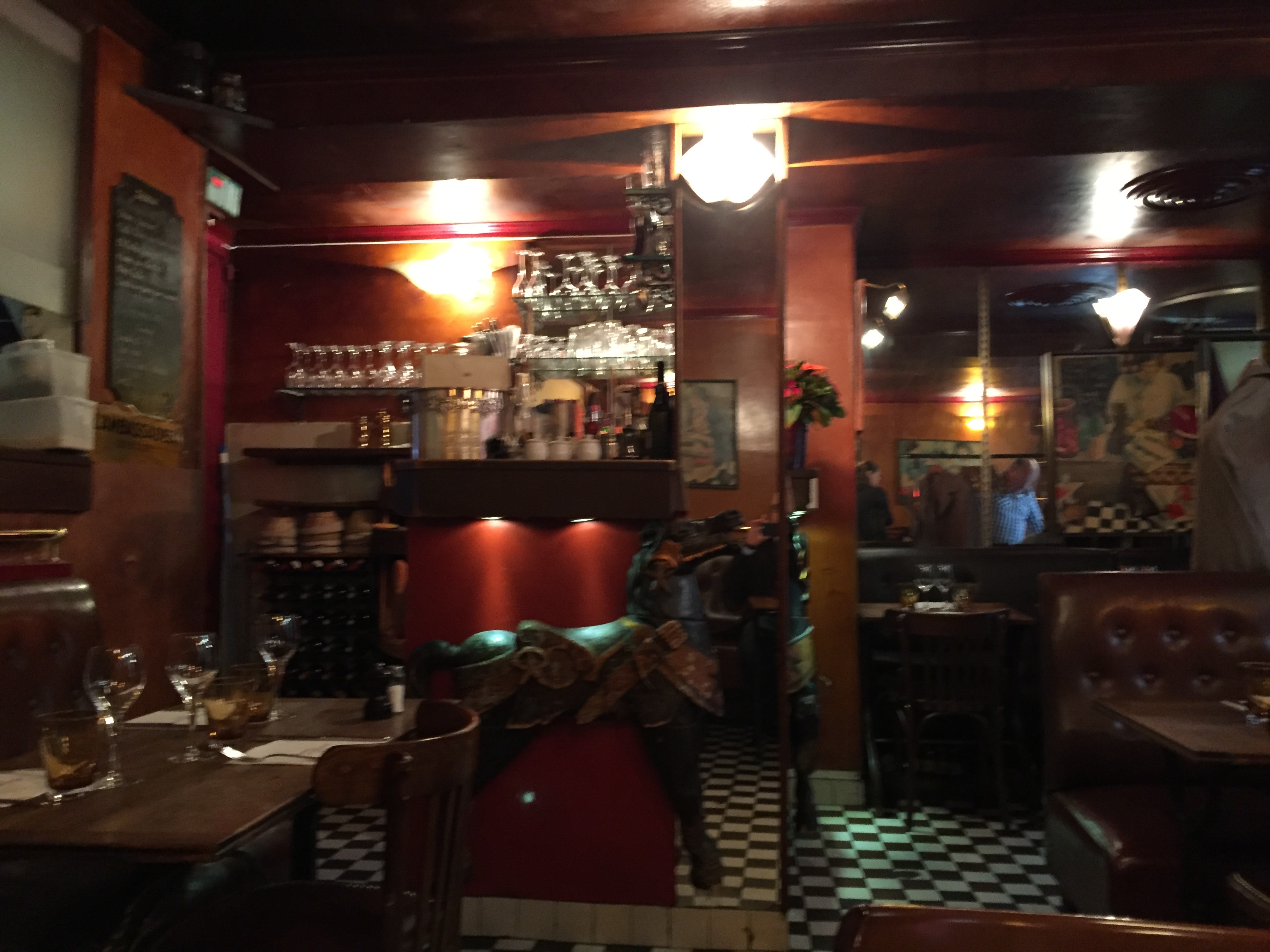 Bistrot parisien à l’ambiance sympathique qui mériterait un bon coup de propreté.