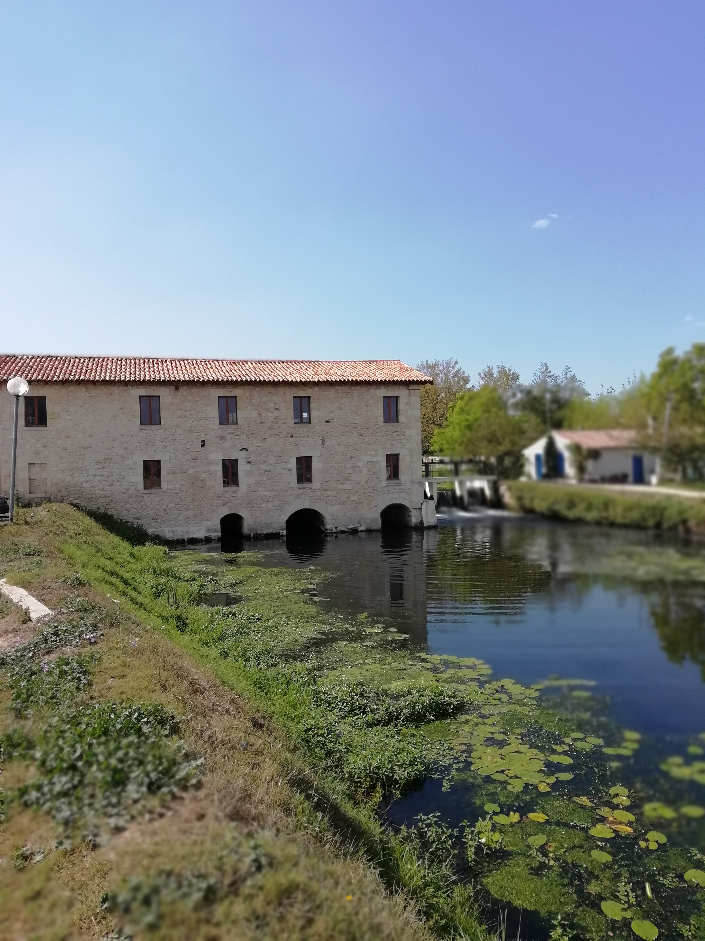 Superbe endroit devant la jalle ( cours d’eau) qui longe la terrasse et aboutit à la retenue du moulin au bout du restaurant
