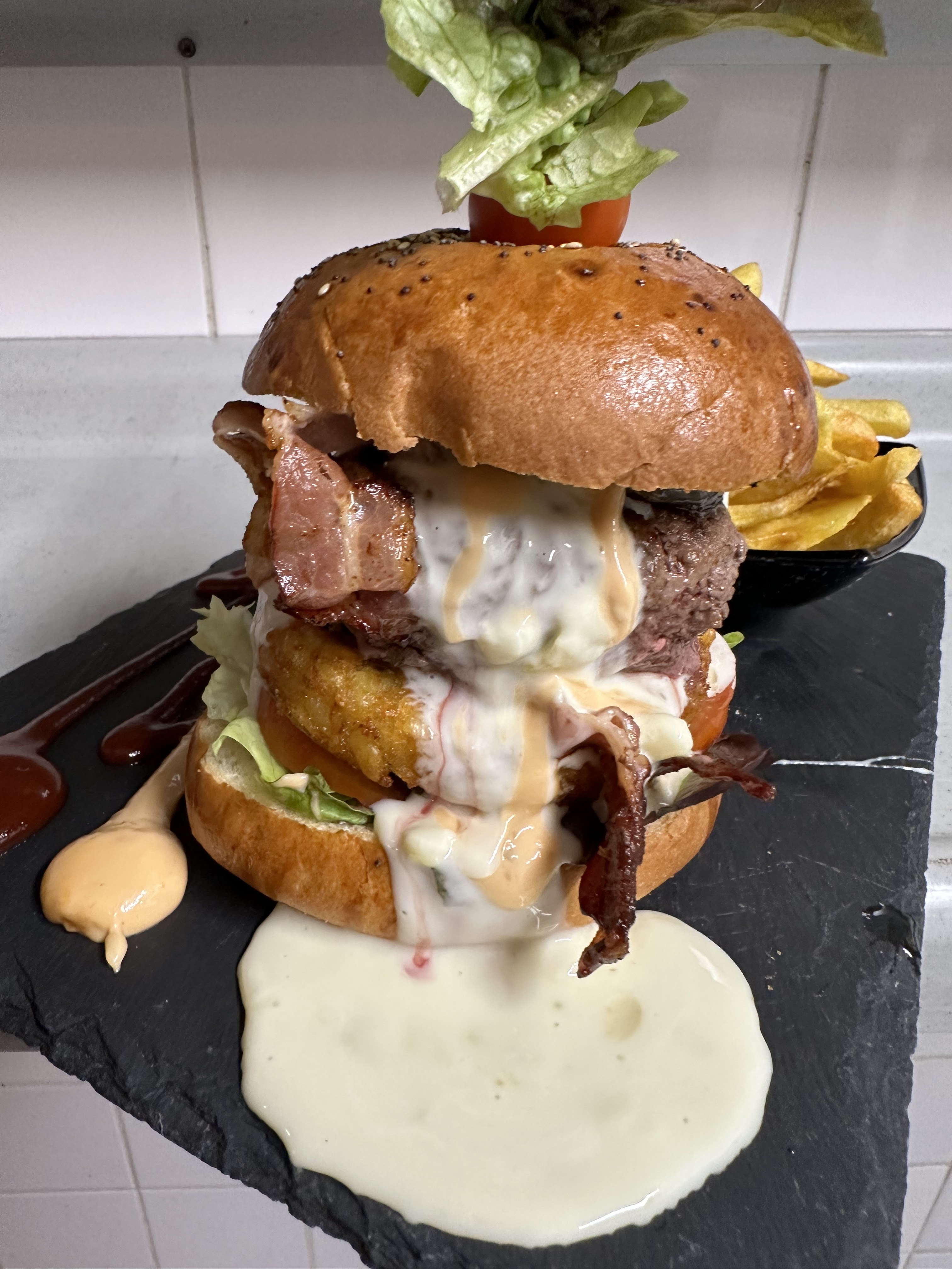 Wow franchement c’était un des meilleurs burgers de ma vie et les frites sont les meilleurs de Saint-Germain et peut-être de la france super ambiance au park.
