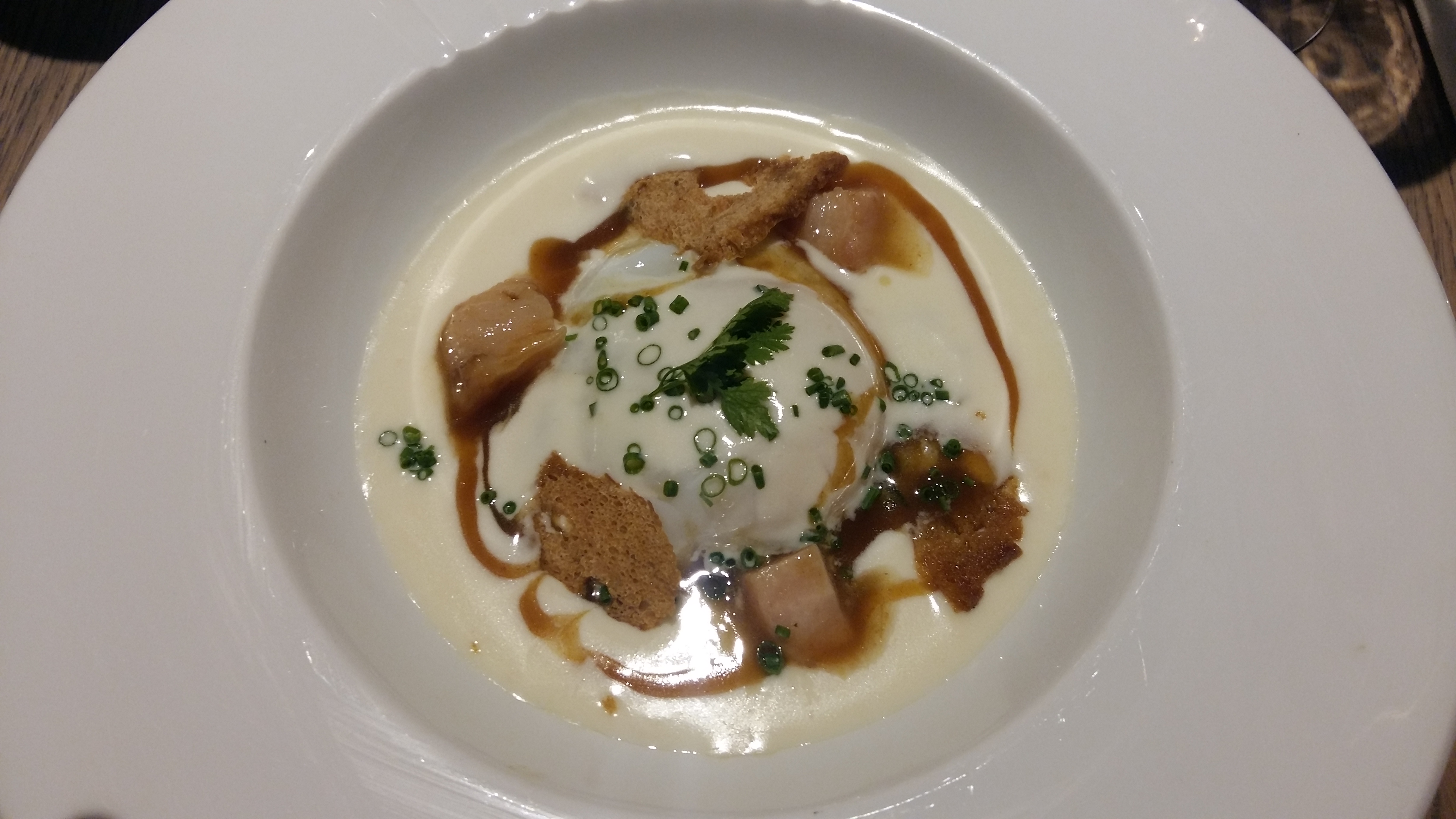 Mais que s’est-il passé dans ce restaurant que mon amie m’a vanté comme étant excellent ! Des asperges servi avec une mousseline aussi dur que une purée, un haddock si sale que nous l’avons renvoyé avec une purée à l’étrange goût de noix de coco 😙pour se rattraper, on nous a offert deux desserts qui était un gâteau aux pommes et une tartelette citron sortis visiblement de la chambre froide et immangeables Du service et souriant plaisant le décor superbe la clientèle très septième mais tout ça ne remplace pas ce qui est dans l’assiette