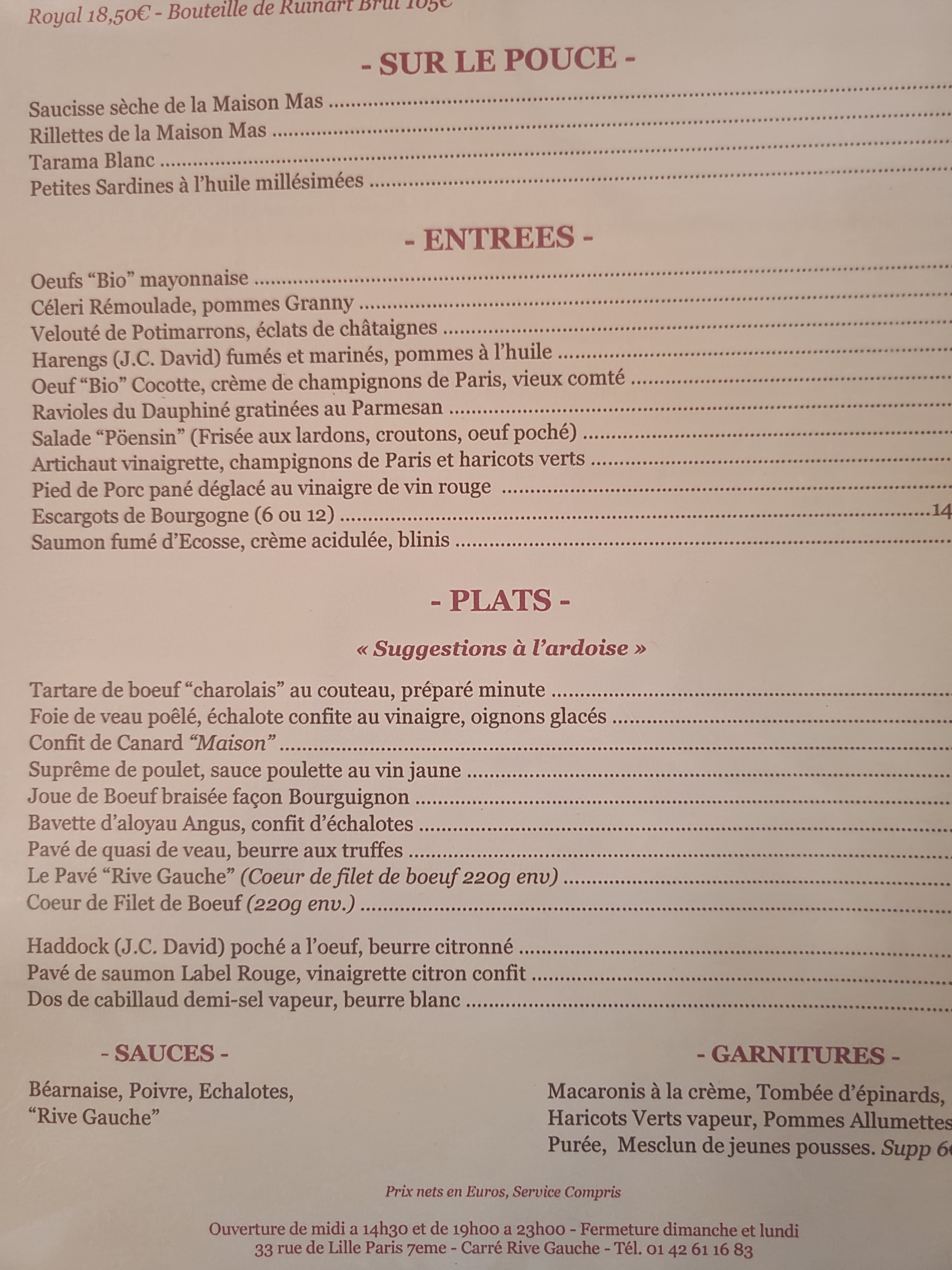 C'est un endroit magique, je connais cette endroit depuis 35 ans , la cuisine est excellente ,Serge gainsbourg qui habitait à deux pas venait régulièrement. Bravo au chef et à toutes l'équipe qui nous reçoit toujours chaleureusement, à très vite Bises à tous Jean pierre prioul