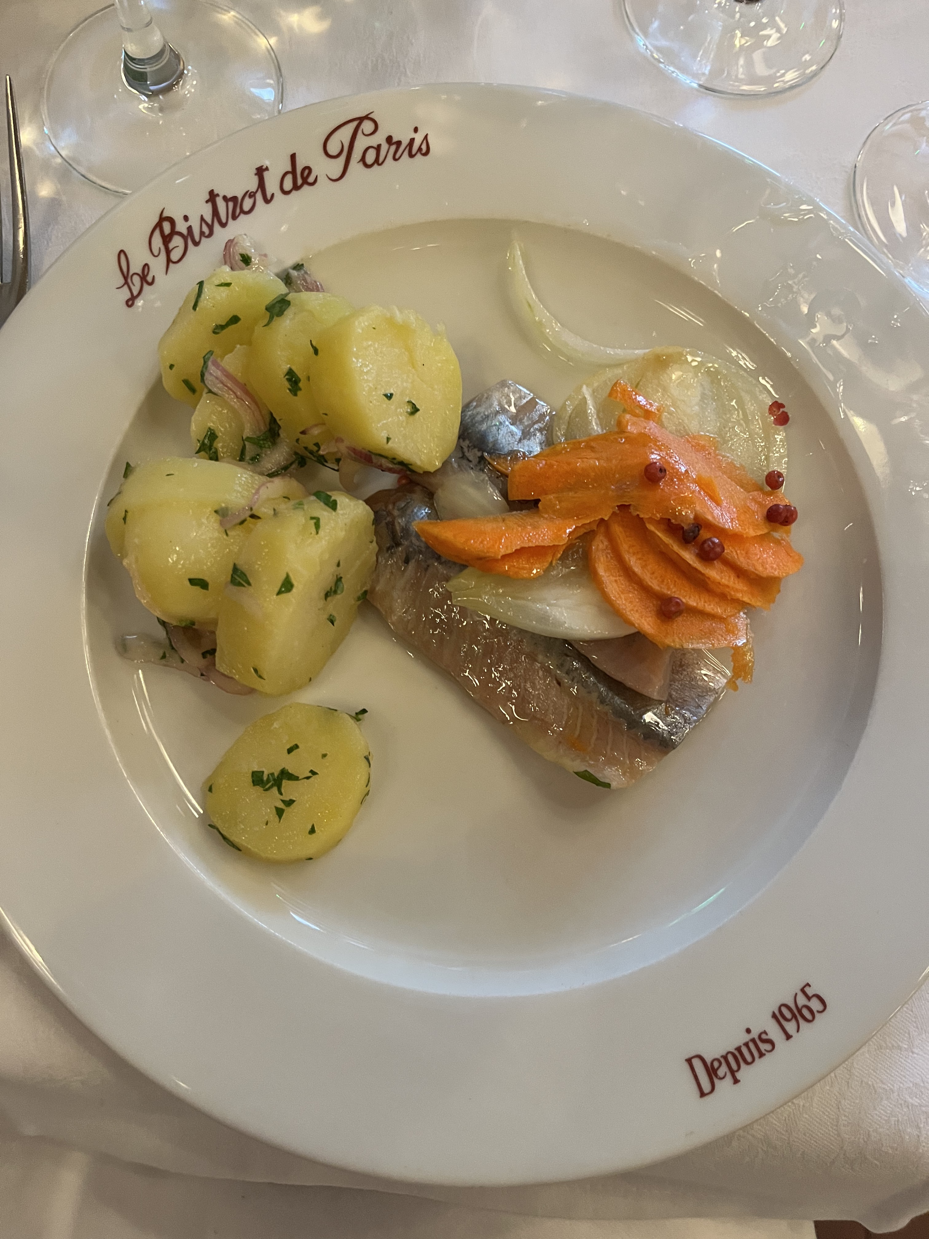 Nous avons adoré ce restaurant. J'aurais aimé le découvrir lors de nos précédents voyages. Le vin était fantastique, peut-être le meilleur que nous ayons eu à Paris. Chaque plat était exceptionnel. Attention : l'apéritif au hareng se décline en deux grands plats : un avec du hareng, un avec des pommes de terre. C'est tout ce que vous pouvez manger. Certains peuvent trouver la présentation fantastique, d’autres peuvent en être découragés. Ils nous ont offert un dessert maison !