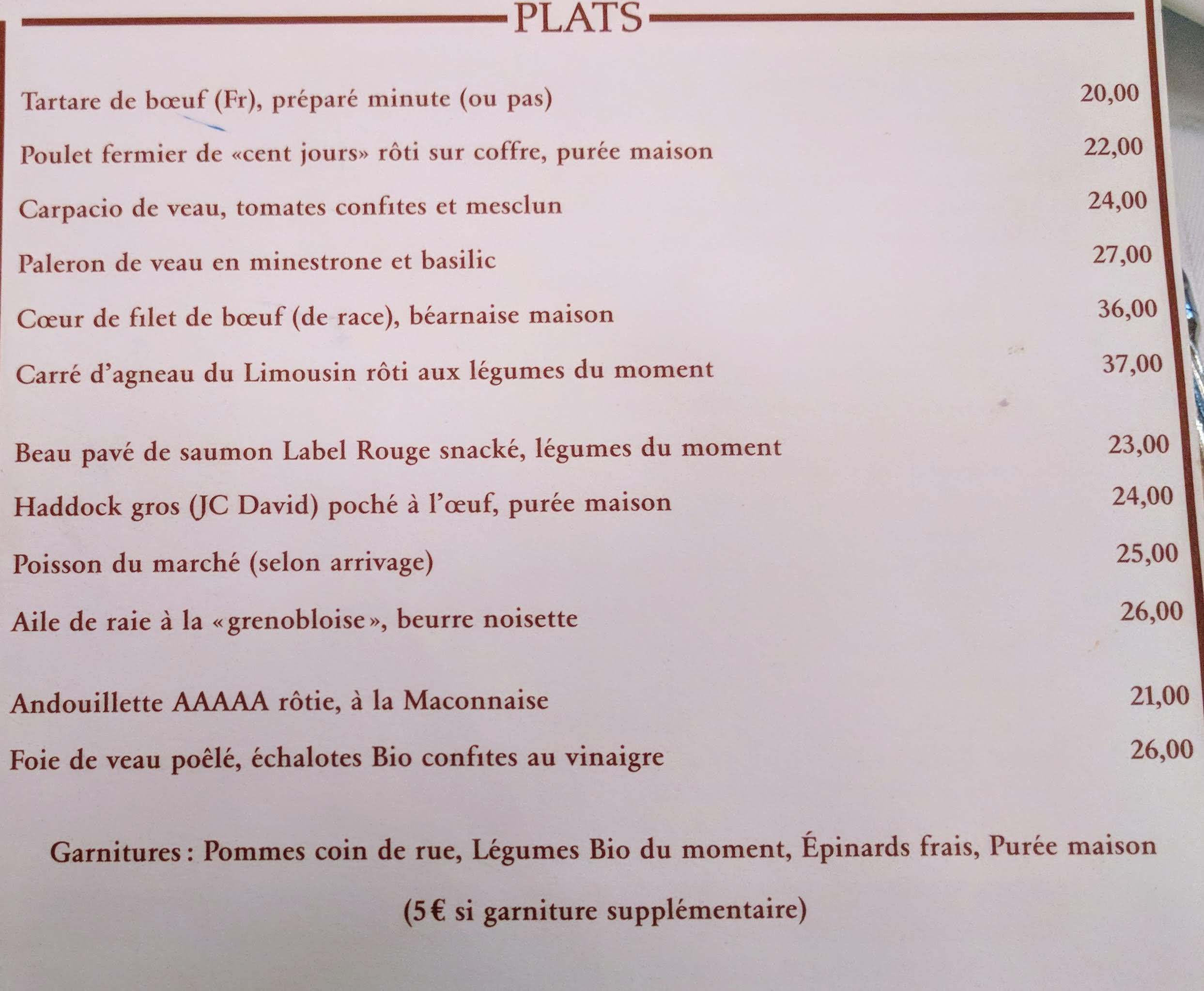 La bonne cuisine française traditionnelle, que j'adore, avec ses ombres, comment les plats à la carte qu'ils n'avaient pas ou la garniture faite trop à l'avance, laisse un goût aigre-doux.