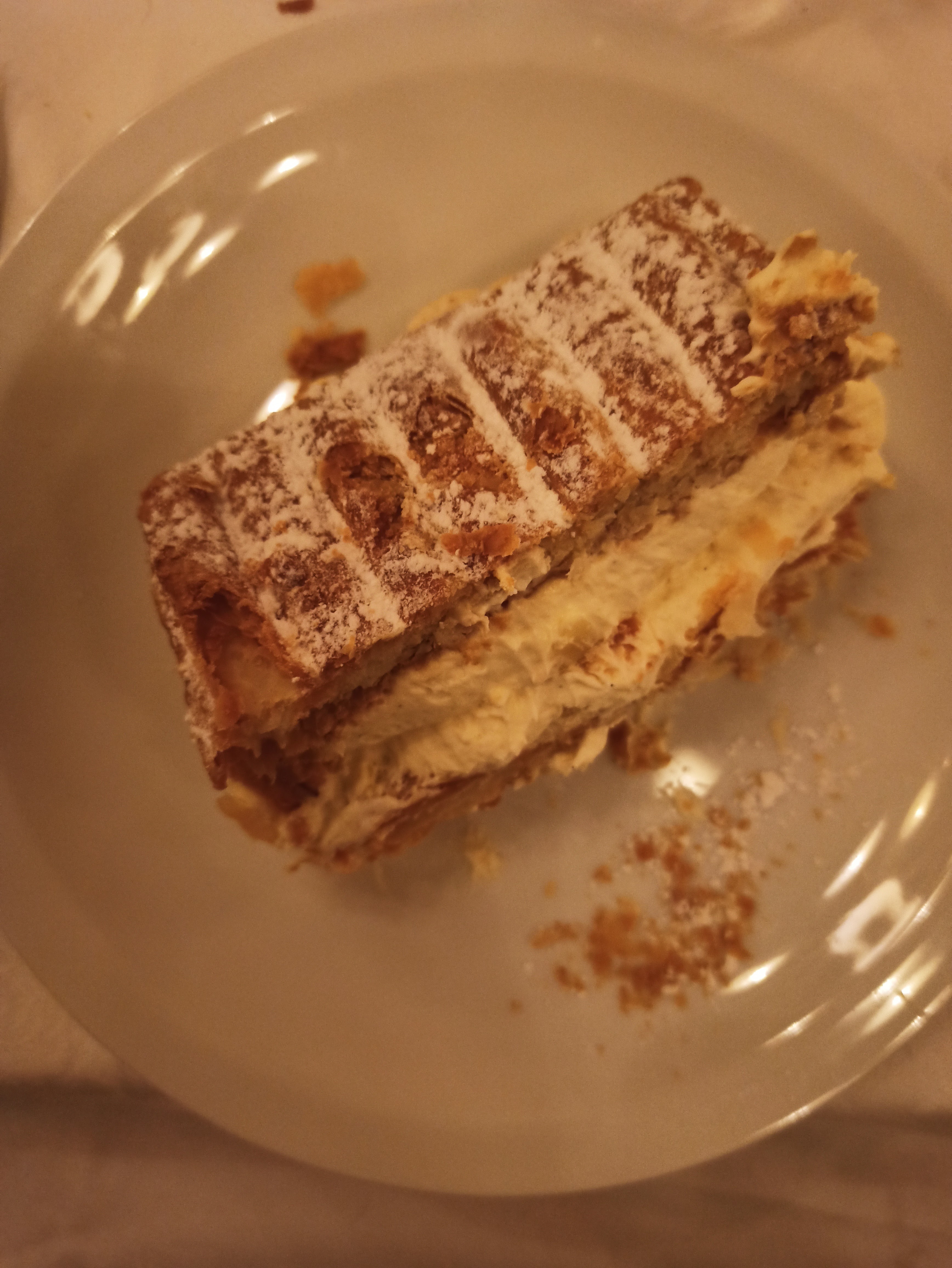 Déjeuner du samedi 5 février : entrée pâté en croûte MAISON ris de veau foie gras canard sauvage … délicieux. A suivre haddock avec un purée maison tout juste écrasée et joue de bœuf extra. Ne manquez pas le mille feuille aussi croquant qu’impressionnant par sa taille. Service TRÈS attentionné par Amed et Sébastien : Bravo