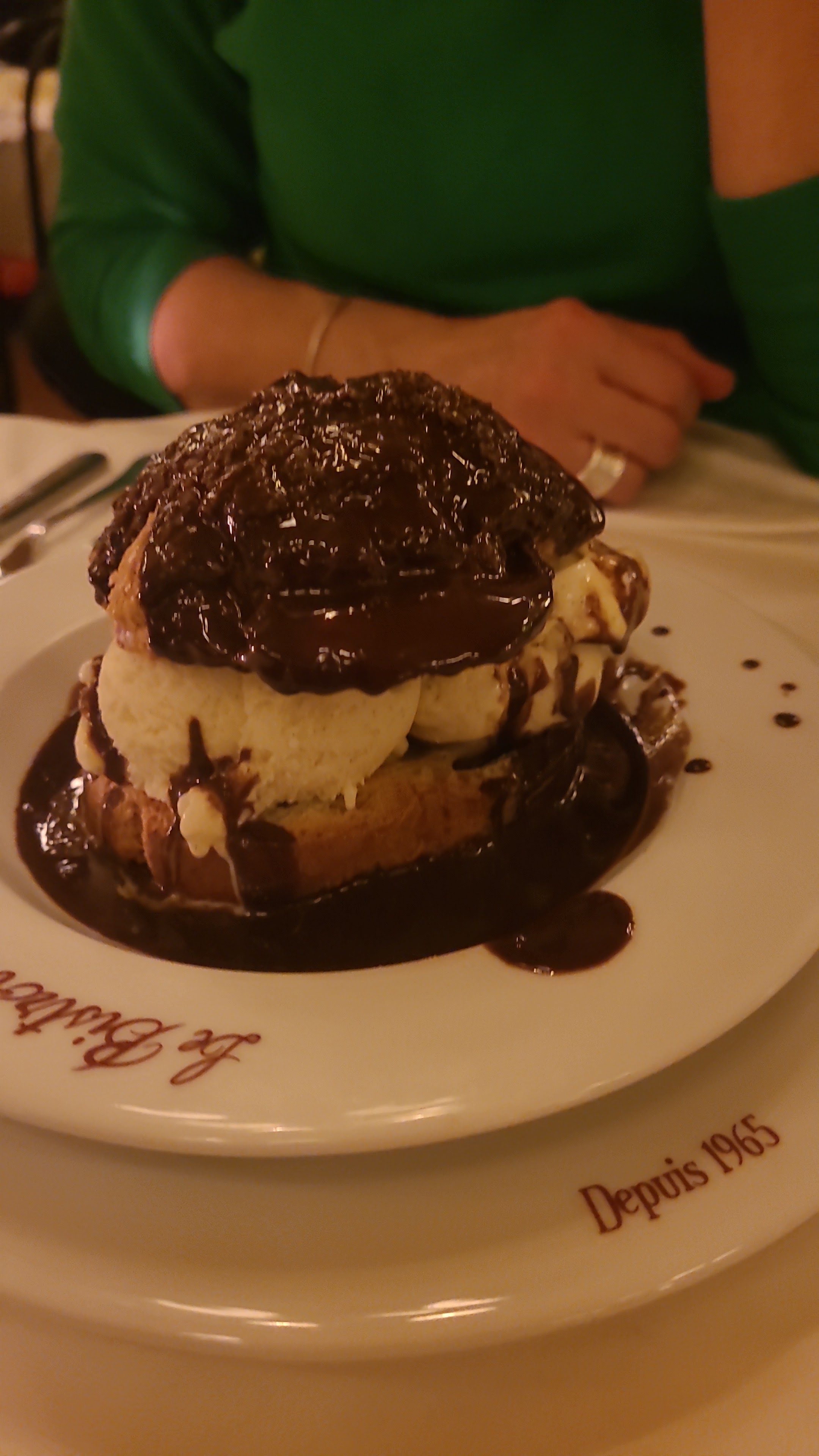 L'endroit est un petit bistrot traditionnel romantique, le gérant a pu me proposer une réservation dans un délai court. Le service était très bon. Mon plat était un aiglefin avec de la purée de pommes de terre, c'était délicieux, ma femme a demandé un filet et c'était tout à fait correct, nous nous attendions tous les deux à quelque chose de mieux. Pour le dessert, nous avons opté pour les profiteroles au sirop de chocolat et elles étaient effectivement phénoménales.