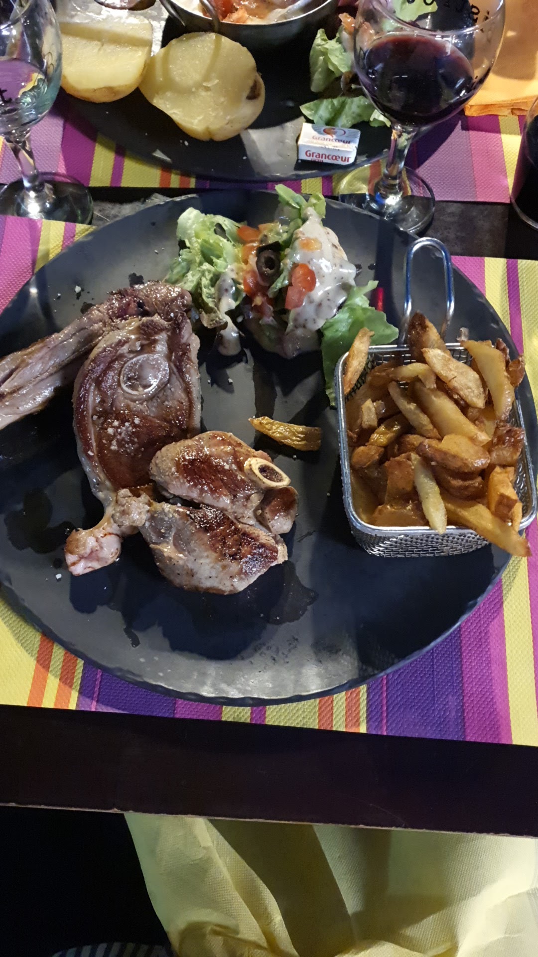 Un super rapport qualité/prix (carte). Des côtelettes d'agneau excellentes servies avec des frites maison et du fromage du pays tout aussi délicieux. Une truite accompagnée de poivrons le tout agrémenté de chorizo cuit aux câpres...un délice ! Et pour finir un café gourmand très gourmand 🙂. Pour agrémenter le tout une serveuse bien sympathique. Je suis vraiment très satisfaite de cet établissement. Je recommande.