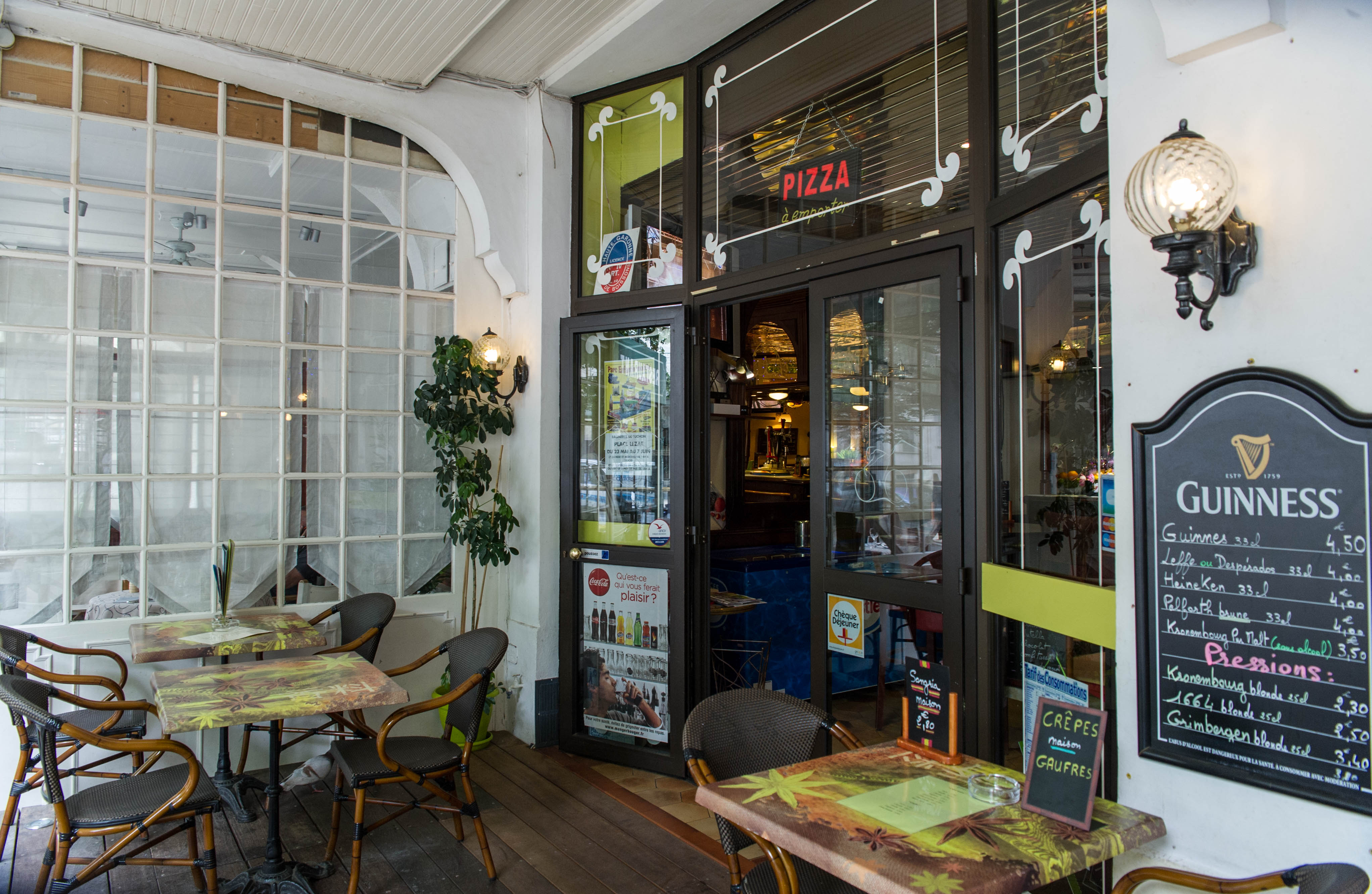 Un restaurant bar surprenant, avec un couple de managers qui vous reçoit avec humour et simplicité. Ils sont très actifs, et savent très bien accueillir en différentes langues, vous placer au mieux, prendre la commande en vous mettant à l'aise et vous conseillant. Les plats sont très bons et généreux. Nous vous conseillons la pizza aux deux saumons, très copieuse et excellente, et les glaces et sorbets d'une maison de haute qualité, avec des parfums comme thym et verveine, à la fois forts et raffinés. Nous n'avons pas goûté le reste, mais nous reviendrons le faire. Allez y, vous y reviendrez.
