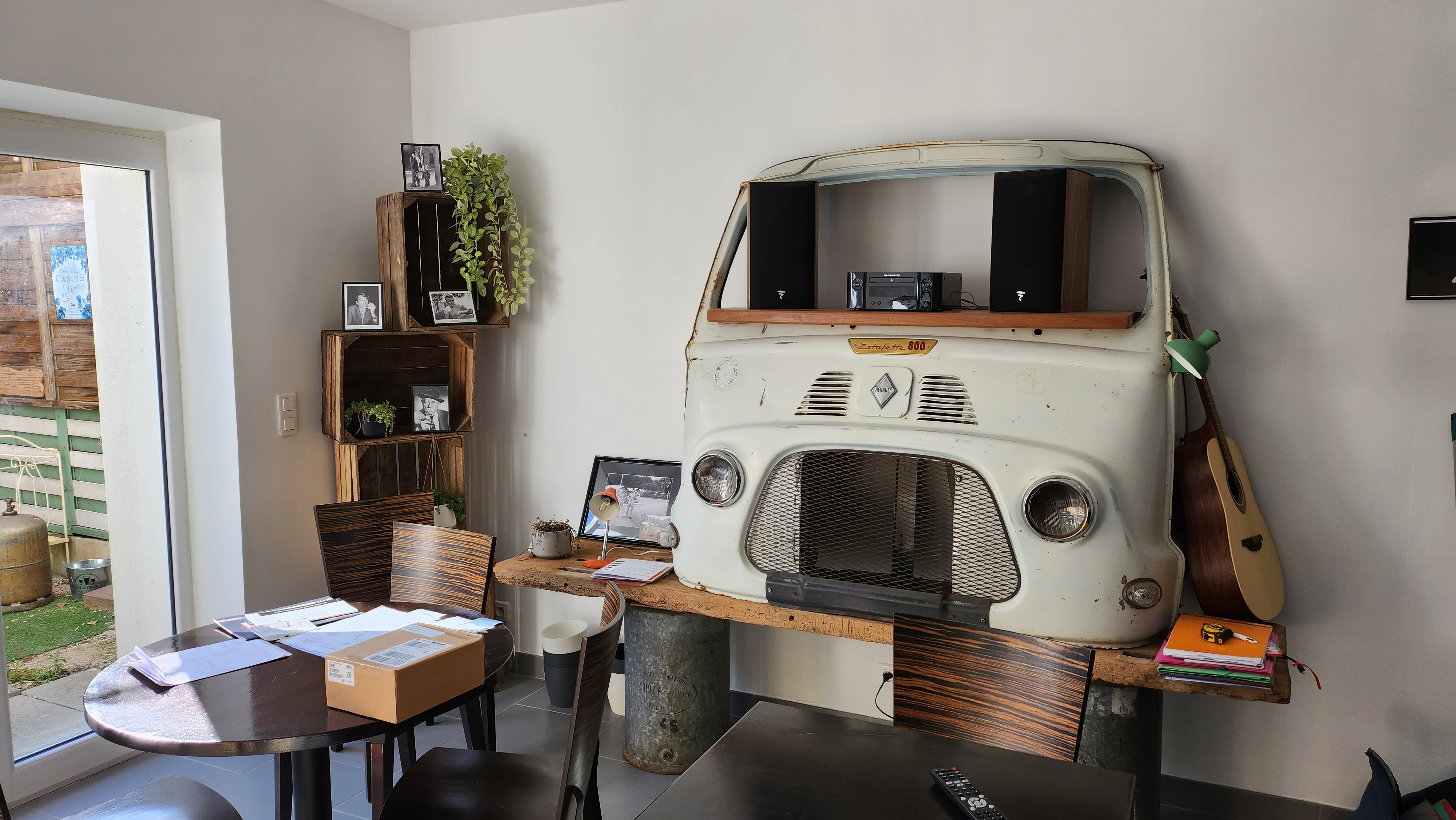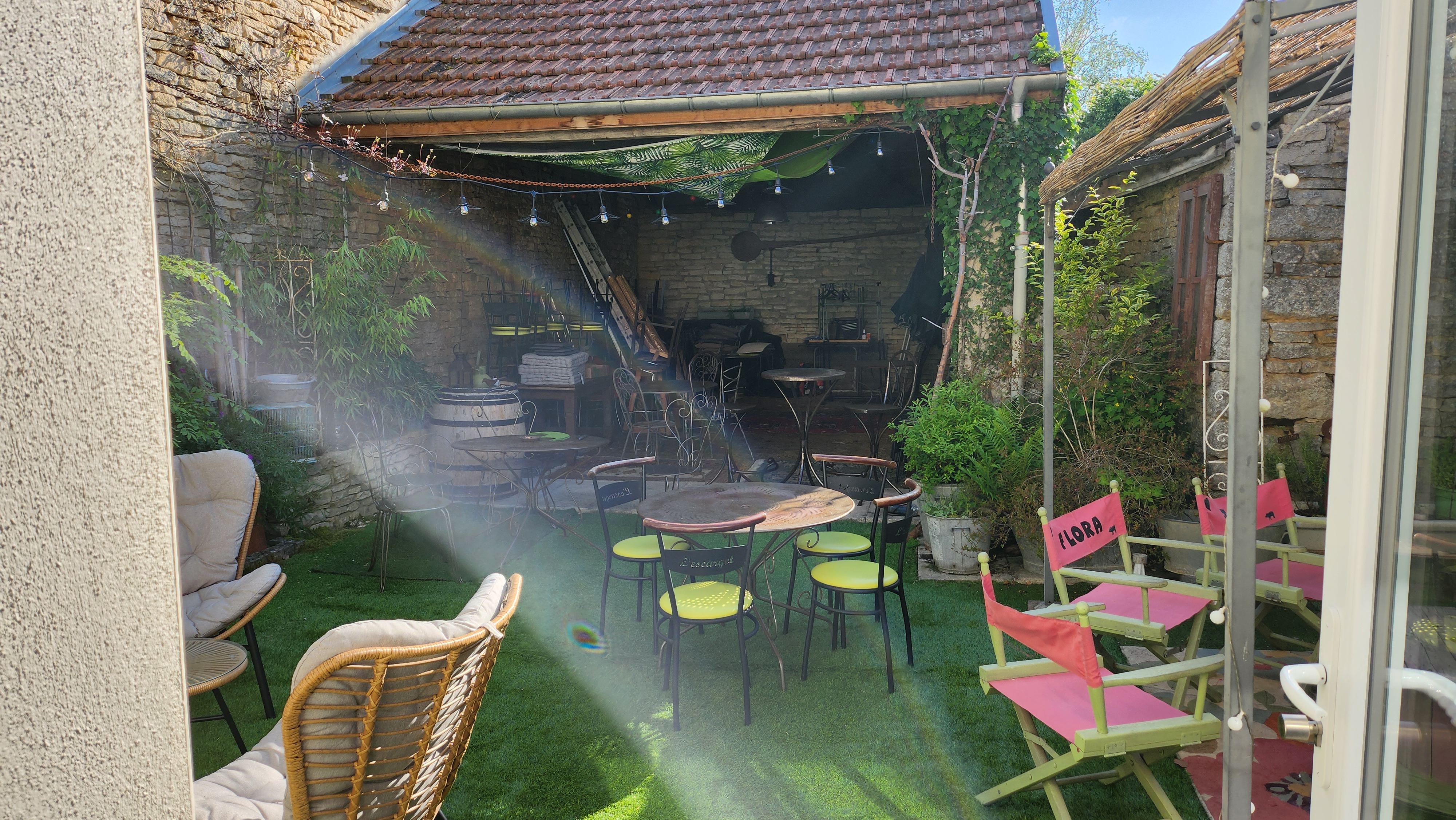 Manger et boire dans la cour ou dans l'ancienne grange, super environnement...