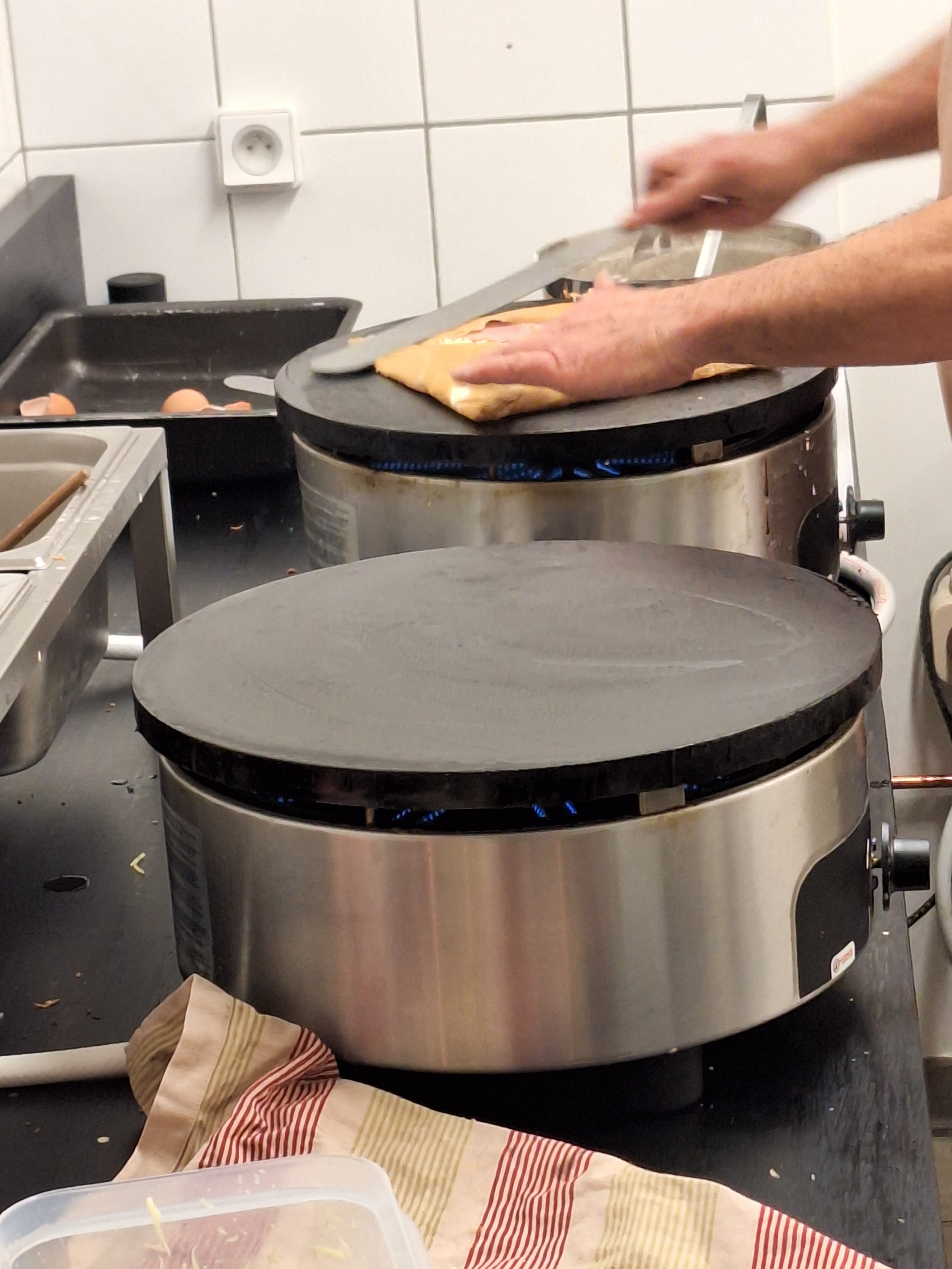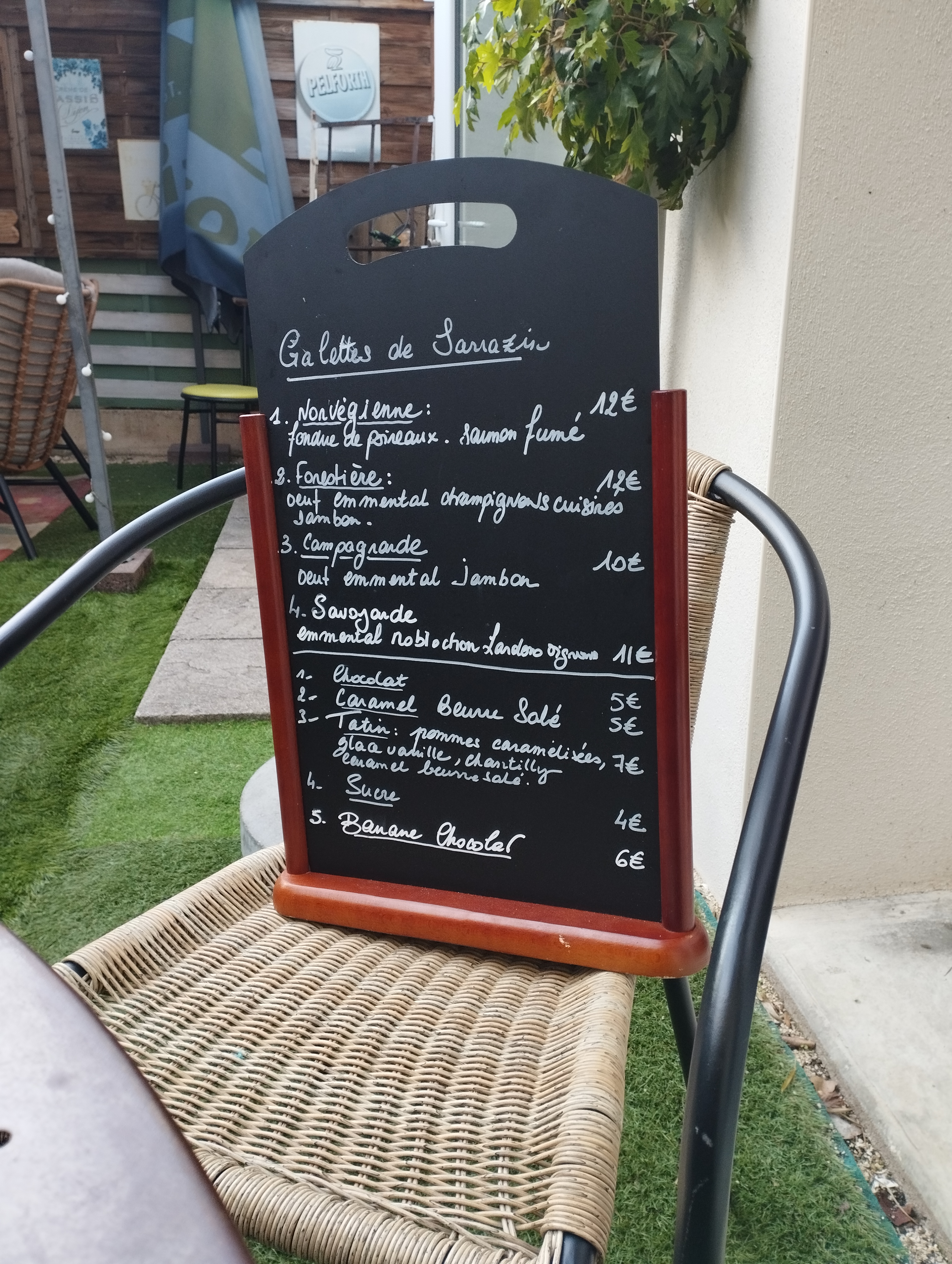 Nous étions de passage. Moi, intolérant au gluten et au lactose, j'étais un peu préoccupé par les options. Ils servent des crêpes à base de sarrasin, donc sans gluten 😁 J'ai mangé une crêpe à la tomate, aux herbes et au jambon italien. J'avais demandé qu'il soit frit dans de l'huile d'olive au lieu du beurre. De plus, le service des hommes était bon. Ils le construisent lentement. Le restaurant était également occupé le lundi. Et on n'était pas pressés parce que bon, on était en vacances. J'ai joué à des jeux avec les enfants entre les deux. Le jardin est cosy. Le rapport qualité-prix est bon. Merci beaucoup!