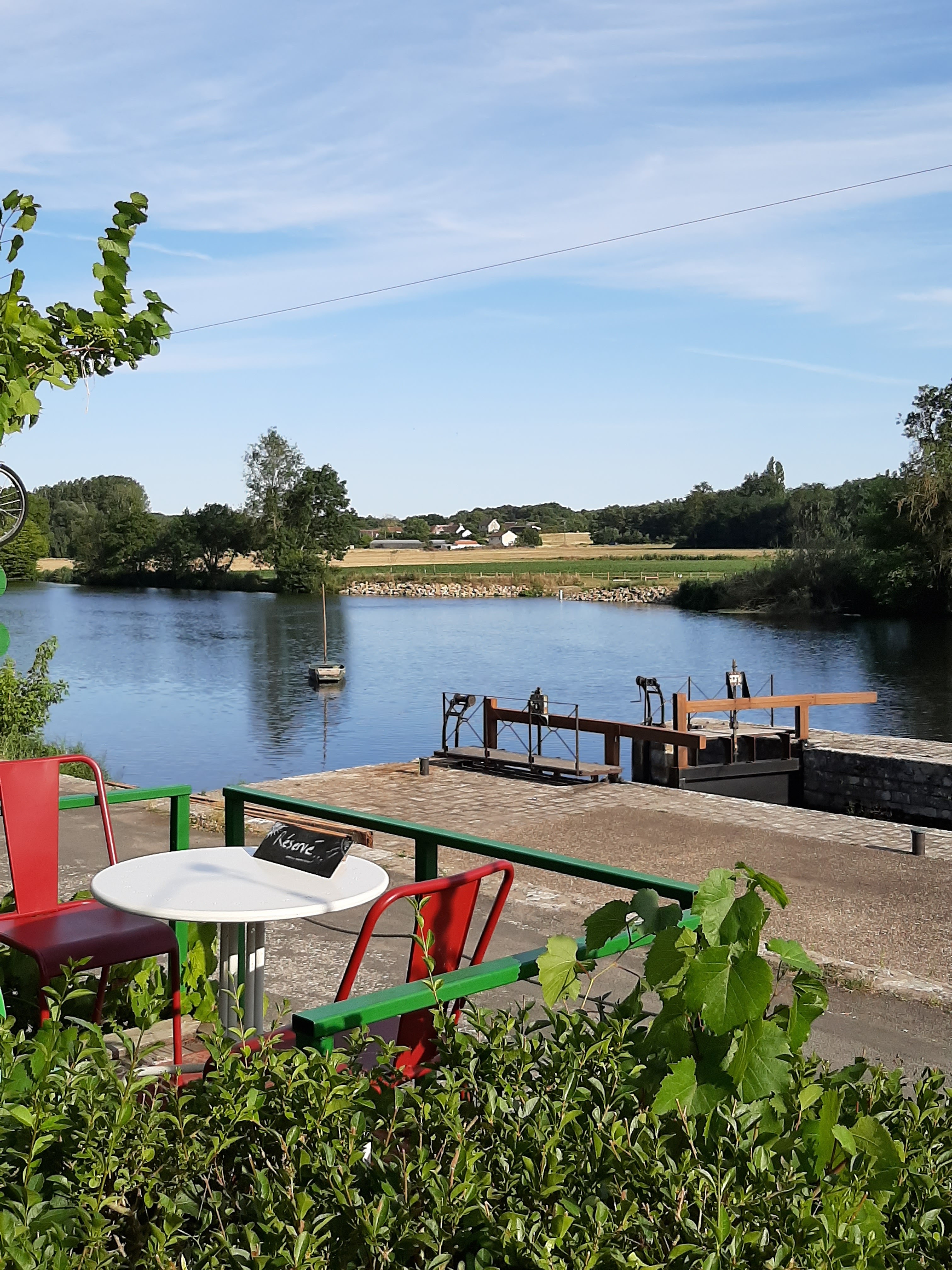 Belle vue sur le Cher et le barrage, cadre bucolique, accueil agréable et carte très sympathique - produits locaux. La pause idéale et ressourçante pour cette ballade en vélo Tours - Chenonceaux.