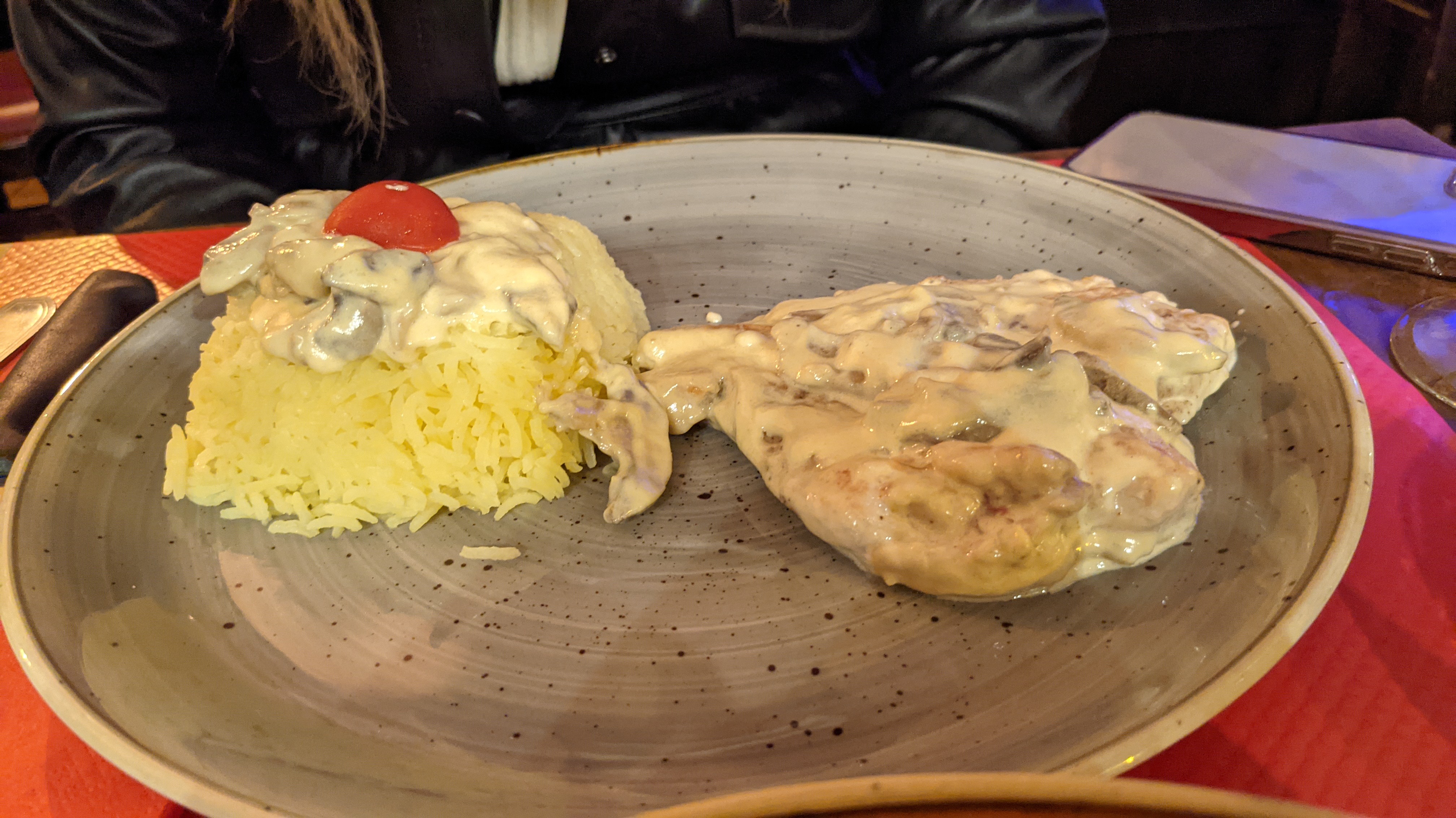 Nourriture épouvantable, commandé une escalope et c'était un gâchis huileux. N'y allez que pour des boissons à bon prix et donc 3 étoiles