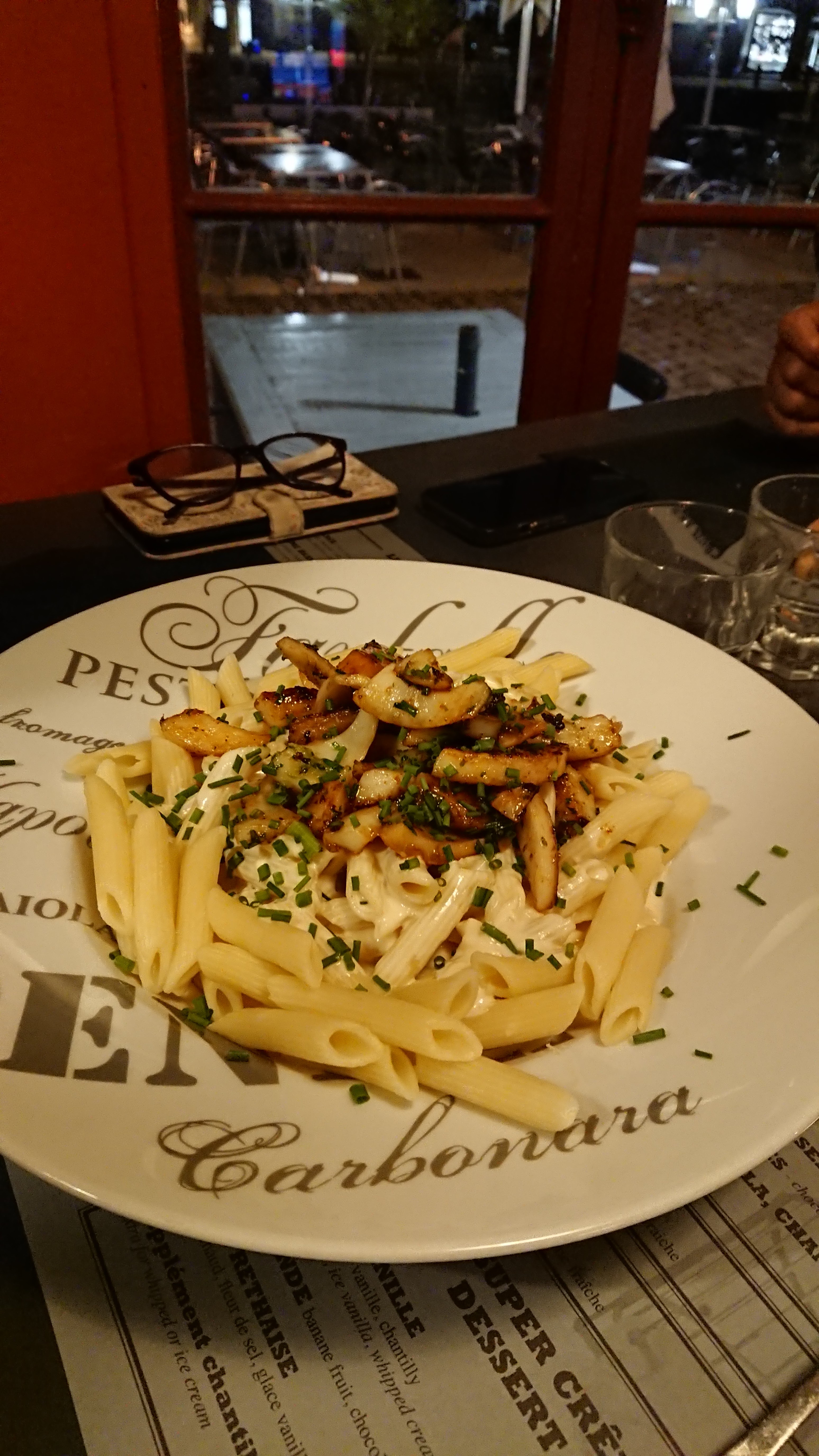 Pour 16€ un plat de pâtes carbo et 15€ la pizza, on savait très bien que ça n’allait pas être les plats de l’année. Trop chère pour ce que c’était, je peux faire mieux chez moi. Et ne parlons même pas des desserts à 9€!! J’ai préféré en prendre au bord du port. De plus le personnel est… désagréable. Le patron qui allait me foncer dessus si je n’allais pas m’écarter a croire que j’étais invisible. Une des serveuses nous voyait plus à notre table car on était a la caisse pour payer « ils sont partit eux » et effectivement on aurait dû partir sans payer. Le masque sur le menton enfin bref que des points négatifs un attrape touriste.