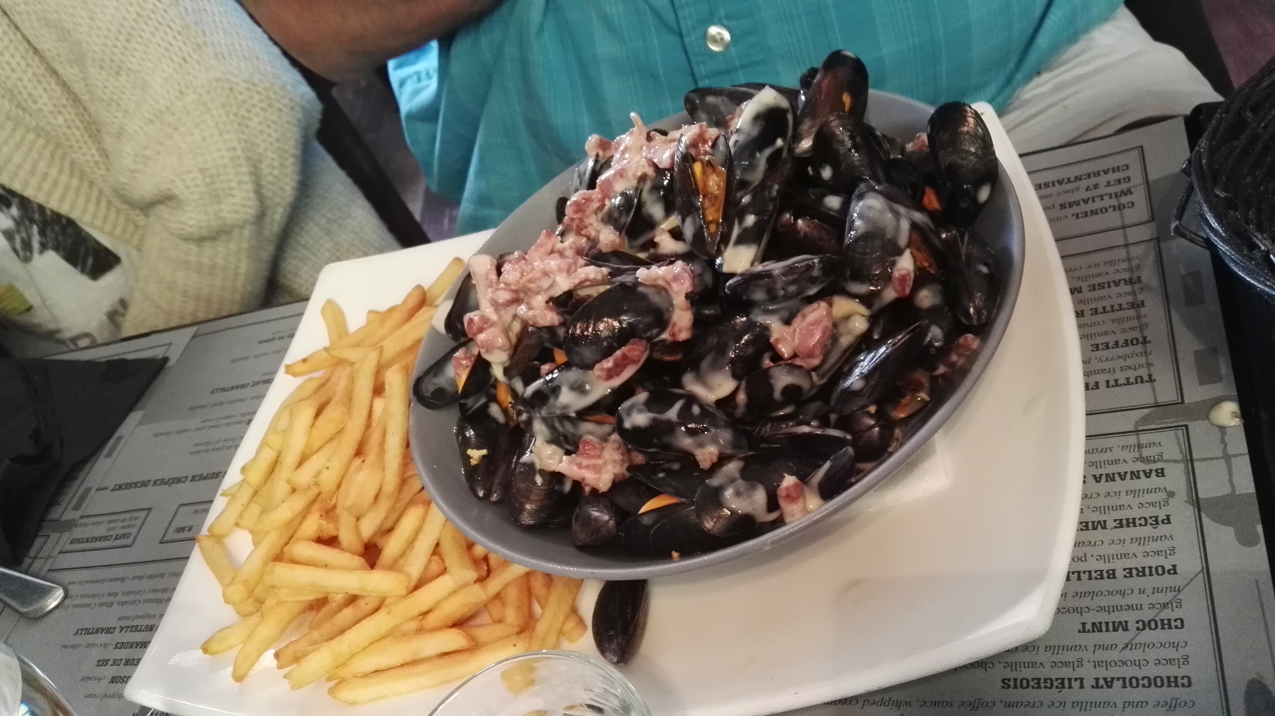 J'ai pris des moules frites à la crème, un vrai régal. Plat copieux. C'était complet en terrasse, l'intérieur est charmant.
