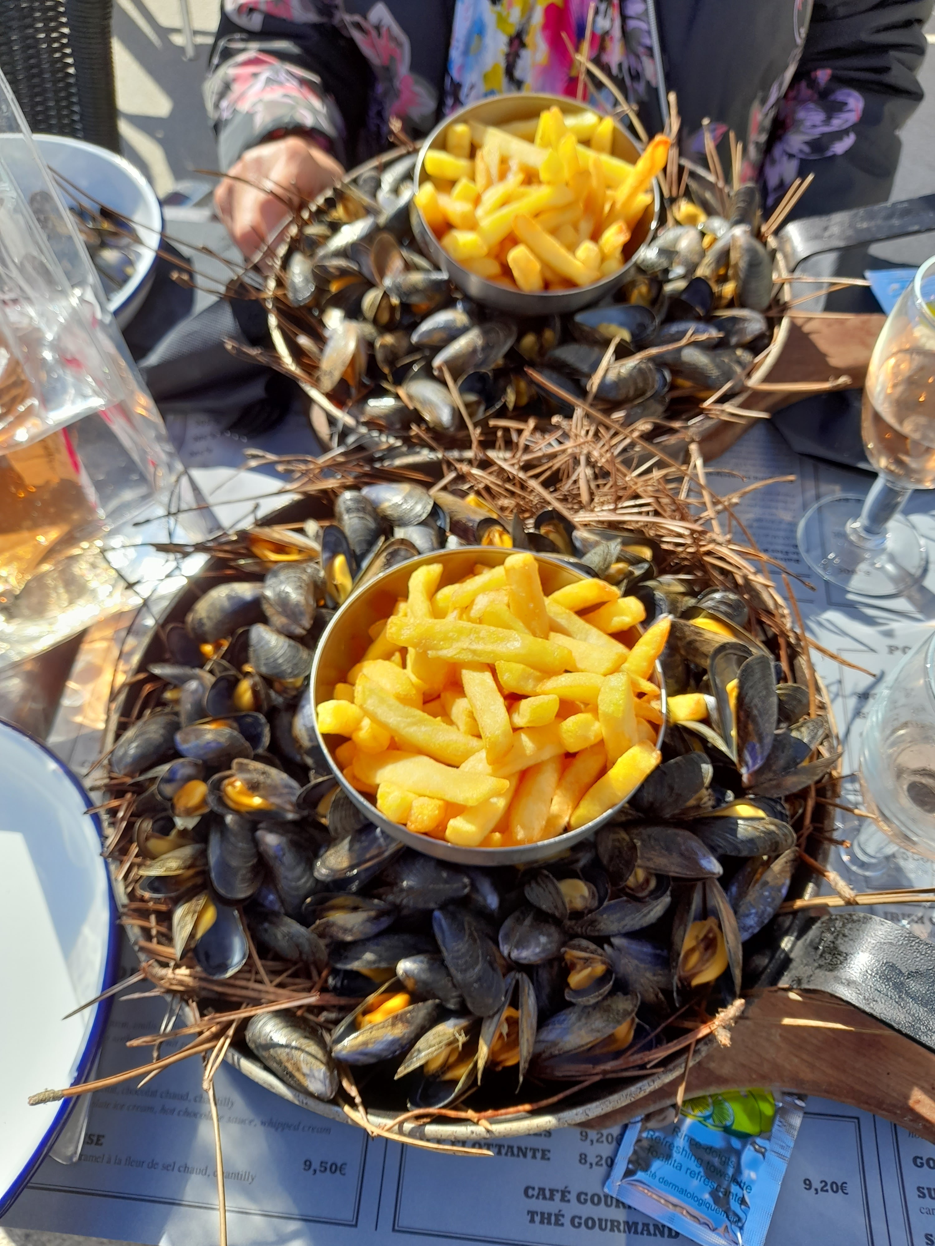 Cadre agréable, on a mangé en terrasse sous le soleil. Les moules et la sauce sont bonnes. Serveurs souriants et sympas, qui font de leur mieux, mais le service était un peu bancale (manque de personnel??), les plats arrivent en décalé donc c’est froid si on attend les autres. Le caramel de la brioche était totalement cramé c’est dommage vu le prix du dessert…