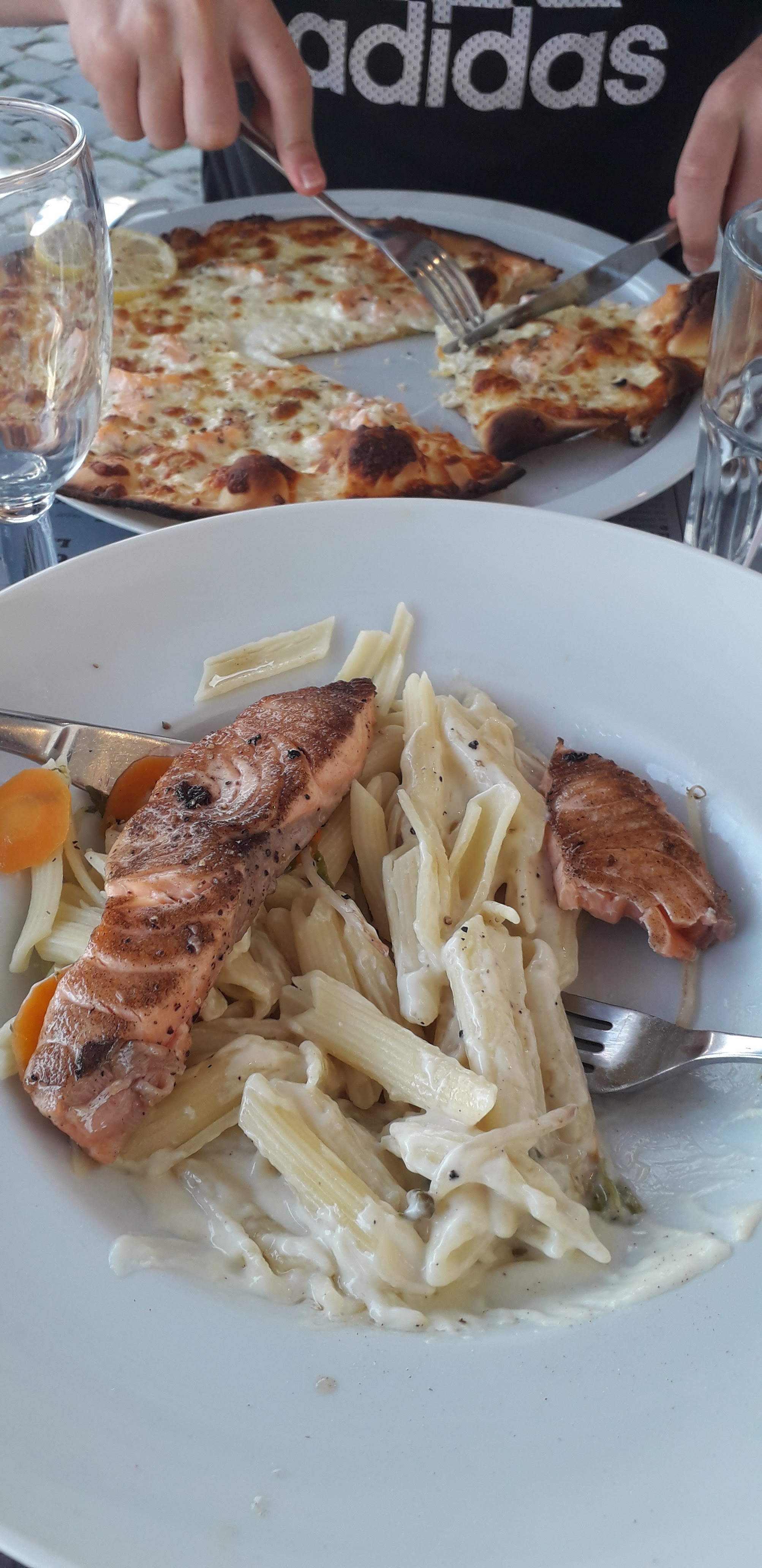 Accueil un peu froid, service plutôt rapide, les huîtres bien agrémentées, qualité on oublie vite les bases de la cuisine, les pâtes ne sont pas salées à la cuisson, pâtes trop cuites et on vous en mets une plâtrée...la sauce des pennées au saumon sur la base de la carbonara que l on va vous agrémenter en fonction de l appellation, idem pour les pâtes aux pestos fades et trop cuites, la pizza avec sa pâtes sèche brûlée convenablement dessus et dessous, globalement si vous aimez la quantité grossière et sans saveur vous avez trouvé le bon endroit....... désolé je n'ai pas testé les desserts mais à la vue de ce qui était servi aux tables voisines j'ai préféré prendre une glace plus loin....................