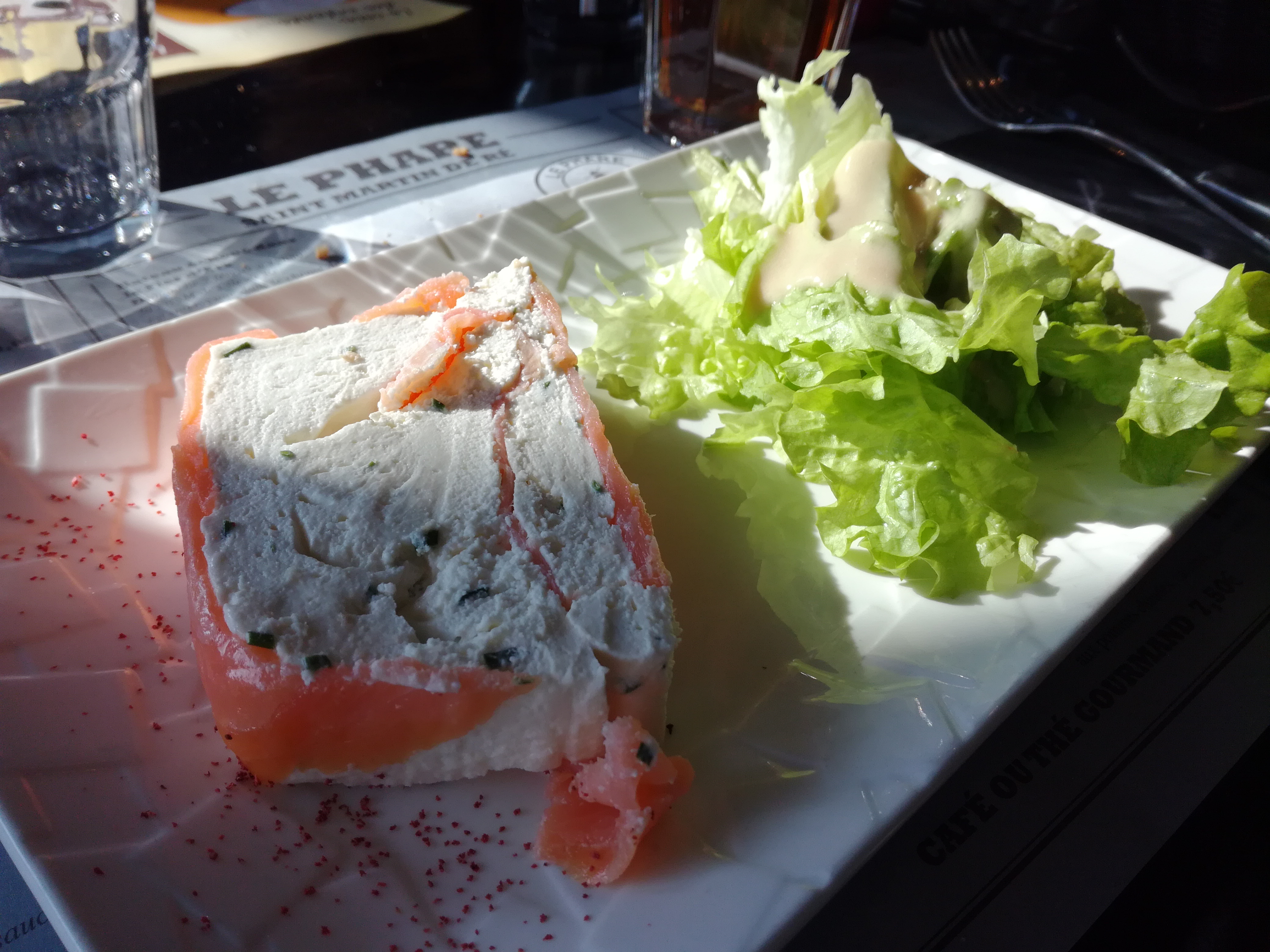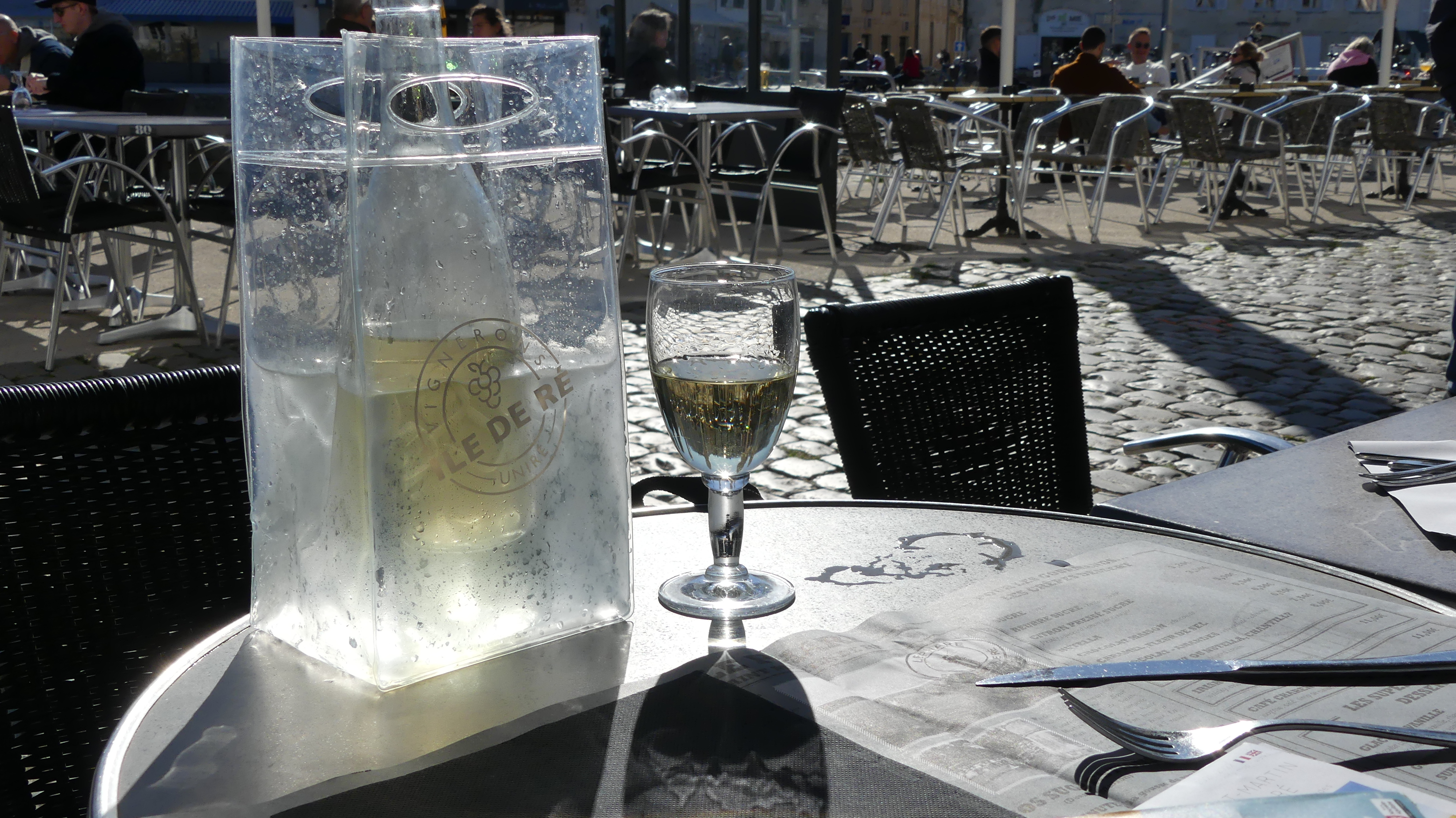 Excellente cuisine dégustée en terrasse fin octobre avec un temps d'été. Et le vin de l'île de Ré.