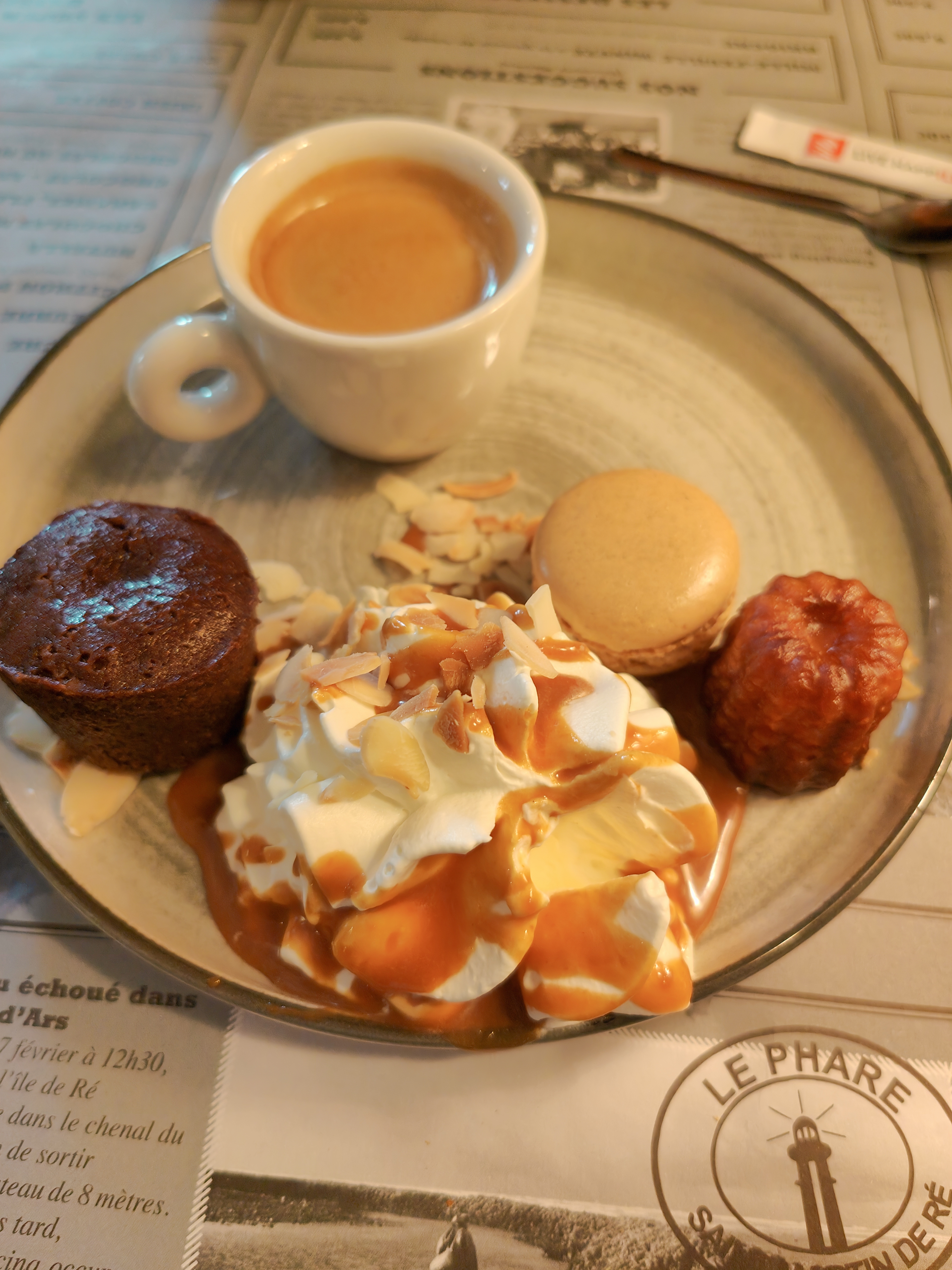 Nous avons été agréablement accueilli alors que nous cherchions un bar, n'en trouvant aucun nous sommes tombé sur le phare. Nous pensions rentrer bredouille mais le serveur nous a gentiment proposé de nous installer, nous avons été rapidement servi, le personnel souriant et sympathique. Nous avons même pu commander un dessert or l'heure de service était passé.