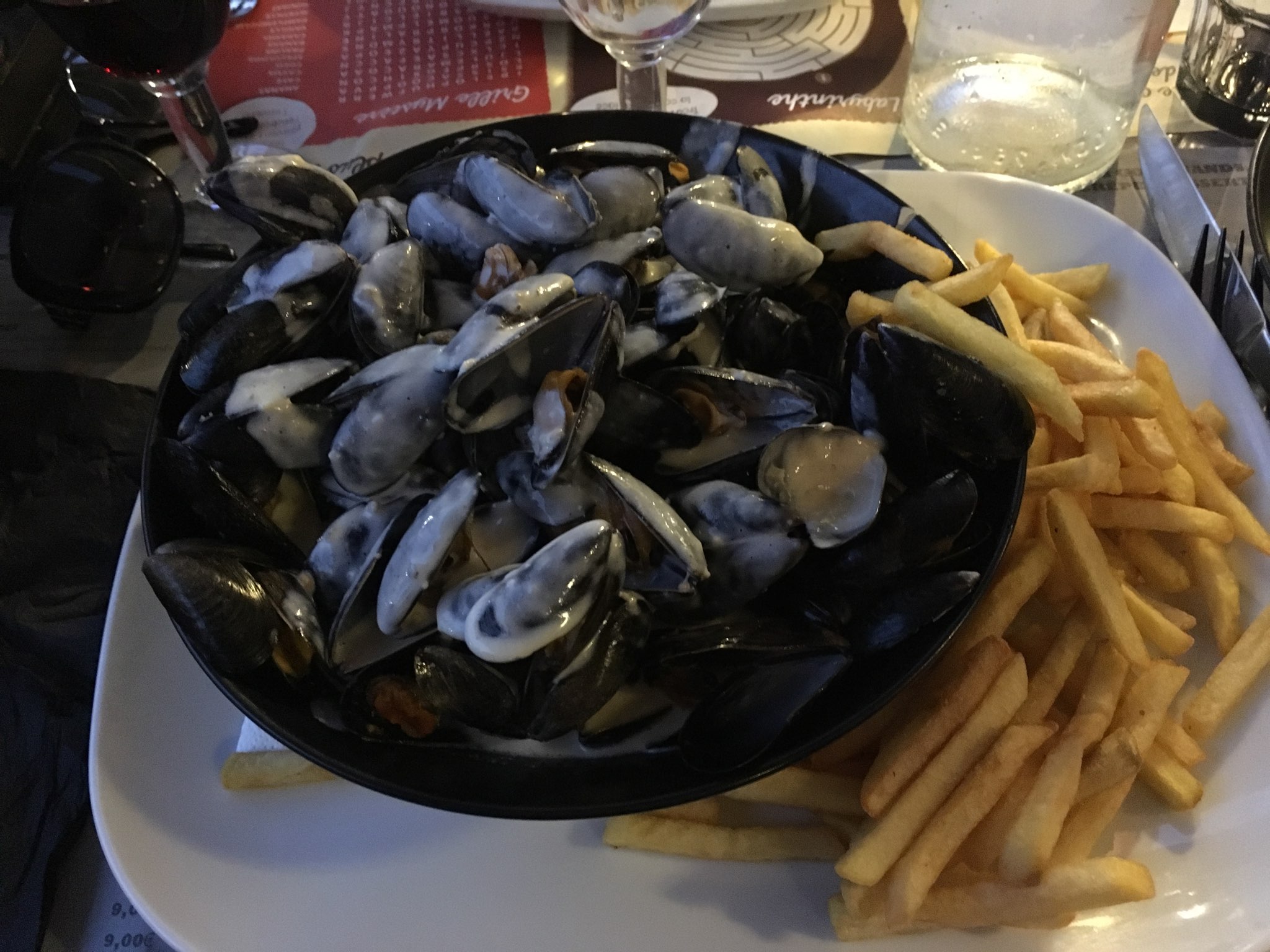 Nous sommes au vacances d’avril et il y a un monde fou! Je n’ose même pas imaginer en été on a du faire une réservation pour manger 30 minutes après. On a été installé plutôt tard et nous avons attendu nos plats. Ils étaient tous très bon mais je pense que c’est du surgelé. Les serviteurs sont polis mais très pressés étant donnés que il y a beaucoup de monde! Ils oublier tout le temps un trucs comme la carafe les couteaux le bol pour l s moules le pain… mais bon