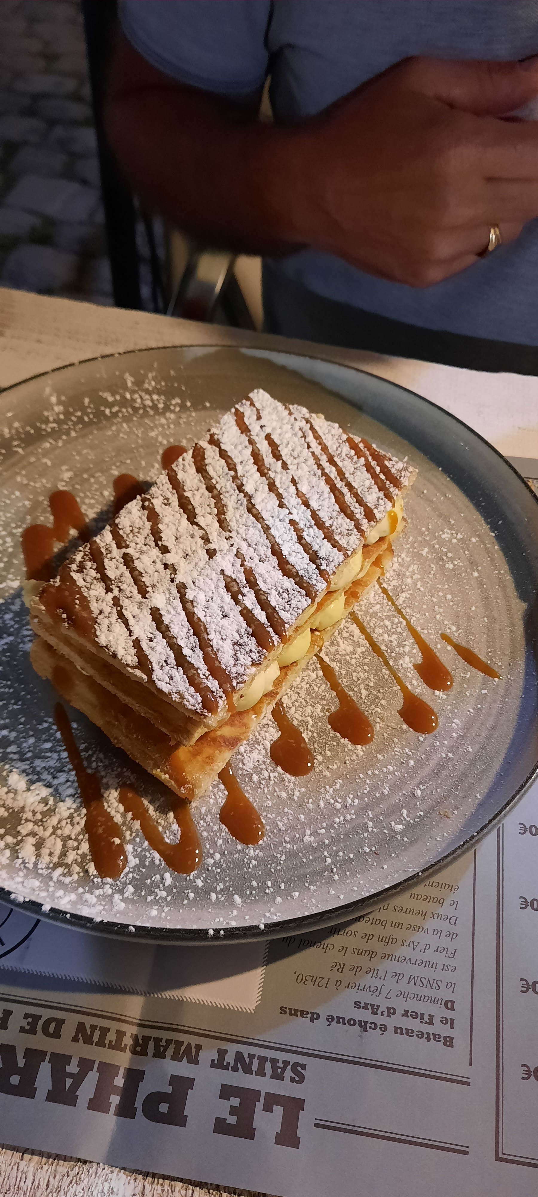 En ballade à saint Martin , nous nous sommes arrêtés déjeuner à midi de ce restaurant situé au abord du port . Accueil chaleureux et serveur (se) sympathique au p’tit soin du client . Le temps d’attente entre les repas est convenable . Les moules au roquefort étaient délicieuses . Nous avons passé un agréable moment en famille . Merci !