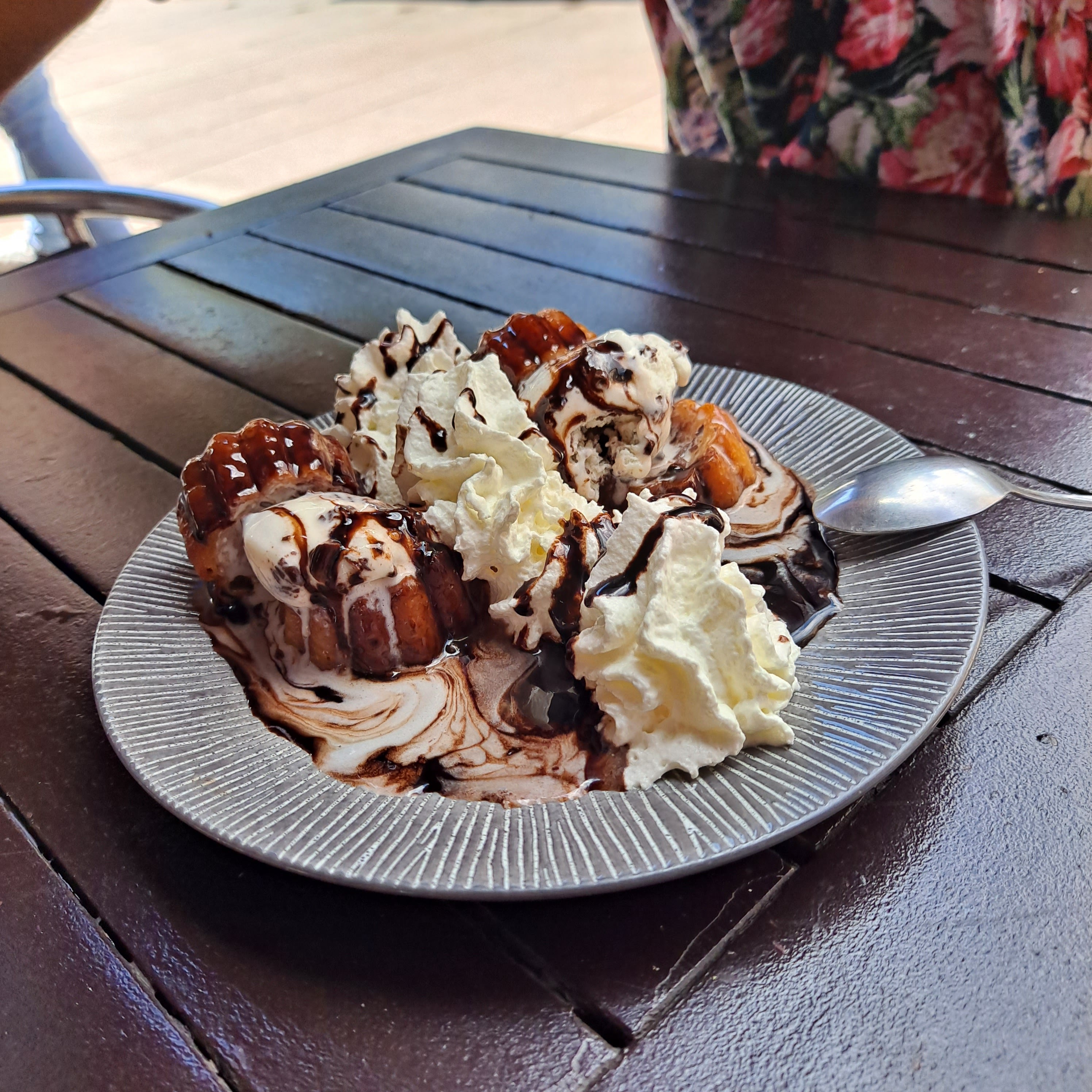 A fuir. Plein de tables à l’ombre mais vous offre une table au soleil, choix très limité, et se plantent dans les parfums de glaces... Au secours.
