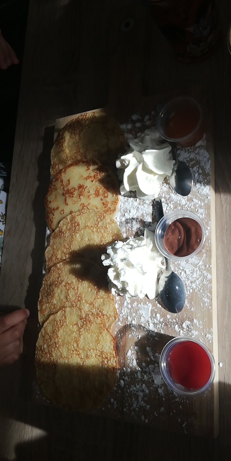 Nous sommes venus à 6. De bonnes gaufres pour nous réchauffer après le vélo rail sous la pluie. Accueil un peu froid, les gaufres étaient bonnes. Apparemment café restaurant bien sympathique. Mais quand nous avons dit, tous aurevoir, pas de réponse peut être trop occupés par leur travail....