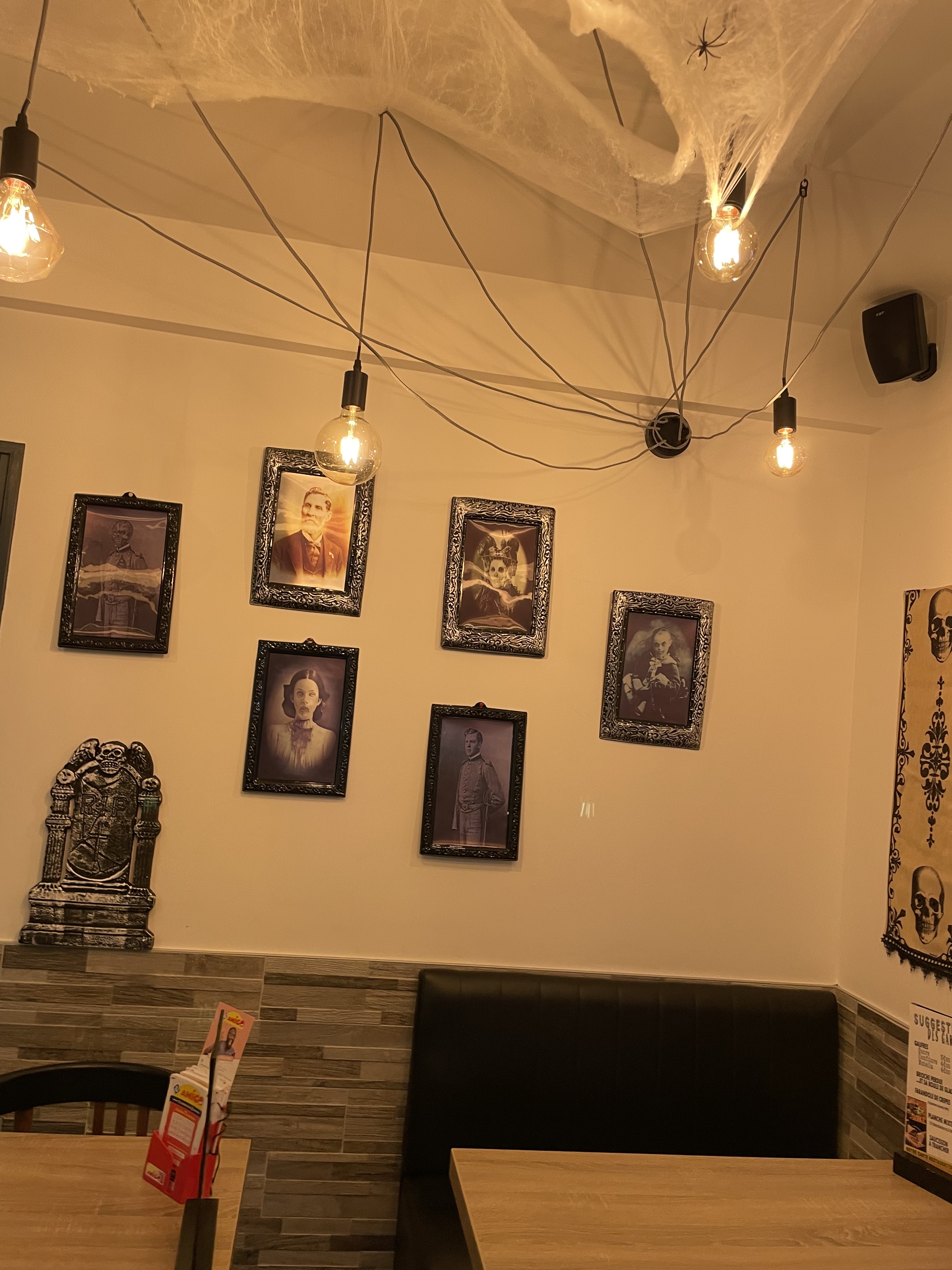 Un endroit très convivial, Juste arrêté pour boire un coup, nous sommes tombé sur un endroit très sympa. On sent que les propriétaires sont investis, ça fait plaisir ! La carte a l’air bonne, au vu des nombreuses photos dans les commentaires :). Mention spéciale pour la décoration d’Halloween du lieu.