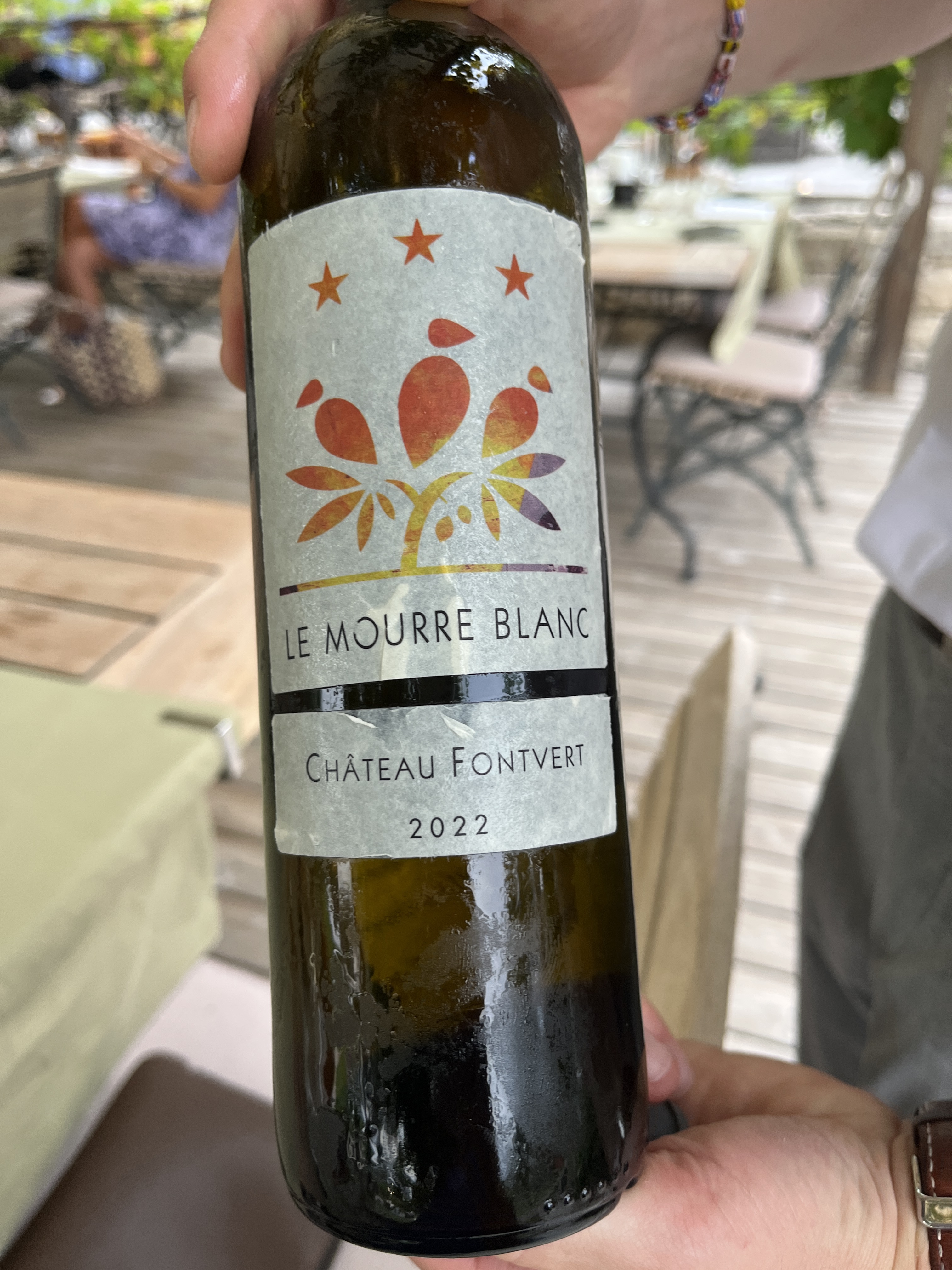 Nous avons passé une agréable soirée de mi-juillet dans ce coin de Provence. Accueil et service impeccables, tout le monde était gentil et serviable. Nous avons mangé presque exclusivement des plats de poisson : thon, bar et huîtres ; tout est frais, bon et bien présenté. Les vins au verre recommandés pour accompagner les plats sont également excellents, même s'ils sont un peu chers. Enfin, la véranda donnant sur les vignes est magnifique.
