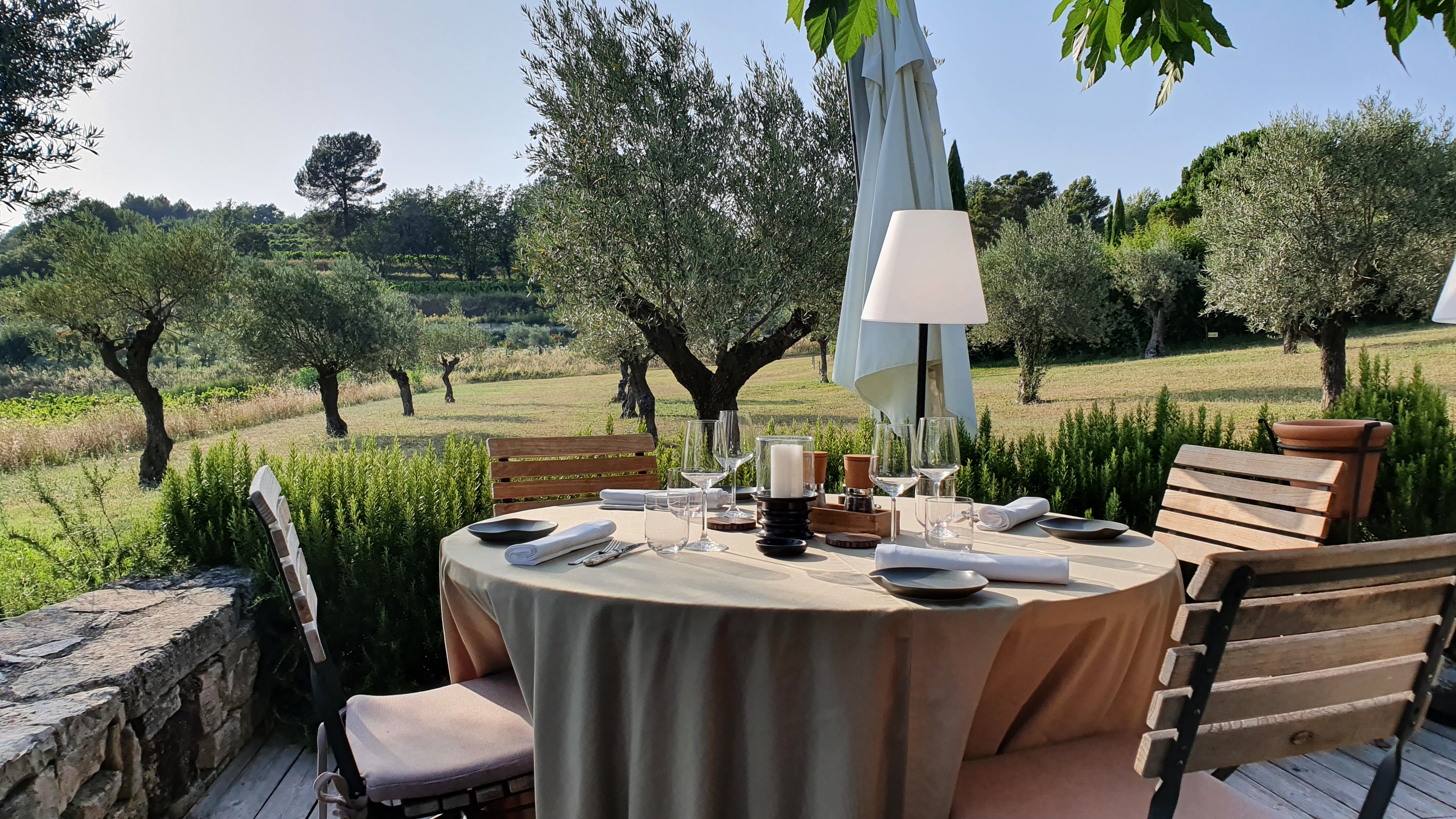 Cadre somptueux, entre vigne et garrigue. Table de qualité, service attentionné et cuisine de produits frais et locaux.