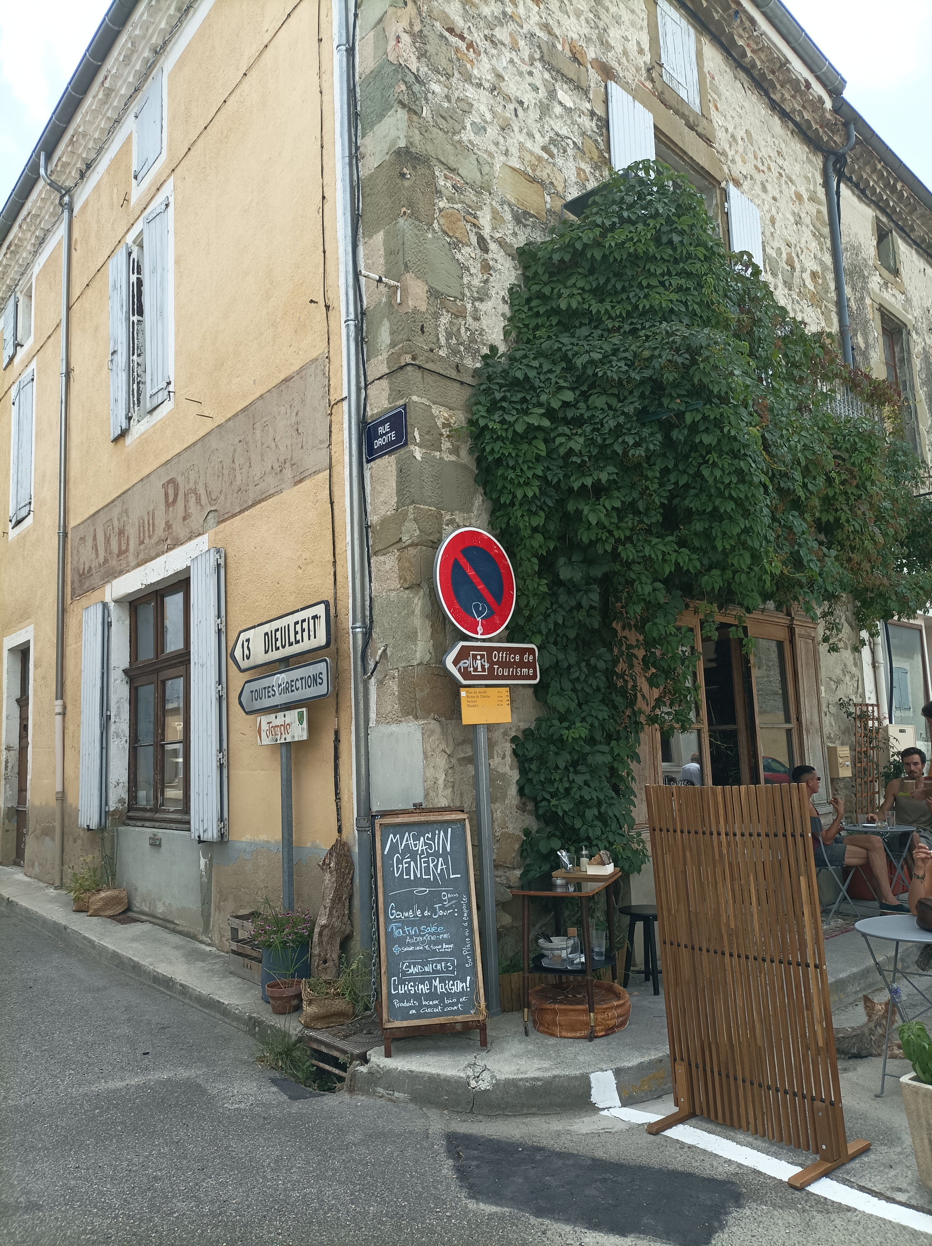Un arrêt au hasard, en quête d'un déjeuner vers 15h... il restait ,ouf, 2 plats du jour . Un feuilleté de courgettes feta à tomber ( le secret est certainement dans les aromates et fleurs qui entrent dans la composition) . Même le petit rosé est parfait. Bref, le hasard,ici, fait très bien les choses. Bravo.