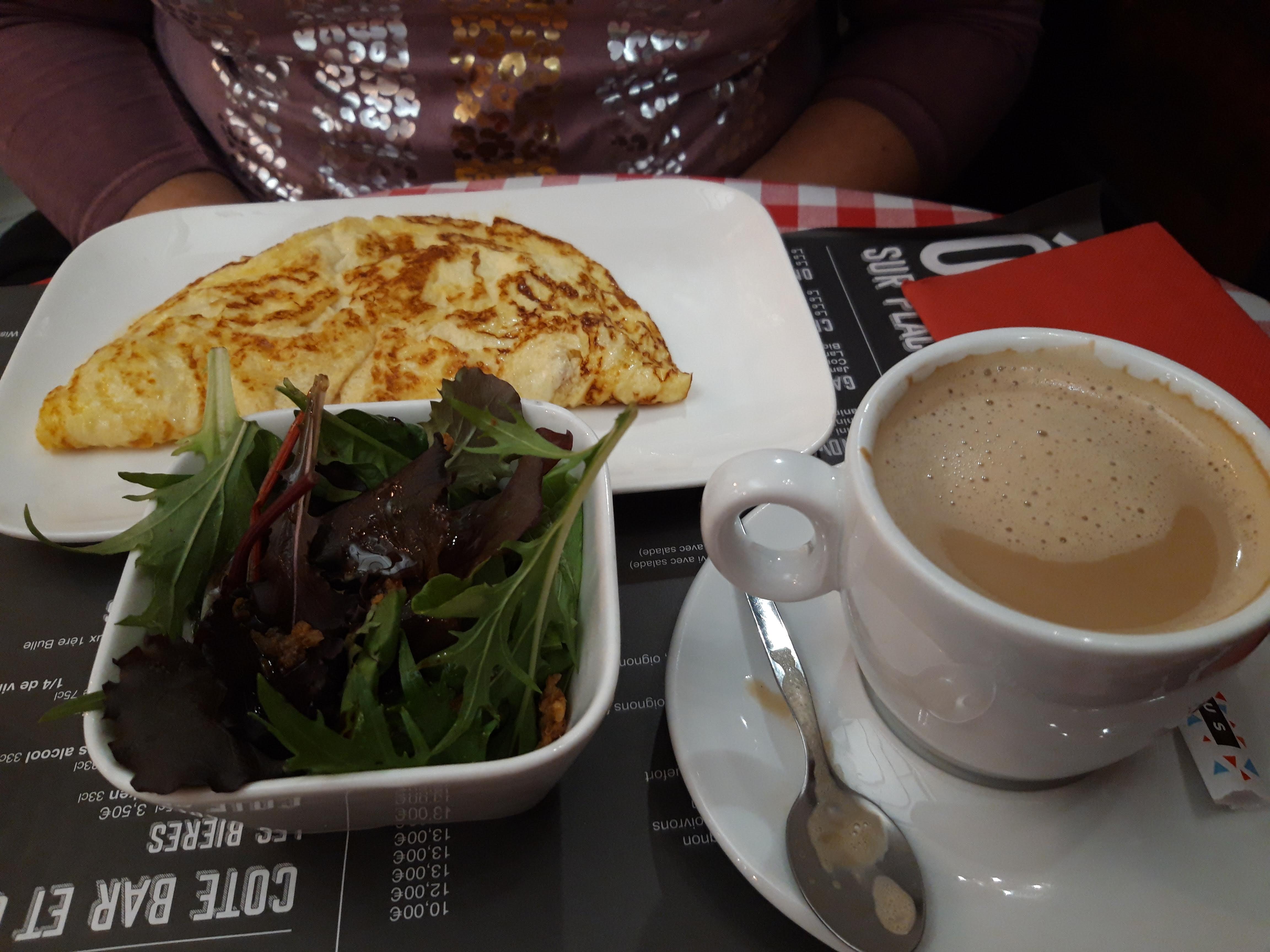 Jolie petite « brasserie » avec des gourmandises faites maison simples mais délicieuses ! Je vous conseille l'omelette Terroir cuite à la perfection ! Ambiance très douce, relax et conviviale. Très reposant après le tumulte des murs intérieurs. Le café était très bon aussi !