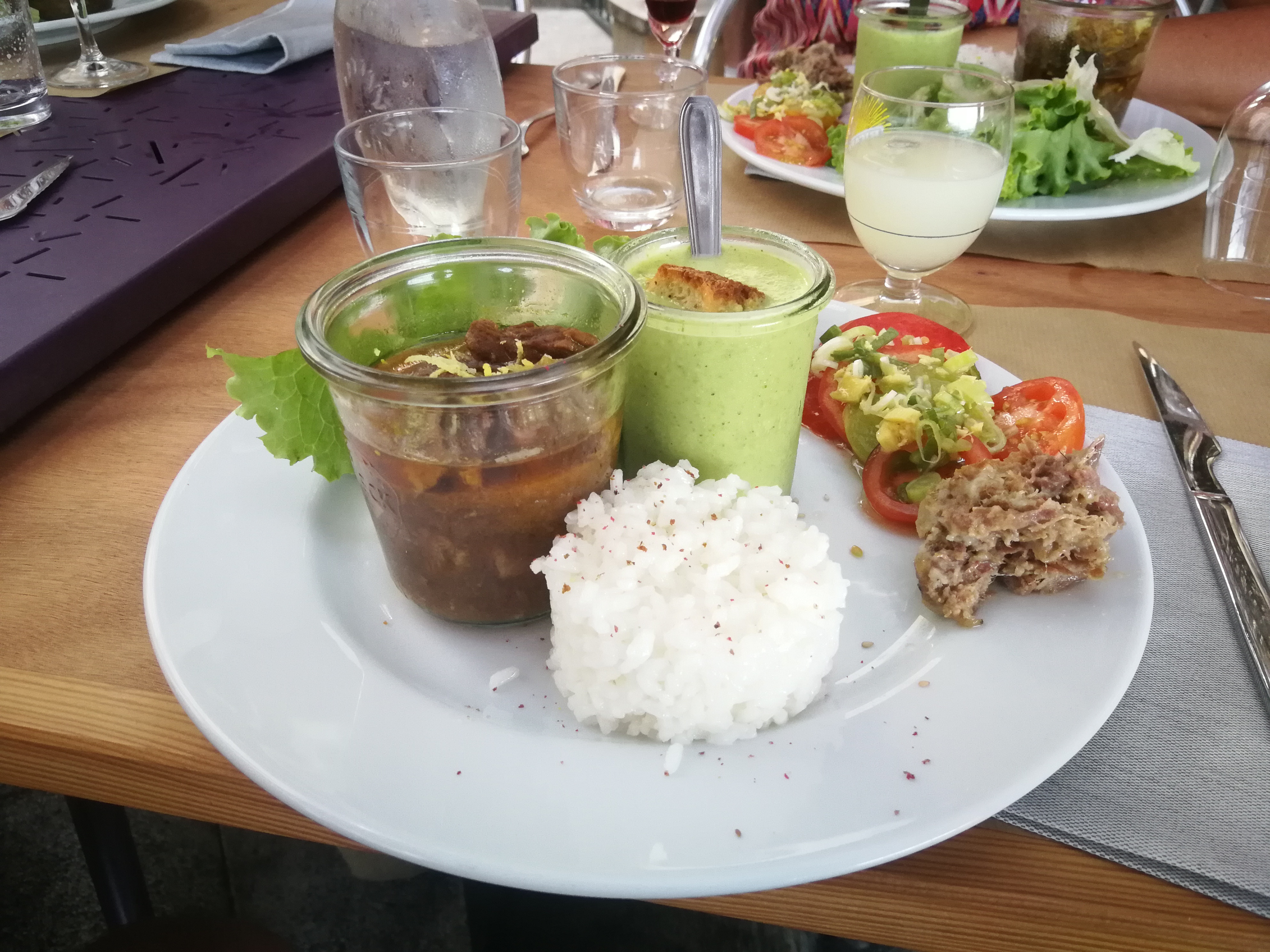 Parfait! Quelques plats et desserts: on sent le 100% fait maison. Tout était savoureux. Accueil très chaleureux. Vue splendide!