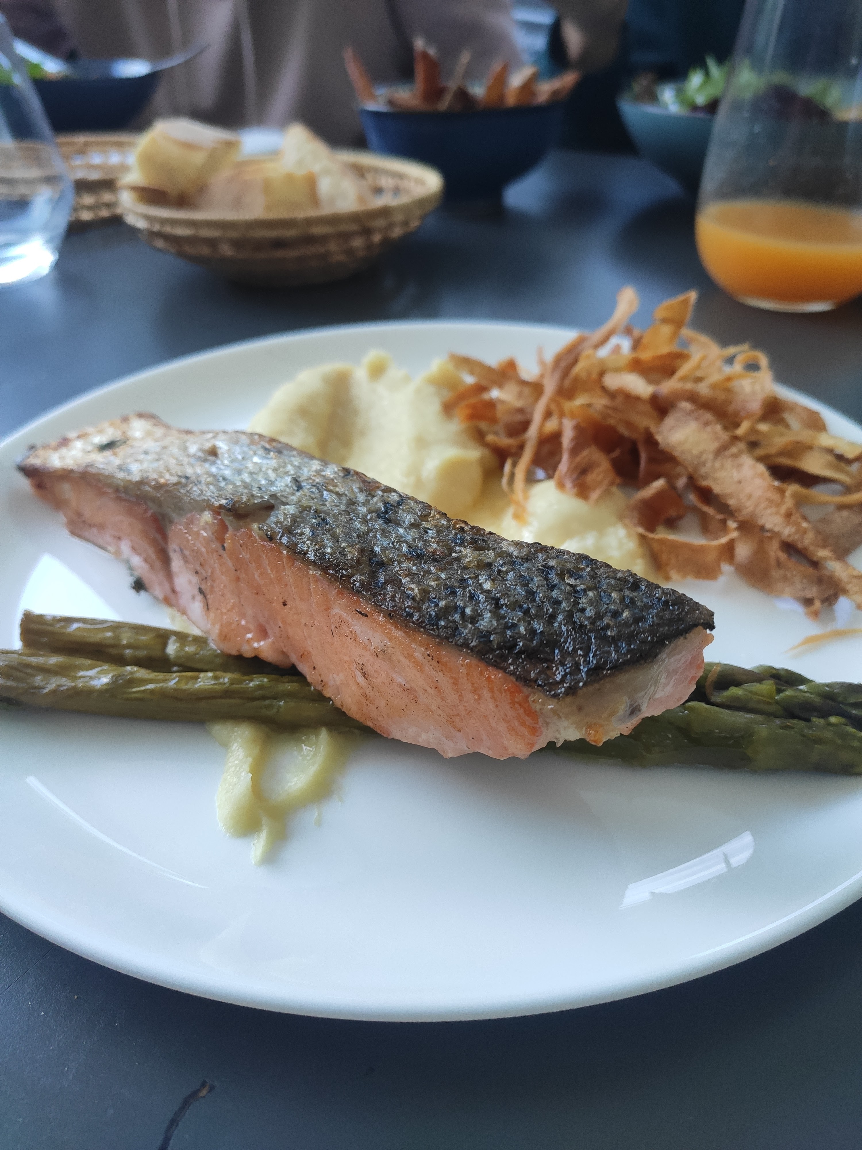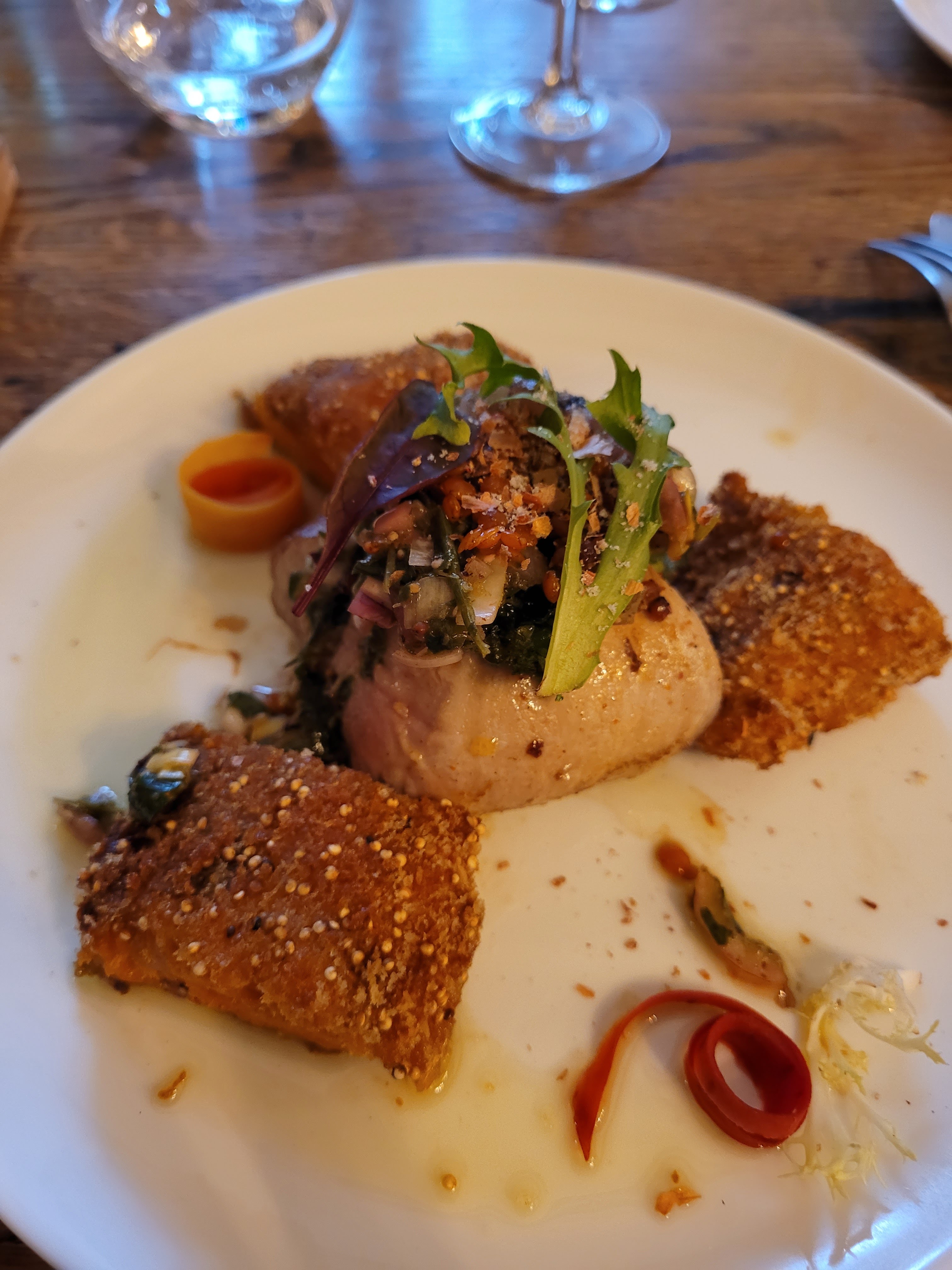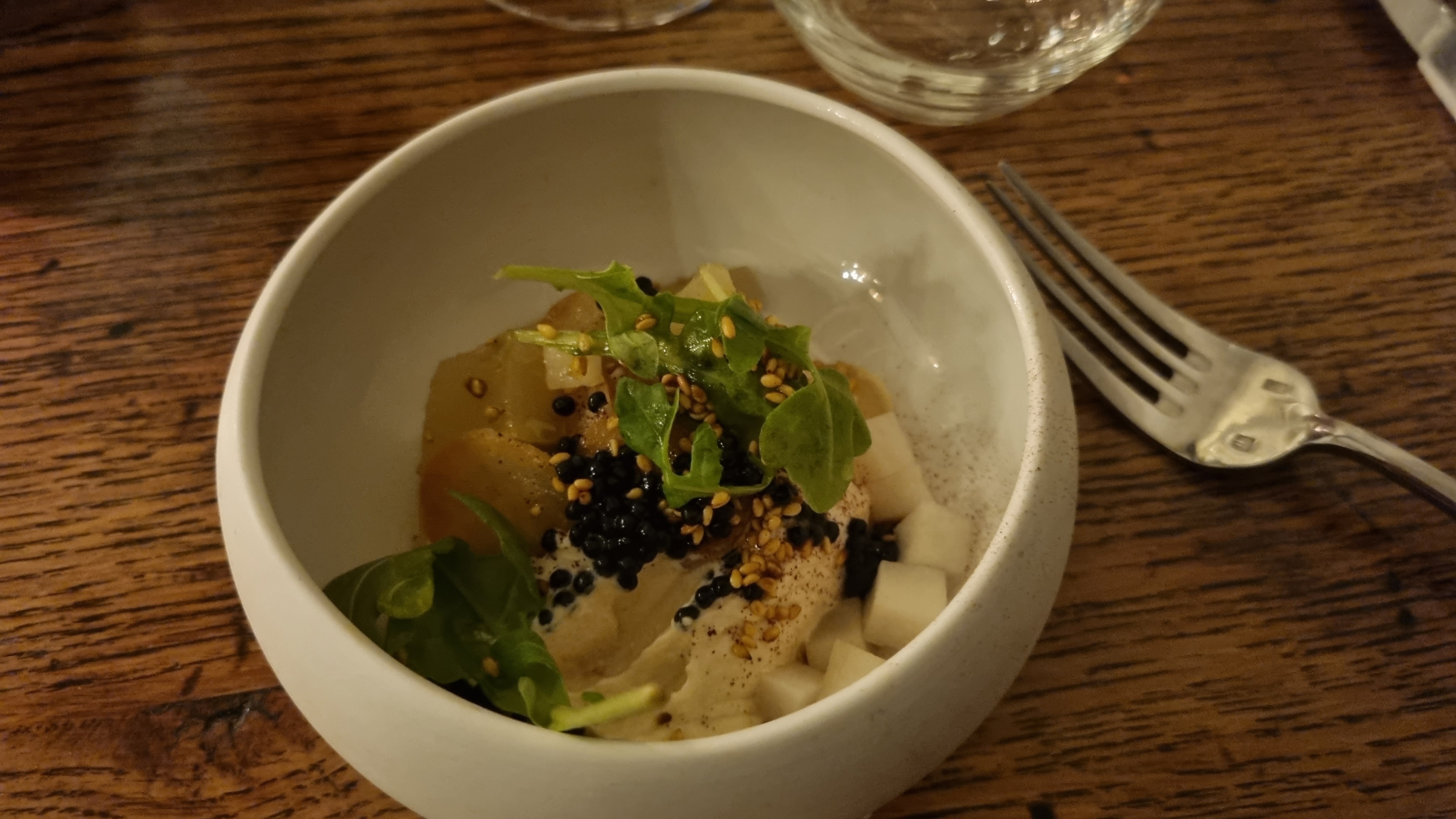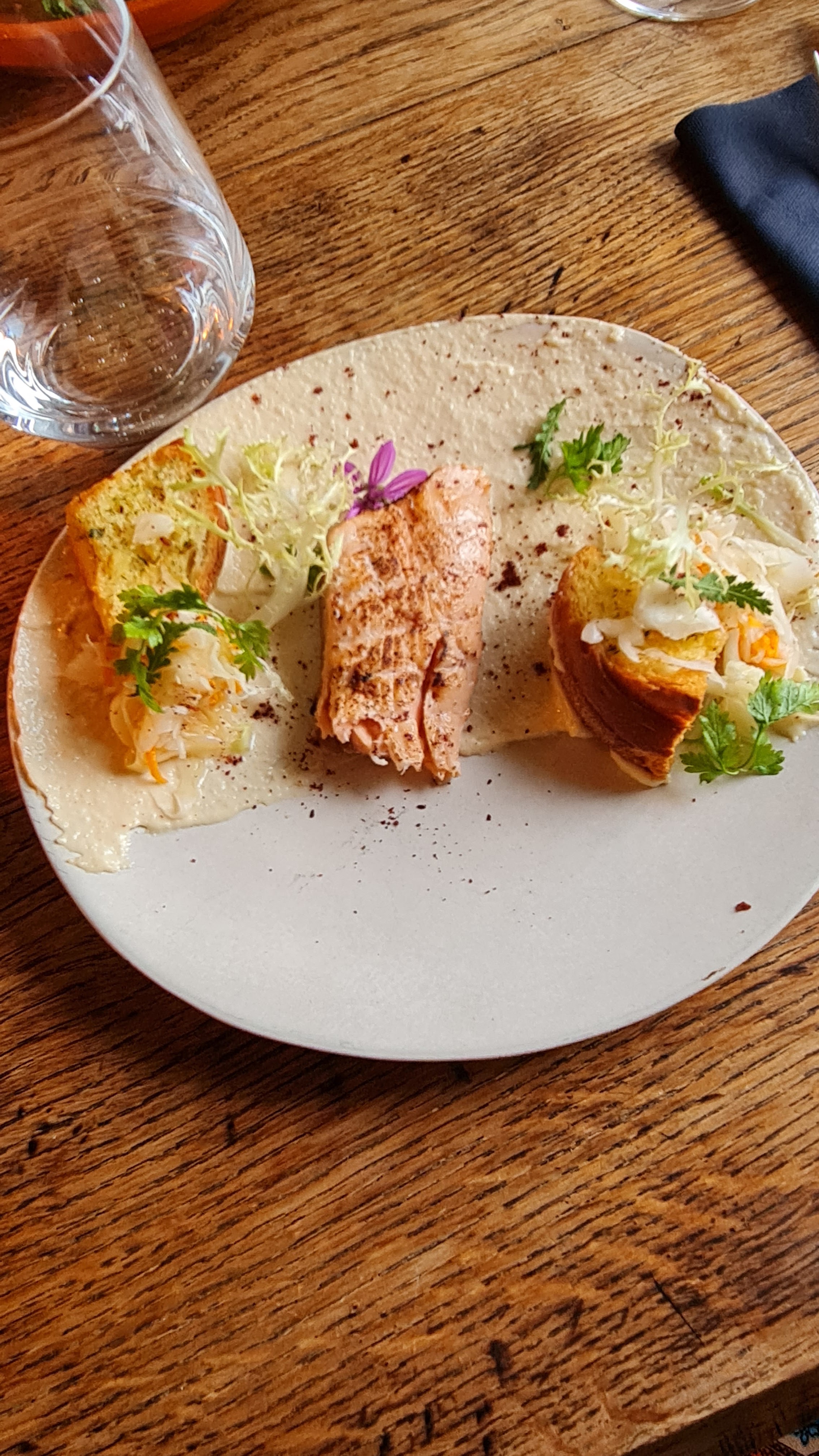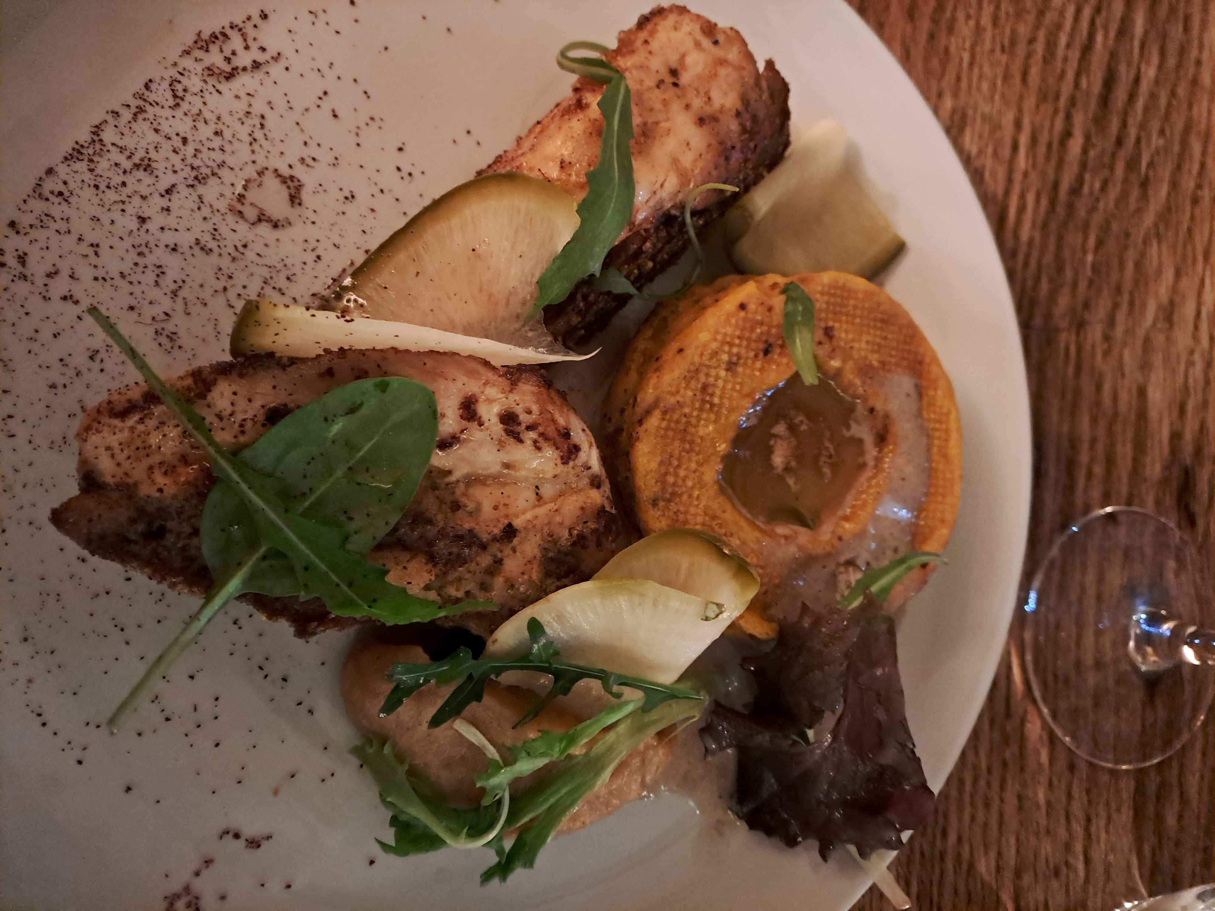 D’abord l’accueil est sympathique, on sens que l’on arrive au sein d’une équipe où règne une bonne ambiance. Ensuite le serveur nous propose de l’eau en attendant que le chef vienne nous présenter ses plats, ses vins… le fin du fin se retrouve dans l’assiette, les produits sont de saison, locaux et délicatement parfumés d’ailleurs. C’est magique. Vraiment une très belle découverte !